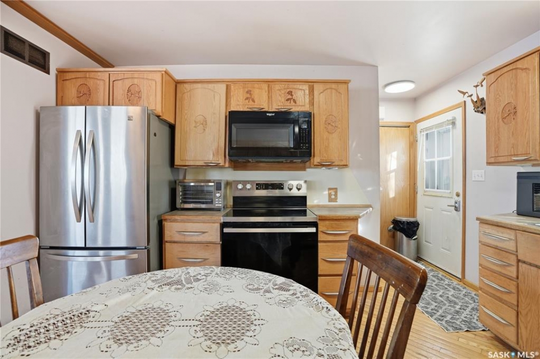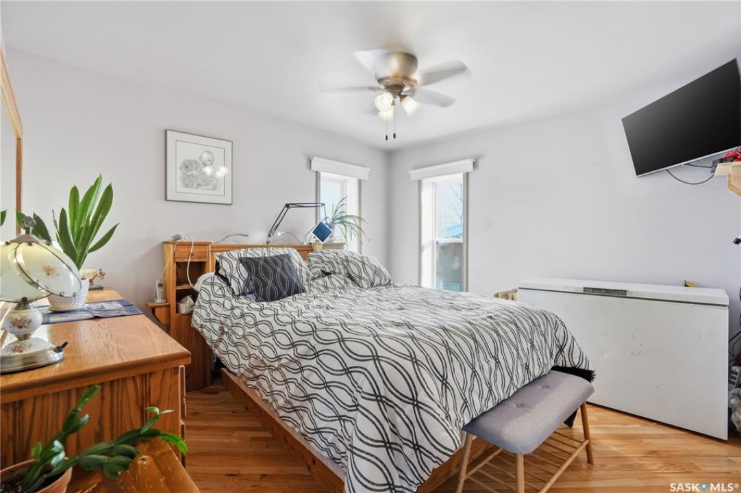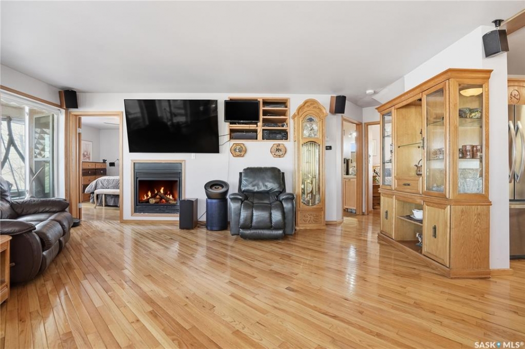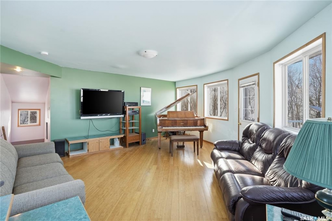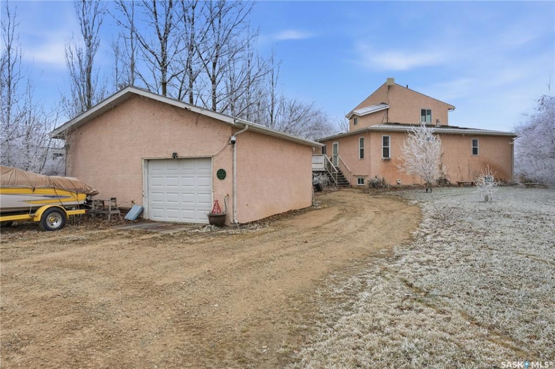 Experience the ultimate in lakeside living with this extraordinary four-season retreat, where architectural innovation meets breathtaking natural beauty. This unique 1 1/4 story home is defined by its striking panoramic arc, featuring a continuous span of large windows along the north and west elevations that frame stunning views of the water. This architectural masterpiece flows seamlessly through the den, living room, and master suite, while a massive 10-foot-wide covered and screened deck mirrors the curve outside, offering a protected sanctuary to enjoy the lake breeze and beach views. The main level welcomes you with a sun-drenched living room and a kitchen equipped with an abundance of cabinetry and pantry storage. This floor also hosts two spacious bedrooms, a flexible den, and a generous five-piece bathroom featuring a luxurious soaker tub with direct access from the master suite. For those seeking a quiet escape, the upstairs loft serves as a private sanctuary, complete with its own west-facing balcony—the perfect vantage point for watching the sunset. Built for longevity, the home features Insulated Concrete Form (ICF) construction for the full basement and main floor walls, providing superior energy efficiency. Comfort is guaranteed year-round with a gas boiler system providing cozy in-floor heat across all levels. The lower level offers immense potential, already featuring electrical and drywall work for two expansive recreation areas, an additional bedroom and funtional three piece bathroom. The expansive 22,000 sq. ft. lot offers incredible space for gardening and play, bordered by the lake and a public green space. This property also includes a separate guest house (appliances included), making it an ideal setup for visitors. Conveniently located just 15 minutes from K-12 schooling in Strasbourg and 25 minutes from Bulyea, this home is the perfect blend of robust construction and serene lakefront luxury.