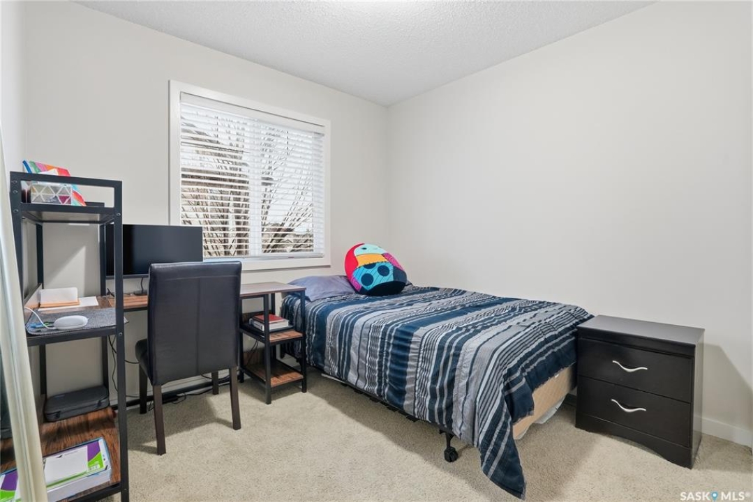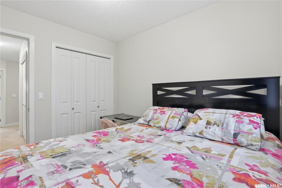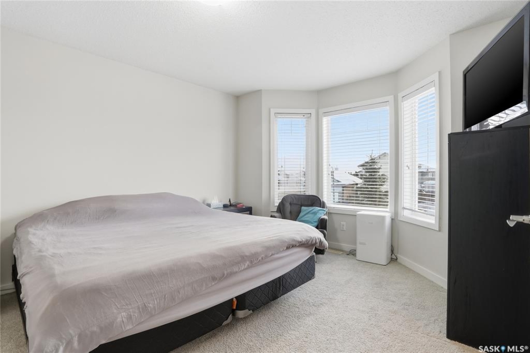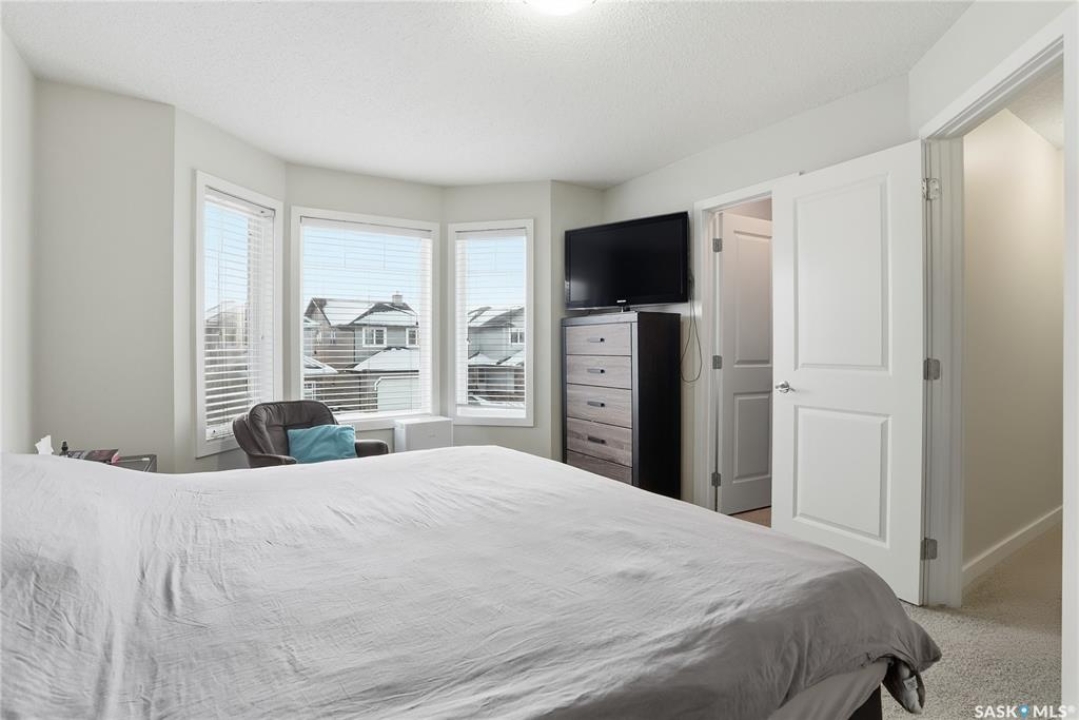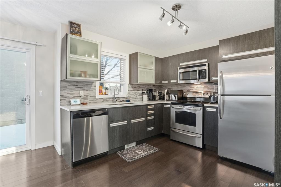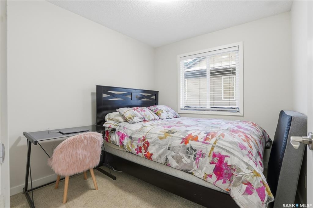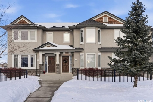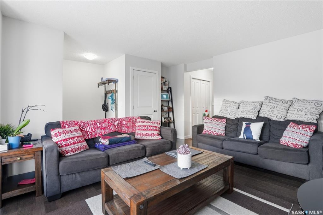 Bright, spacious, and ideally located, this middle-unit Sandpointe townhome in Stonebridge offers a perfect blend of style, comfort, and convenience. Enjoy an abundance of natural light, a functional layout, and a prime setting in one of Saskatoon's most desirable neighbourhoods. The home is ideally situated close to two elementary schools, parks & walking paths, grocery stores, restaurants, and other everyday amenities. The main floor features an open design ideal for both daily living and entertaining. A spacious living room, enhanced by the bay window, creates a warm and inviting atmosphere. The dining area flows seamlessly into the fully-equipped kitchen, complete with modern appliances, a stylish tile backsplash, and ample cabinetry. Stepping outside, you will find the outdoor patio, perfect for morning coffee, barbecuing with friends, or simply enjoying the fresh air. A convenient 2-piece bathroom completes the main level. Upstairs, you'll find three spacious bedrooms, including a primary suite with walk-in closet. A well-finished 4-piece bathroom serves the second level with both style and functionality. The fully finished basement provides valuable additional living space, featuring a large family room ideal for movie nights, a play area, or a home gym, along with a generous storage area to keep everything organized. Laundry facilities are also located on this level for added convenience. Additional highlights include central air conditioning, two parking stalls, off-street guest parking, and additional street parking directly in front of the unit available for guests and visiting family. Your furry friends are welcome here, as the pet policy has no weight limit. This move-in ready home shows beautifully, and has been well maintained. For those seeking a low-maintenance home in a vibrant, family-friendly community with exceptional convenience, this Sandpointe townhome is a must-see!