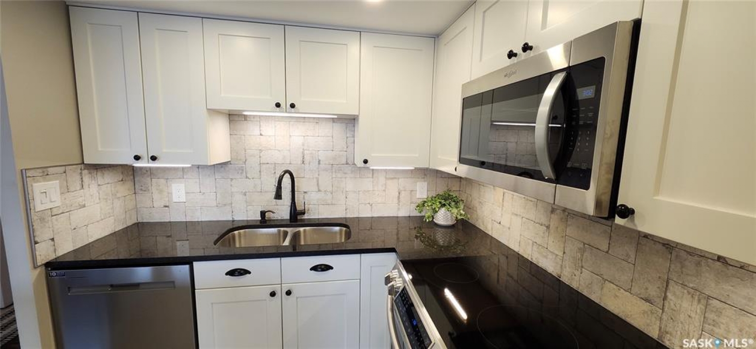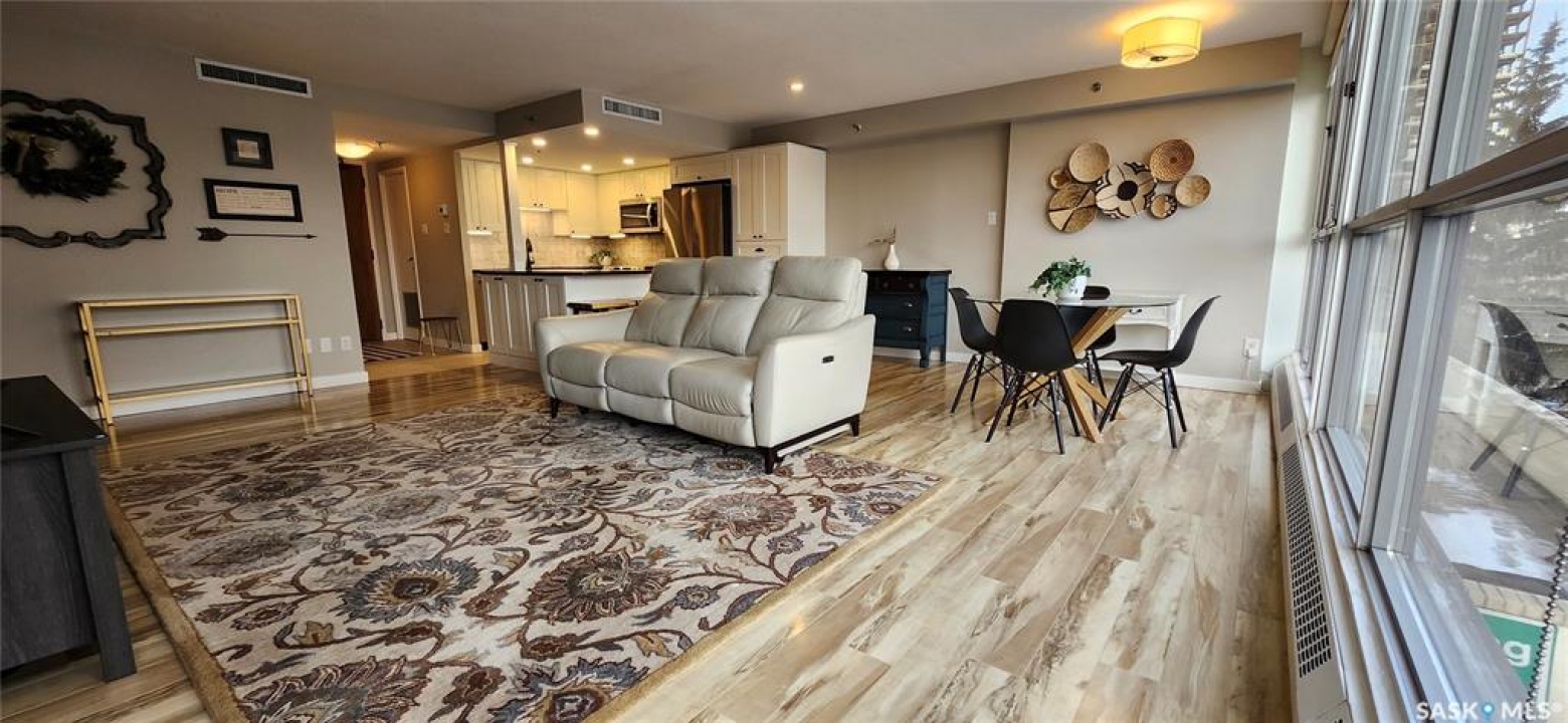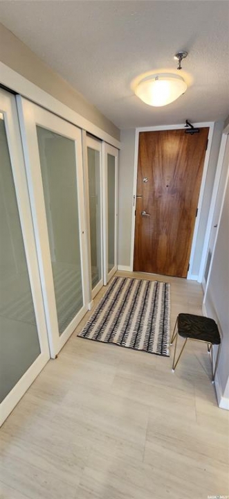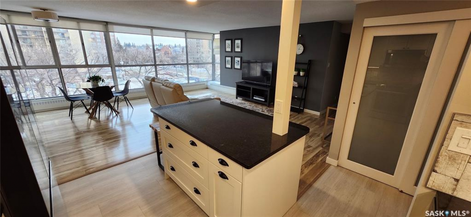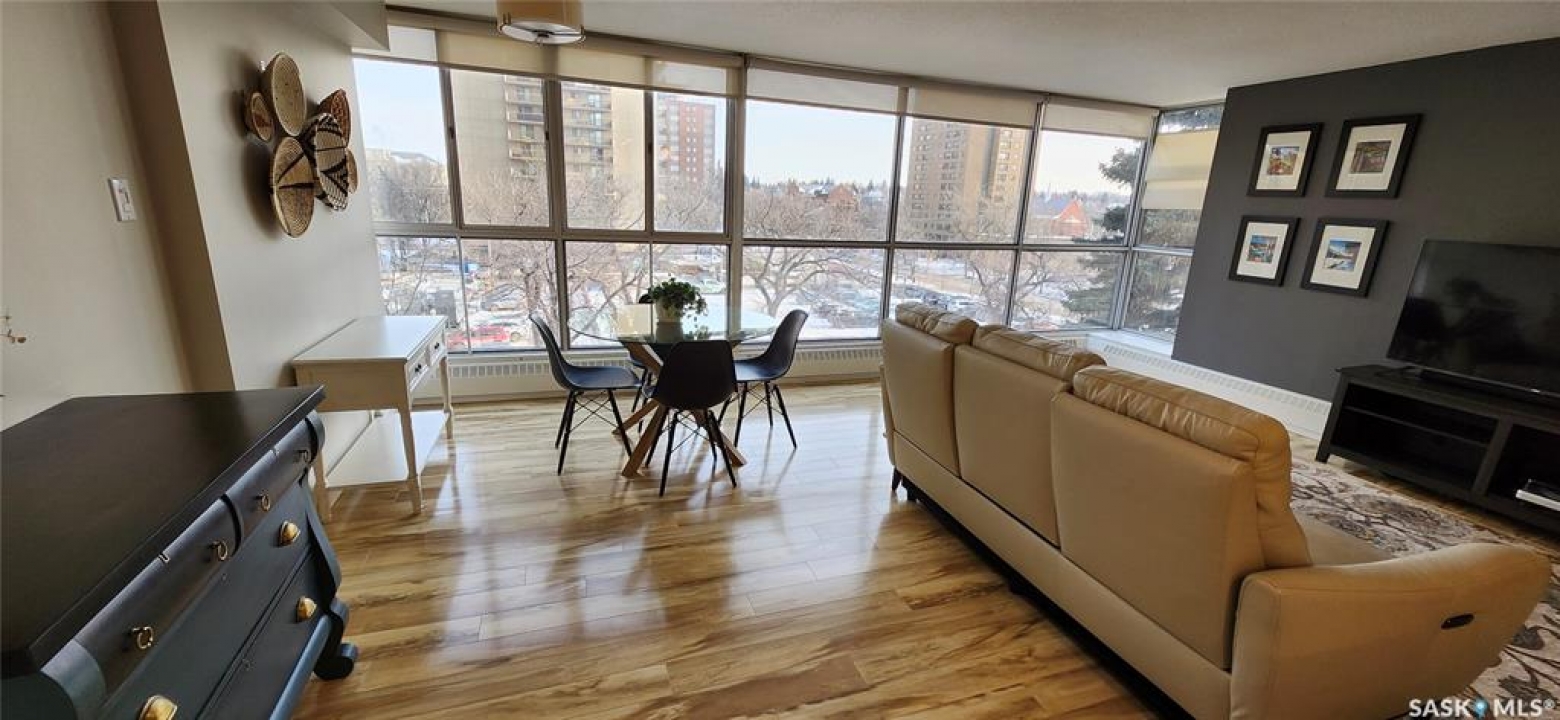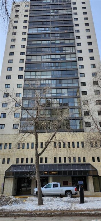 Convenient, luxurious downtown living in The Terrace condo building. Walk to the river, the U of S, & downtown amenities. This immaculate 2 bedroom / 2 bath 1076 sq ft condo is light and bright with a wall of floor to ceiling east facing windows. The new kitchen is sure to impress with quality white cabinetry, granite countertops, undermount double sinks, stainless steel appliances, updated lighting, and a huge island for food prep or entertaining. Attention paid throughout with customized closets, pantry, and storage room to maximize storage space. Boiler & forced air heat & central air conditioning keep you comfortable. Indoor heated parking. The Terrace building amenities include a swimming pool, hot tub, sauna, 4th floor community room & outdoor patio/BBQ area, a guest suite + a roof top patio for 22nd floor panoramic views. This unit and building are definitely worth a look!