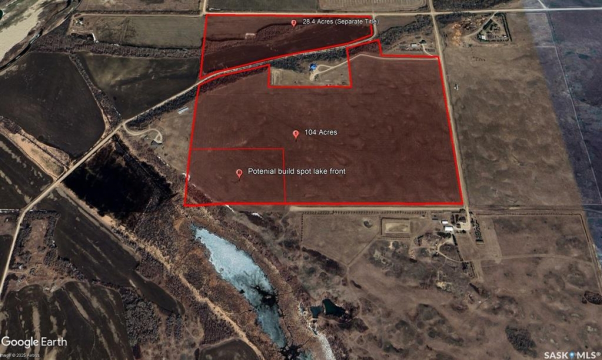 Great location just 15 minutes south of Saskatoon, this 132.4-acre property offers a rare combination of scenic beauty, development potential, and income-generating land. The main 104-acre parcel features a stunning build site on the southwest corner, perfectly positioned to overlook a small lake and take in wide open views—ideal for your dream yardsite. The second parcel, 28.4 acres with a separate title, also offers excellent potential for a future build or investment. City water, natural gas, and power run directly through the land, and phone lines as well. Three neighboring properties use sandpoint wells, and there's plenty of water in the area for a well. Of the total land, 28.6 acres are currently rented for the 2025 crop year at $1,260, while the remaining 104 acres consist of native grass and some alfalfa, harvested under a crop-share agreement with one-third of the yield going to the owner. Outdoor enthusiasts will appreciate public access to the river and Fred Heal Canoe Launch & Beach just half a mile away. The property is also family-friendly, with a school bus to South Corman Park Junior School picking up right on the grid road. This is an excellent opportunity to build, invest, and enjoy the best of rural living just minutes from the city.