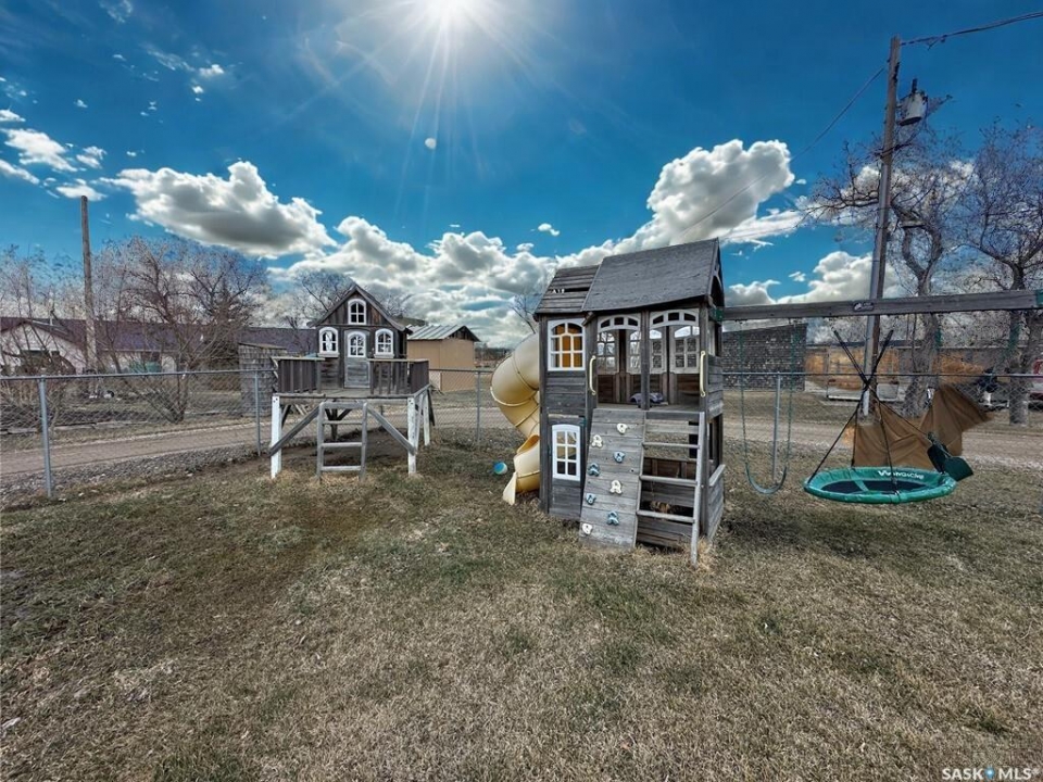Welcome to this well-maintained 4-bedroom, 3-bathroom family home located on a corner lot in the friendly community of North Weyburn, just minutes from the City of Weyburn. Situated on a spacious lot, this property offers an excellent balance of comfort, functionality, and small-town charm. Outdoor living is a highlight, featuring a raised deck with storage underneath and a three-season screened sunroom—ideal for morning coffee or relaxing evenings. The fully fenced backyard includes ample green space, a separate fenced area suitable for a future pool, and a custom-built catio, perfect for pet lovers. There is also plenty of parking available for family and guests. Inside, the home is bright and welcoming, with large windows throughout that allow natural light to flow in. The open-concept kitchen offers generous space and includes all major appliances, making it well suited for both everyday living and entertaining. The primary bedroom features a private ensuite with shower, while two additional bedrooms and bathrooms complete the main level. The fully developed basement provides additional living space with a fourth bedroom, a dedicated home office, and a spacious utility and laundry room offering excellent storage. Located in a quiet, family-friendly neighbourhood with a local park and rink nearby, this home offers a strong sense of community with the convenience of an easy commute to Weyburn. A great opportunity to enjoy peaceful living in a welcoming area.