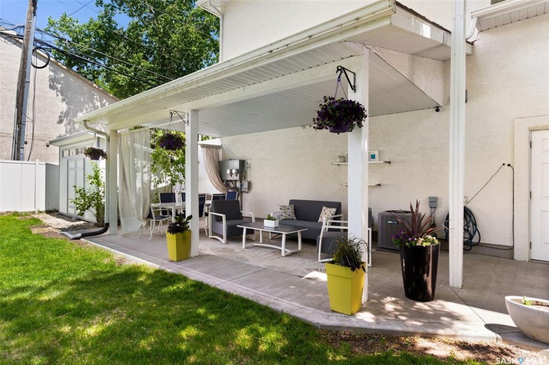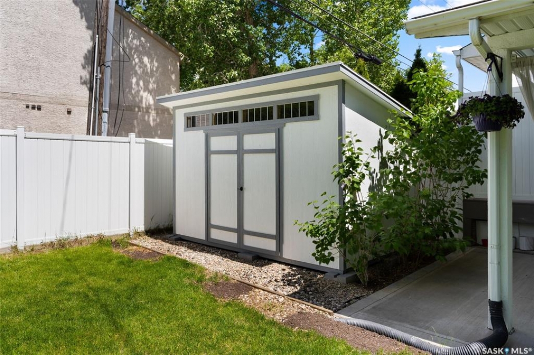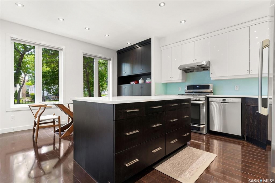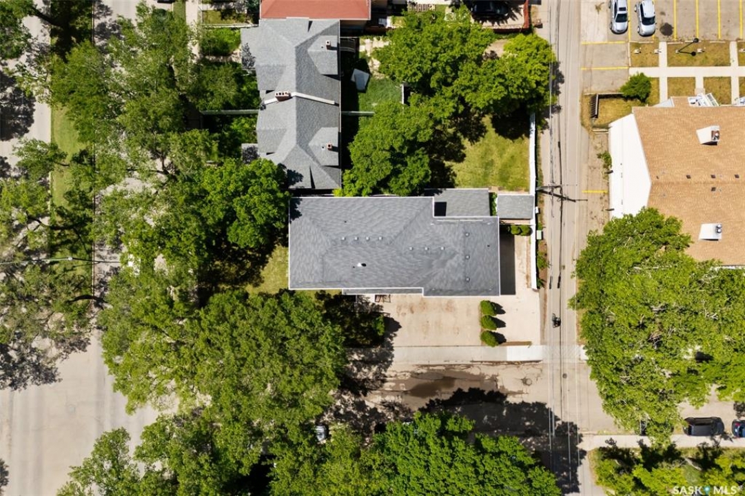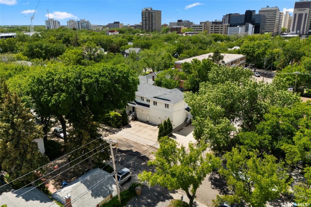 Welcome to 1980 Ottawa Street, a custom-built Varsity home located just steps from downtown Regina. Built in 2010 on piles & R2000 certified, this property features new sewer and water lines, dark iron fencing, and a striking modern façade. Bright, modern main floor offers 9-foot ceilings, high-grade laminate flooring, and an open-concept layout. Kitchen showcases two-toned flat-panel cabinetry, quartz countertops, glass tile backsplash, stainless steel appliances & built-in buffet in the dining area. Living room features a cozy gas fireplace, while a 2 pc bath and main-floor laundry complete the level. Upstairs, the spacious primary suite includes windows on two sides, a large walk-in closet, and a 3-piece ensuite with walk-in shower. 2 additional bedrooms, a 4-piece bath, and a large bonus room—ideal as an office or extra bedroom—complete the upper level. Basement is insulated, soundproofed w/ Roxul insulation & open for future development. The home is built with a web truss system for added structural efficiency. Situated on a 7,700 sq ft lot, the private backyard features a covered patio, mature trees, underground sprinklers (5 zones), PVC fencing & large storage shed. 35x22 triple attached garage includes backyard access and supports a fully legal one-bedroom suite above. A self-contained unit with its own entrance, modern finishes, laminate flooring, a spacious bedroom, and a 4-piece bath with laundry. It has separate mechanical systems including furnace, HRV, AC, and water heater. The property also offers a central vac system plus vacum inside the garage for cars and separate driveways for the home and suite. Garage and suite are supported by 14 piles. Additional features include fiber optic internet, triple-glazed argon-filled windows, and a home security system with cameras. With its legal suite, large lot, downtown location, and potential for future commercial use, this property is ideal for families, professionals, or investors seeking long-term value.