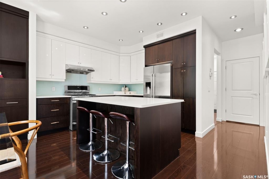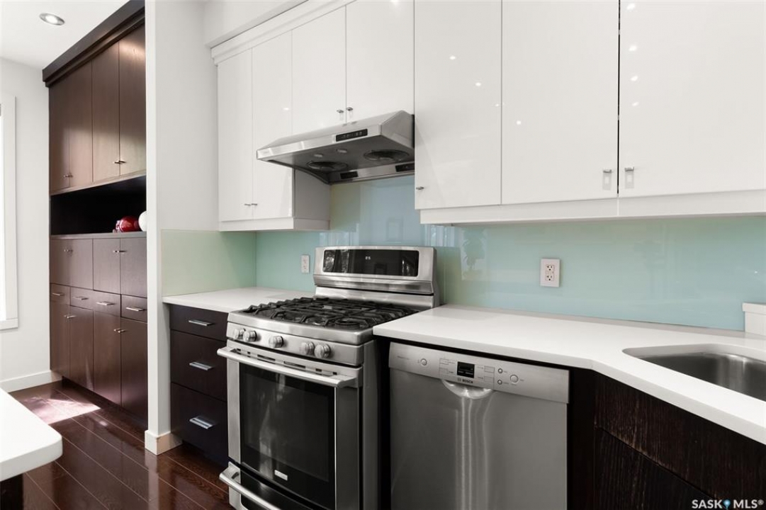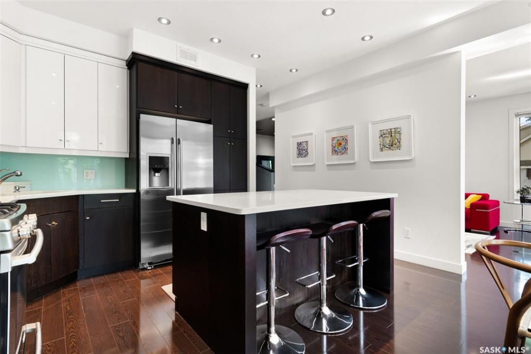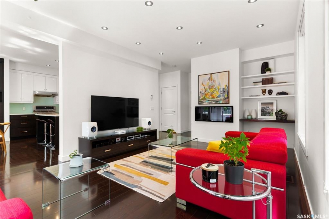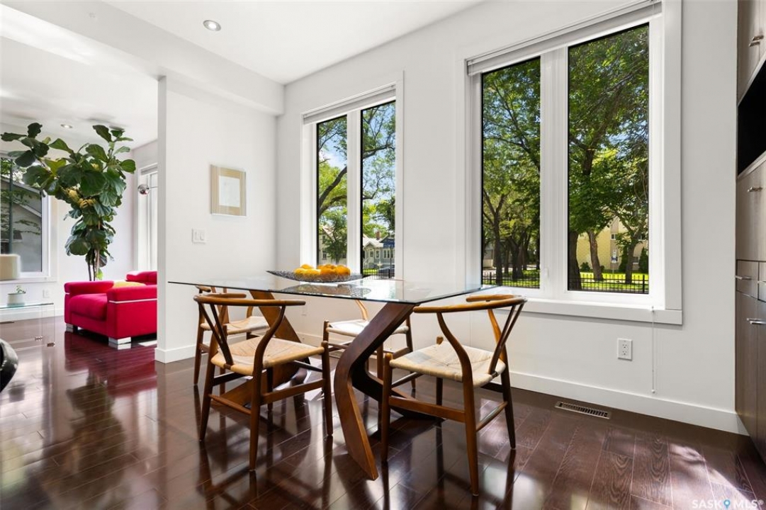 Welcome to 1980 Ottawa Street, a custom-built Varsity home located just steps from downtown Regina. Built in 2010 on piles & R2000 certified, this property features new sewer and water lines, dark iron fencing, and a striking modern façade. Bright, modern main floor offers 9-foot ceilings, high-grade laminate flooring, and an open-concept layout. Kitchen showcases two-toned flat-panel cabinetry, quartz countertops, glass tile backsplash, stainless steel appliances & built-in buffet in the dining area. Living room features a cozy gas fireplace, while a 2 pc bath and main-floor laundry complete the level. Upstairs, the spacious primary suite includes windows on two sides, a large walk-in closet, and a 3-piece ensuite with walk-in shower. 2 additional bedrooms, a 4-piece bath, and a large bonus room—ideal as an office or extra bedroom—complete the upper level. Basement is insulated, soundproofed w/ Roxul insulation & open for future development. The home is built with a web truss system for added structural efficiency. Situated on a 7,700 sq ft lot, the private backyard features a covered patio, mature trees, underground sprinklers (5 zones), PVC fencing & large storage shed. 35x22 triple attached garage includes backyard access and supports a fully legal one-bedroom suite above. A self-contained unit with its own entrance, modern finishes, laminate flooring, a spacious bedroom, and a 4-piece bath with laundry. It has separate mechanical systems including furnace, HRV, AC, and water heater. The property also offers a central vac system plus vacum inside the garage for cars and separate driveways for the home and suite. Garage and suite are supported by 14 piles. Additional features include fiber optic internet, triple-glazed argon-filled windows, and a home security system with cameras. With its legal suite, large lot, downtown location, and potential for future commercial use, this property is ideal for families, professionals, or investors seeking long-term value.