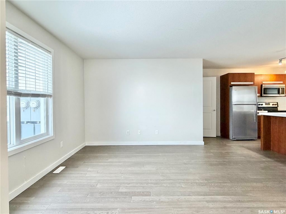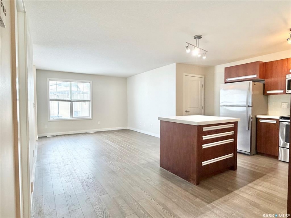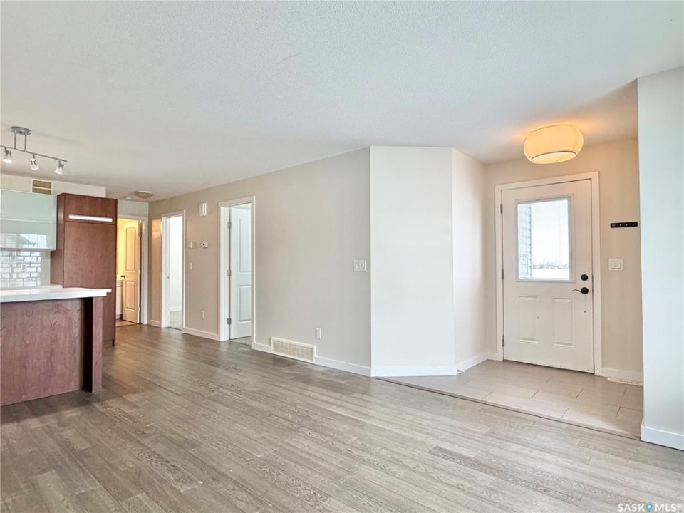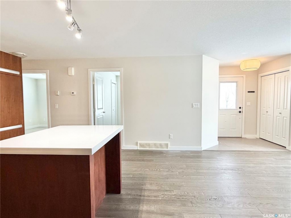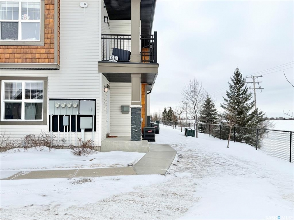 Arguably the best location in the Ginger Lofts complex, this 910 sq. ft. main-floor bungalow townhouse is ideally positioned at the very end of the development, offering outstanding privacy and unobstructed views overlooking U of S farmland. Set well away from internal traffic, the setting is quiet, peaceful, and highly desirable. The home features newer flooring throughout, including oak engineered hardwood in the living room and kitchen/dining area, with carpet in both bedrooms. The kitchen is finished with quartz counter tops, a glass tile back splash, upgraded stainless steel appliances, and a pantry with pull-out shelving. Convenient in-suite laundry is located next to the four-piece bathroom. The full basement is open and ready for future development. A rare bonus, this unit includes two parking stalls. Residents enjoy access to an excellent clubhouse with an indoor saltwater pool, hot tub, games room, and fitness center. Call today!