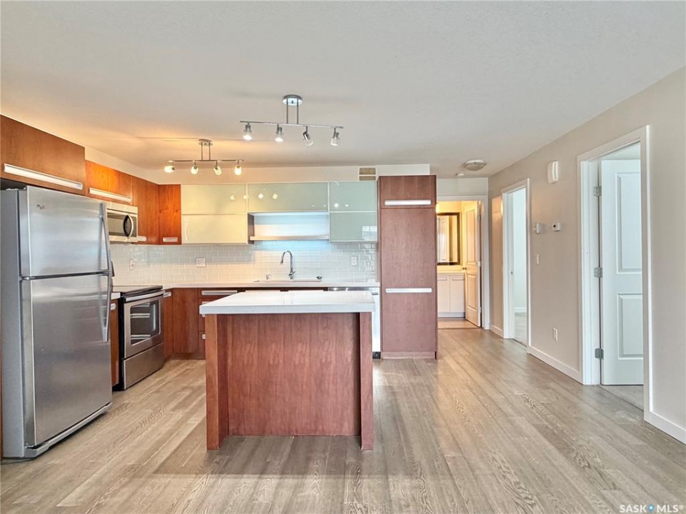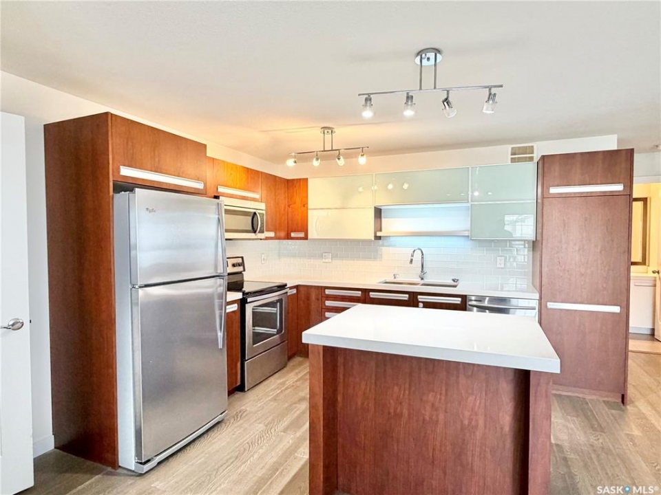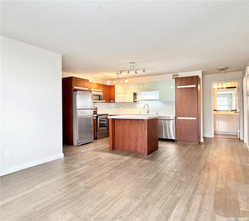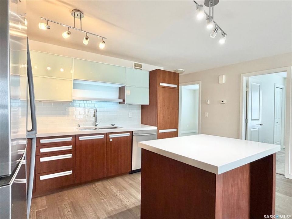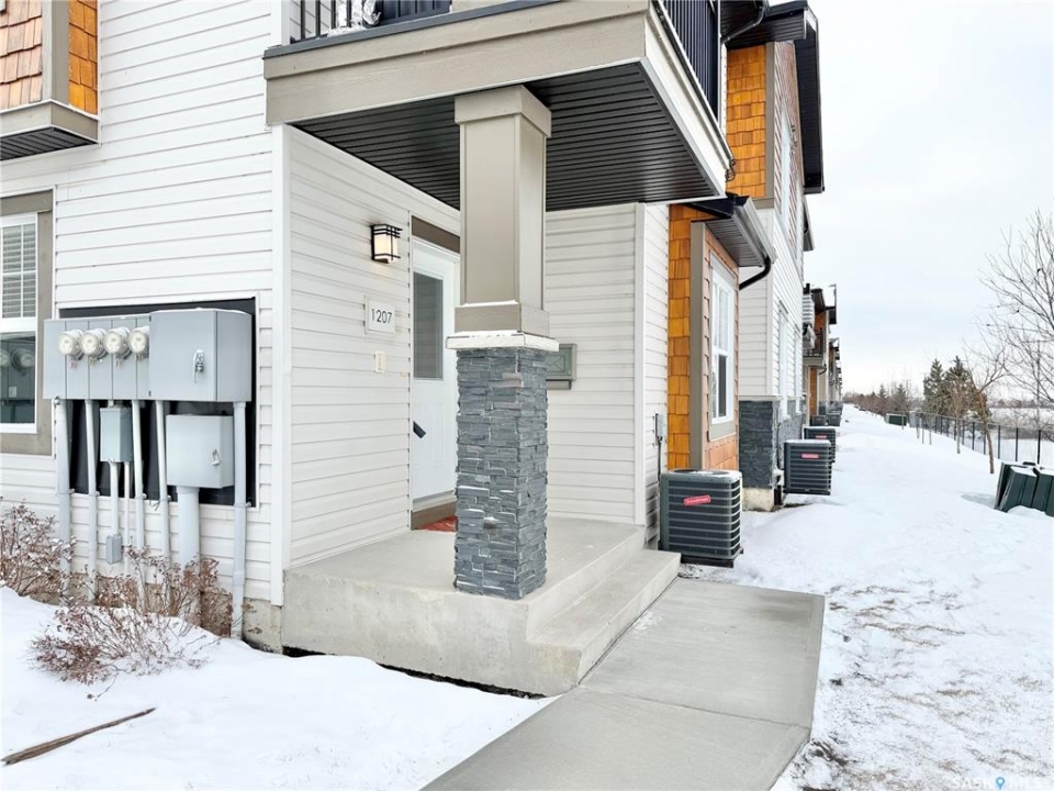 Arguably the best location in the Ginger Lofts complex, this 910 sq. ft. main-floor bungalow townhouse is ideally positioned at the very end of the development, offering outstanding privacy and unobstructed views overlooking U of S farmland. Set well away from internal traffic, the setting is quiet, peaceful, and highly desirable. The home features newer flooring throughout, including oak engineered hardwood in the living room and kitchen/dining area, with carpet in both bedrooms. The kitchen is finished with quartz counter tops, a glass tile back splash, upgraded stainless steel appliances, and a pantry with pull-out shelving. Convenient in-suite laundry is located next to the four-piece bathroom. The full basement is open and ready for future development. A rare bonus, this unit includes two parking stalls. Residents enjoy access to an excellent clubhouse with an indoor saltwater pool, hot tub, games room, and fitness center. Call today!