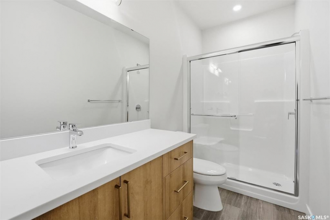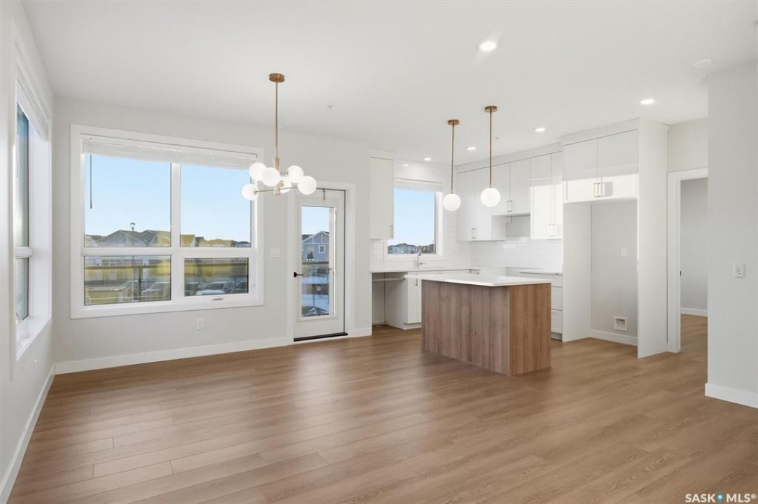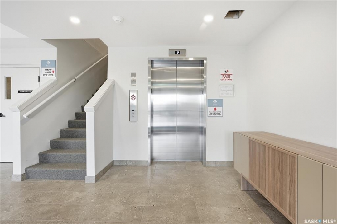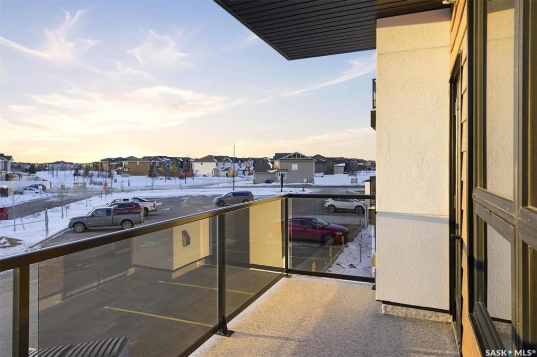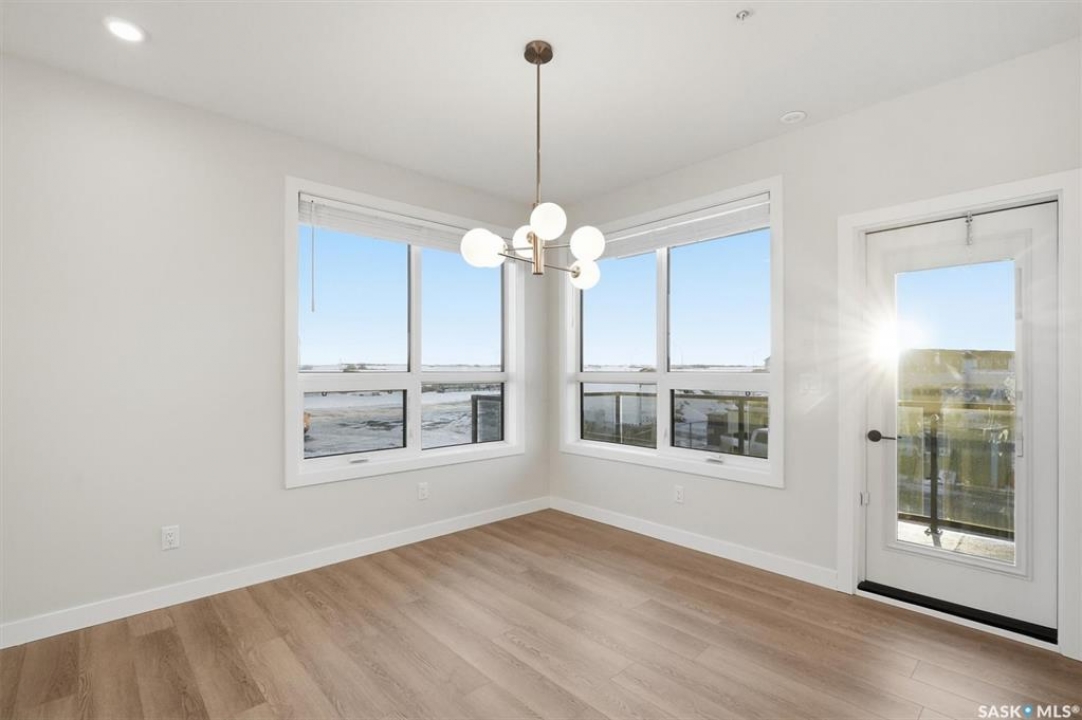 Welcome to ‘RYSE by North Ridge' located in Saskatoon's growing community of Brighton! RYSE is a modernized apartment style condominium complex offering 1 bedroom, 2 bedroom, and 2 bedroom + den options. You will immediately notice the welcoming nature of RYSE the moment you step into the warm and inviting front entrance. Unit 1201 (Panorama layout) is a south east facing 1025 sq ft corner unit condo with 2 bedrooms, 2 bathrooms, separate laundry room, corner style kitchen w/ island, and dining/living areas. The interior features high end designer finishes, fixtures, countertops, and flooring, all with quality built craftsmanship. A private partially covered balcony awaits complete with duradeck, glass railing, natural gas bbq outlet, and electrical outlet. Each condo unit comes with a parking stall located in the heated parkade as well as a convenient storage room. Exterior parking stalls may be available to purchase. Each unit also includes a kitchen and laundry appliance package and air conditioning. RYSE has an amenity room for you to visit and relax featuring a bar area, comfortable seating, pool table, bathroom, and an outdoor patio lounge. GST and PST included in purchase price with any rebates to builder. Sask Home Warranty Premium Coverage Plan. This prime location is within a few minute walk to grocery/shopping/restaurants/bus and several other amenities. Show home hours are Mon thru Thurs 5-8PM and Weekends 12-5PM. Call to view!