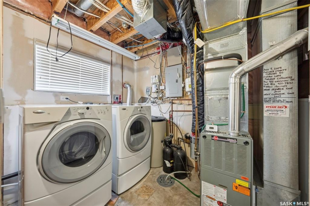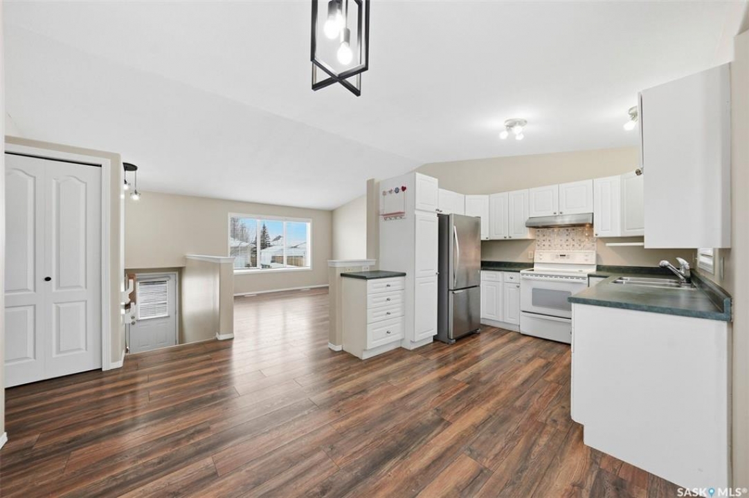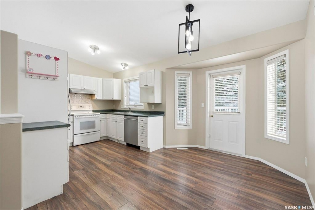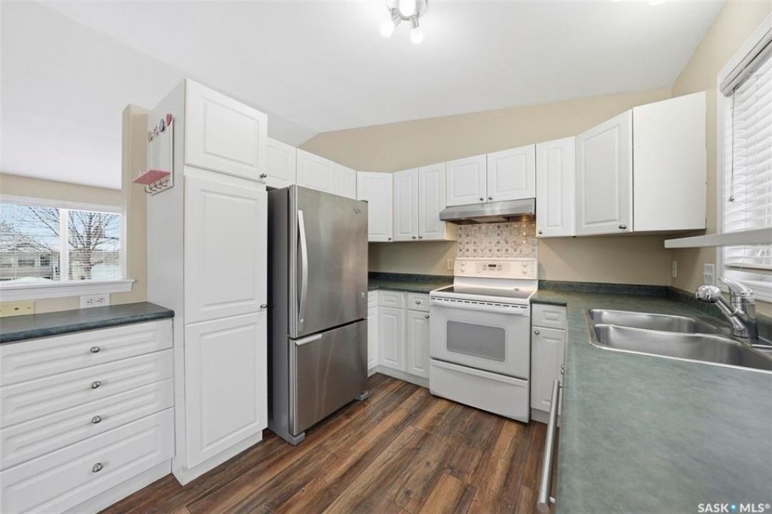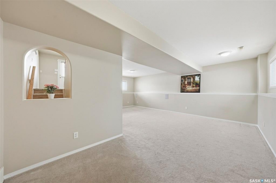 This one has it all! Developed up and down with a fresh coat of paint and large direct entry double attached garage. The main floor with laminate flooring has vaulted ceilings over the kitchen/dining/living room area, a 4 pc bath and 3 bedrooms with the primary having a 3 pc En-suite bath. The basement family room includes a wall mounted 60" Sony TV and speaker system. There is a second kitchen in the basement utility room with fridge, stove outlet, vented hood fan and sink. There is also a large bedroom, games room and furnace room with pedestal mount washer and dryer. Kitchen appliances are also included. Relax on the back deck with a view of a tidy back yard and tree line a short distance away. Completing the appeal of this cared for family home is it's super location on one of Westview Heights newer crescents (built 2001) with walking distance to schools, parks, shopping and bus stop.
