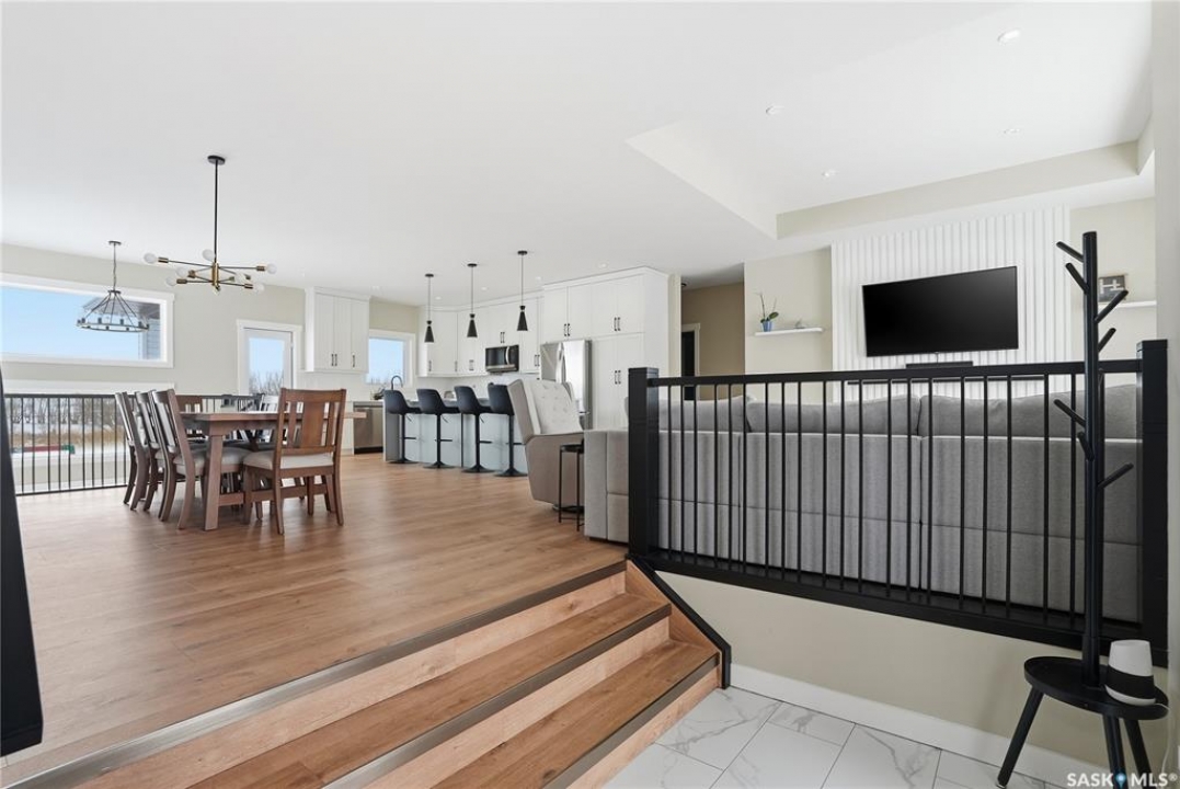 Welcome to this brand new home located in the �WATERPARK �ESTATES, located few minutes away from Saskatoon. This home offers about 1790 sq ft living space. The main floor offers open concept floor plan, dining area, living area with electric fireplace, modern light fixtures, White Vinyl windows with triple glass, low E and Argon gas. The modular kitchen offers kitchen backsplash, quartz countertops, kitchen pantry & a huge island. On the main floor you will find 2 good sized bedrooms & a 4pc bathroom. Head your way to the master bedroom that offers a 5pc en-suite bath. The basement is undeveloped & is waiting for you to add your imagination. The home comes with a 15' X 12' Covered deck. The property has a triple car attached garage with one 18'X8' and one 9'X8' Metal flush white garage doors. Garage is 24' (26.8') x 38'. Looking to book a private tour? Call your favourite REALTOR � TODAY for more info & to schedule a viewing.