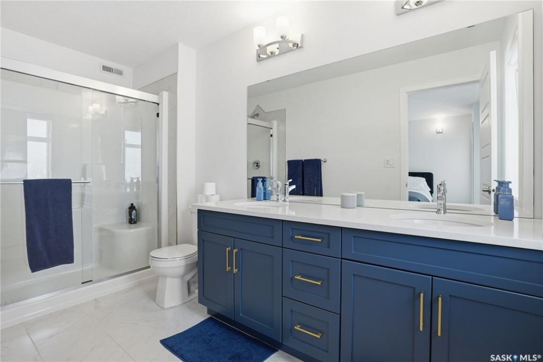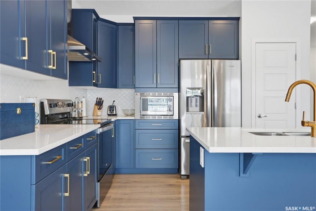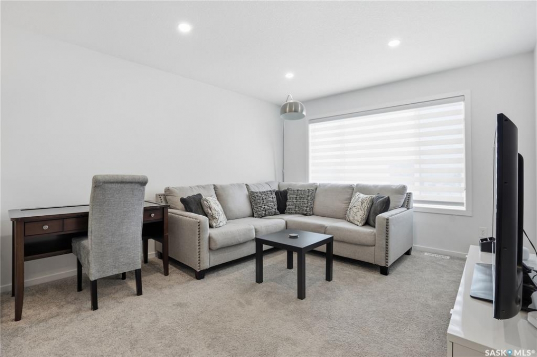Located on a quiet crescent in East Regina's desirable Eastbrook neighbourhood, this beautiful two-storey home backs directly onto green space, offering privacy, peaceful views, and one of the area's most sought-after floor plans. A spacious front entry welcomes you into a bright, open-concept main floor flooded with natural light from large windows throughout. Designed for both entertaining and everyday living, the kitchen features quartz countertops, stainless steel appliances, a large island, and abundant cabinetry, flowing seamlessly into the dining area with patio doors leading to the backyard. The living room is centred around a modern electric fireplace, creating a warm and inviting focal point. A versatile main-floor office or flex space, convenient half bath, and direct access from the double attached garage complete this level. Upstairs offers a generous bonus room, two well-sized bedrooms, second-floor laundry, a full bathroom, and a spacious primary retreat with a walk-in closet and an ensuite with a shower and double sinks. The fully finished basement includes a beautiful one-bedroom legal suite with its own kitchen, laundry, and private entrance, providing excellent flexibility for extended family living or rental income as a mortgage helper. Additional highlights include 9' ceilings on the main floor, laminate flooring throughout main living areas, tile in all wet spaces, upgraded stair railings with metal spindles, a gold kitchen faucet and cabinet handles, rear deck with skirting, and fully fenced and landscaped yard. Backing naturalized green space and located in a quiet, family-friendly setting, this home offers exceptional value, versatility, and long-term potential. (Some furniture are negotiable)
