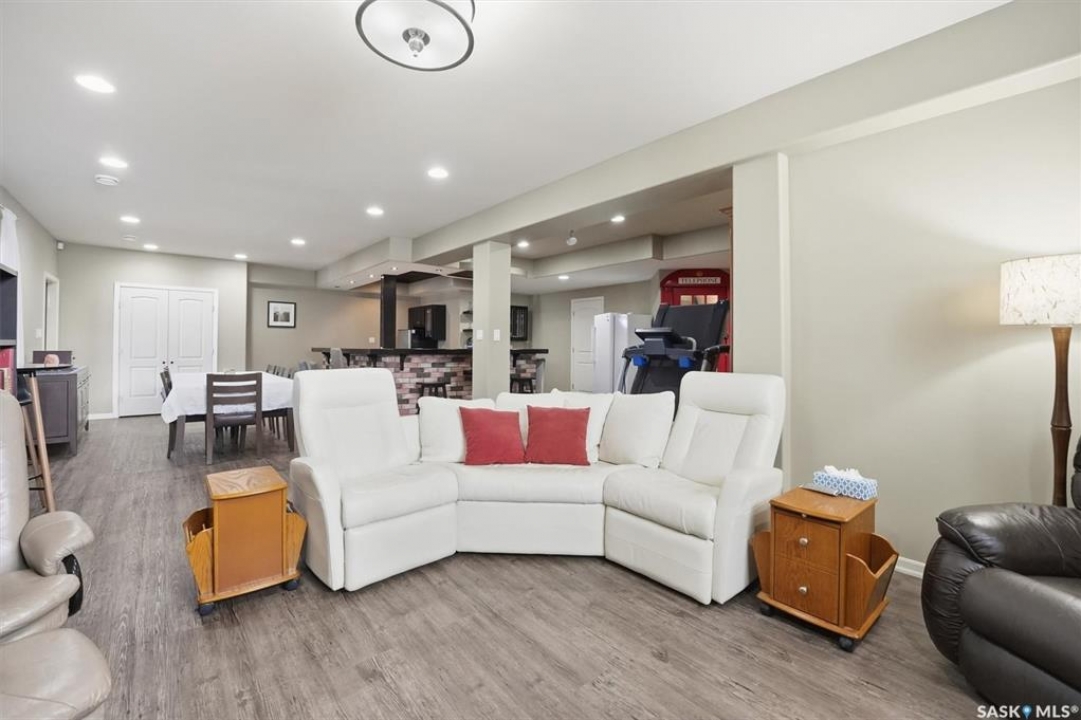 Welcome to 327 Hastings Lane, a gorgeous 2112 sq ft modified walkout bungalow in Rosewood. The main floor is impressive as you are greeted with the luxurious finishes of this warm and inviting home making your way to an open concept kitchen, dining, and living area filled with amazing designer detail. From the dining area, you can access a covered deck w/ waterproof floor, auto sun screen system, natural gas bbq outlets and absolutely stunning views. The main floor also includes a front bedroom/office, laundry w/ cabinets/sink, 2-pce bath, walkthrough pantry/coat rooms, along with an owner's suite w/ walk in closet and 5-pce bath including dual sinks and oversized jacuzzi ideal for moments of relaxation. Transitioning to the second level is a large, bright bedroom with 4-pce bath and private balcony ideal for guests or family. The lower level is complete with 2 bedrooms, a 3-pce bath, a generous sized family/rec room, storage areas, and a giant wet bar with cabinets, fridge, sink, and dishwasher for an assortment of uses. The basement features an in-floor heating system for that extra bit of comfort when hosting gatherings with friends/family. From the lower level you will be excited to see a fully enclosed multi use outdoor kitchen/entertainment space with all you need for barbecuing year round. Glancing into the gorgeous rear yard, you will notice a brick patio/fire pit area, custom retaining wall, maintenance free vinyl fence, manicured yard w/ automatic sprinklers and uninterrupted park views. Saving the best for last, 2 heated garages! An attached garage (26'x 21') and a detached (19' x 25') garage w/ 12' x 11' garage door adjacent to an RV parking space. Includes kitchen/laundry (2 fridges, 2 dishwashers, stove, microwave, hood fan, washer, dryer), gas/electric fireplaces, central vacuum (fully equipped to attached garage), window coverings, and central AC. This prime location has perfect access to walking paths and several nearby amenities.