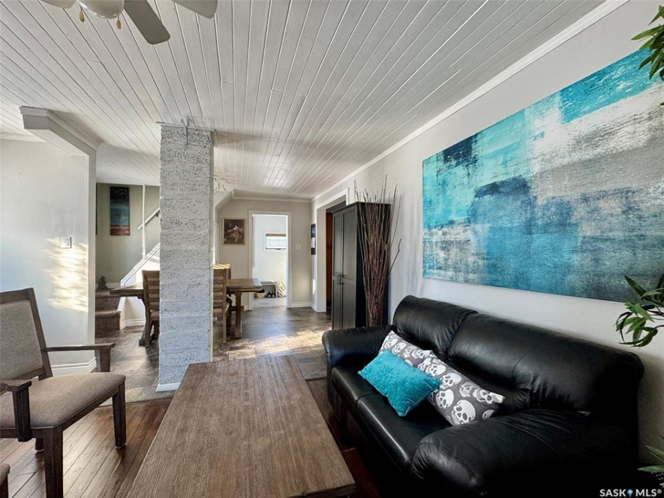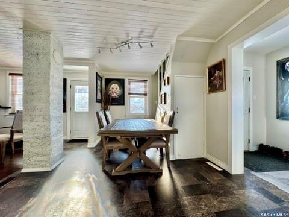 Welcome to 510 Wells Avenue East, a thoughtfully refreshed 1915 two-story home in Langenburg that blends timeless character with meaningful modern updates. A welcoming entryway offers space for multiple people to gather with ease. Throughout the home, you'll find updated flooring, many updated windows for improved comfort and efficiency, original hardwood flooring in the living room, and tongue-and-groove pine ceilings that add warmth and charm. The updated kitchen features stainless steel appliances, a dishwasher, and a tile backsplash. The main floor also includes a washroom and a bedroom well suited as the primary bedroom. Upstairs, the layout is truly unique, offering a full bedroom with old-world built-in cabinetry and a loft-style office space. A convenient upstairs sink provides added flexibility, whether for a home-based business setup or a simple morning routine. Additional upgrades include updated doors, a brand-new furnace, on-demand water heater, new central air, and a good-sized long lot. This home is a fantastic opportunity for a first-time buyer looking for character, updates, and affordability—all in one package.