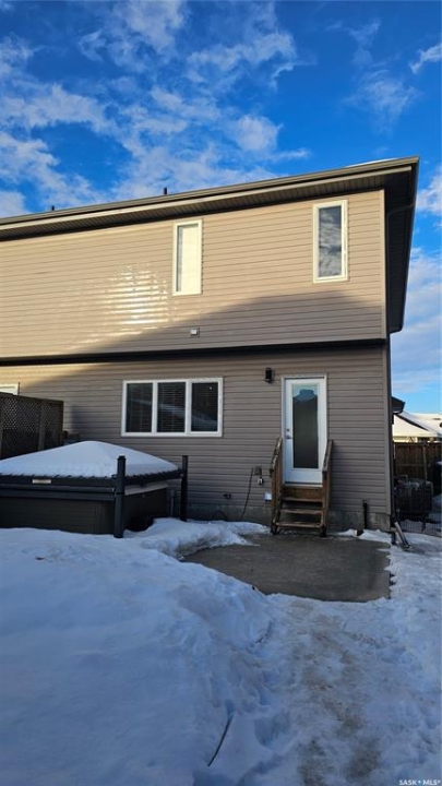 Welcome to this beautiful Semi-detached two-storey house, ideally located in the highly desired Stonebridge community offering an exceptional combination of comfort, space, and convenience. Front door greets you into a bright and open main floor that features a spacious living area that flows into a modern open-concept kitchen and dining space, complete with Big windows throughout flooding the house with natural light. You will also find a 2Pc bathroom on main floor for added convenience. Upstairs, you will find three spacious bedrooms and two full bathrooms, including a master bedroom with a 3-piece ensuite featuring a custom build tile shower. A custom-built oversized concrete patio provides direct access to the private double-car garage, adding both functionality and value. The fully fenced backyard offers the perfect opportunity to enjoy outdoor living with privacy — ideal for families with kids, summer BBQs, and gatherings with friends. The unfinished Basement is ready for your imagination and offers a great potential. Within the close proximity of this property you will enjoy Parks, Trails, Playground and also Primary school making it a desirable location for any family. Call to view today!