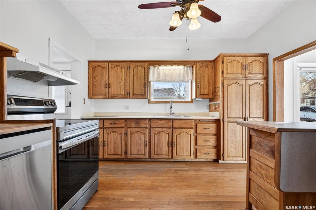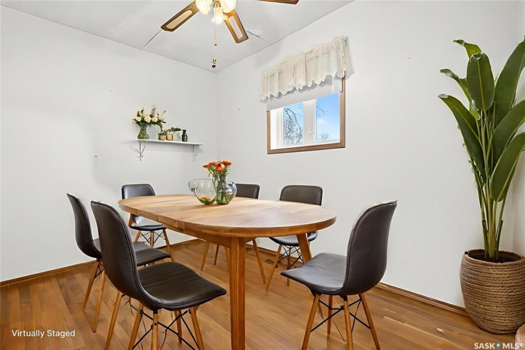 Are you looking for an excellent starter or family home? Pulling up you will notice the fenced yard and a nicely placed house on one side giving you lots of yard space on the side - bonus much of the side yard has had artificial turf installed. Heading in the side door you are greeted by a spacious mudroom with a large closet. Right off the mudroom is an updated 3 piece bath with a walk-in shower. Next we find a spacious kitchen with lots of cupboards and cabinet space. A separate formal dining room just off the kitchen is the perfect place for a family supper. You are sure to love the hardwood floors throughout the main living spaces. Towards the front of the home we have a large living room with a large bay window giving lots of natural light. Next we find the primary bedroom right at the front of the home. At the back of the home we have main floor laundry room that used to be a bedroom and could be converted back to one if you would like with laundry in the basement. On the second floor we have a den which could be used for many things - an office, bedroom or playroom and then a second bedroom. Down in the basement we find lots of storage space and utilities. Heading outside we find a nice covered deck with an included natural gas BBQ - which is sure to be a hit in the summer. As well as a large garden area and a single detached garage off the back. So many updates over the years including a sewer and water line replaced to street, newer windows, tin roof and tankless on demand hot water. Quick possession is available! Reach out today to book your showing!