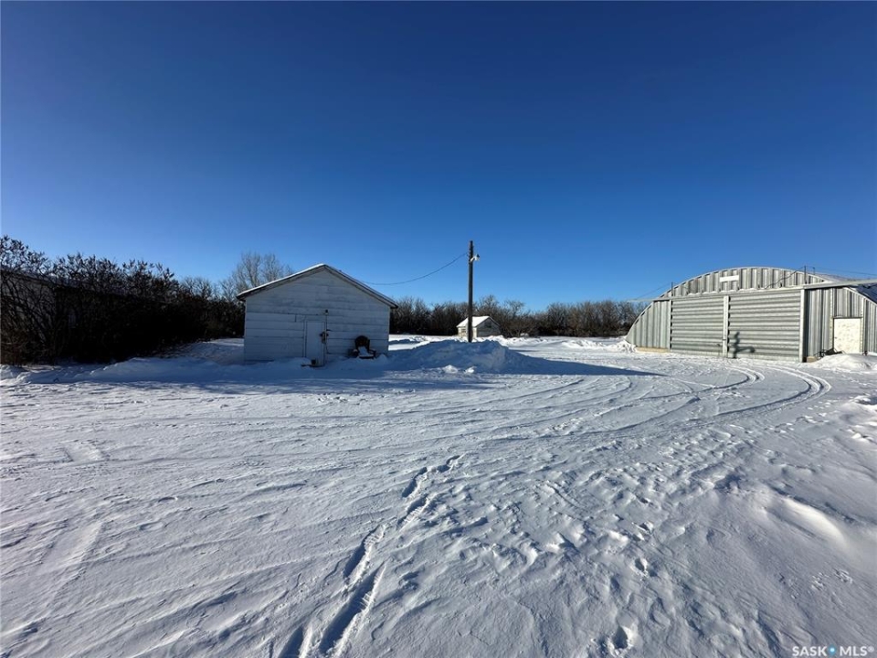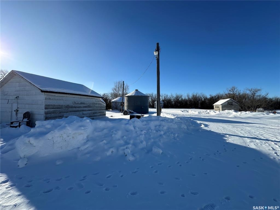 Tree sheltered mature acreage 40 min from Saskatoon North Costco on 3.92 acres 2 miles West and 1 mile North of Laird SK. 1408 sq ft solid built bungalow with older but quality finishes and a wheel chair ramp to the front door. Serviced by Sask Energy & Sask Power and on its own well makes for very economical utility costs! The yard has a detached 12'x24' garage, a 50x80 steel arch ribbed quonset, & other out buildings. Lots of space for gardening and a great place to raise a family! Only a few miles of gravel to Laird with a K-8 school, the High School is a little further at Waldheim. Main floor features a living room with a large window, kitchen & dining facing the driveway and the yard, 3 spacious bedrooms and 2 bathrooms, 2 entries, & a great laundry room. The basement has an additional bedroom, a roughed in bath, games room, family room, office, & a storage room. Here is your opportunity to escape to the country but with great amenities!