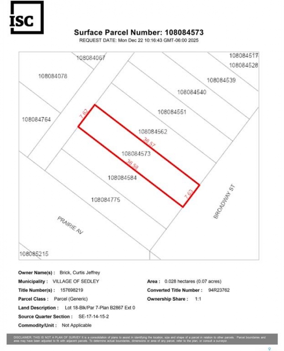 Build your dream home or invest in Sedley with this incredible triple-lot bundle! Spanning a total of 75' x 125', this oversized corner parcel combines three lots into one unbeatable price, offering endless flexibility for a sprawling custom residence, large shop, or potential multi-home development. Seller states existing services are conveniently located at curbstop to jumpstart your build. Enjoy the best of small-town living with a quick, easy 30-minute commute to Regina. Whether you're a developer looking for ROI or a family seeking more space for less, this versatile property is a rare find. Don't miss this opportunity to create something special!