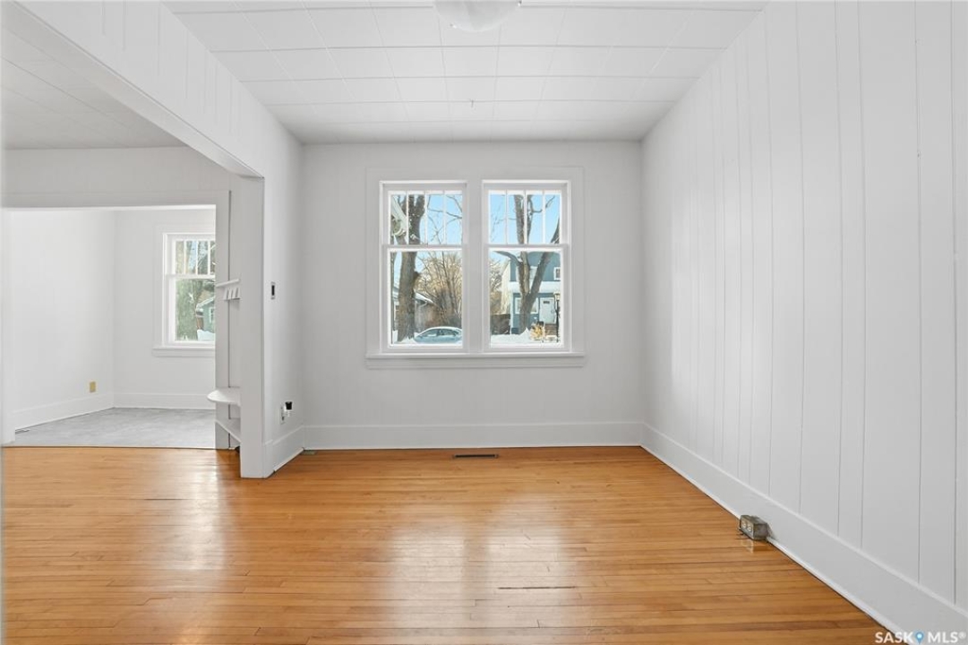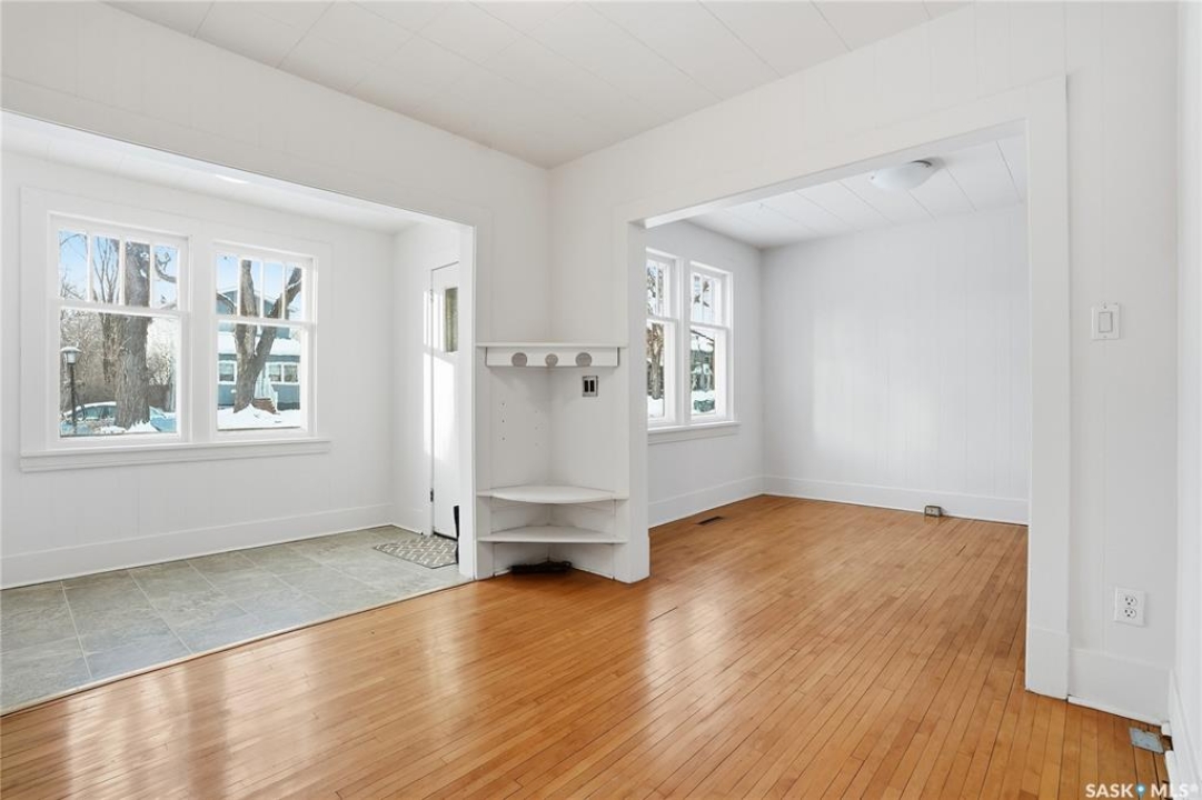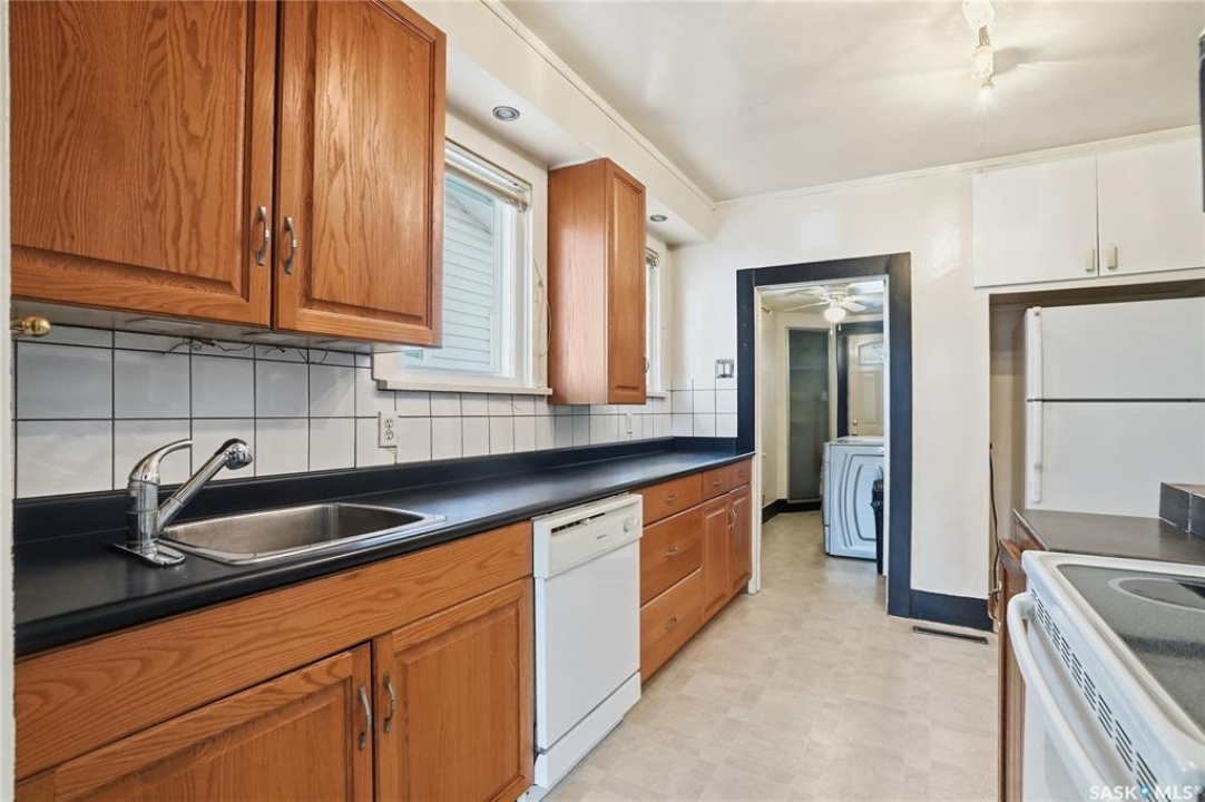 Welcome to 912 5th Avenue North, a charming bungalow set in the heart of Saskatoon's ever-popular City Park neighbourhood. This home blends classic charm with a truly unbeatable location, sitting just steps from downtown, the university, the river, hospitals, and an impressive collection of local shops, cafés, and workplaces. Inside, a bright, welcoming foyer leads into a cozy living room and a separate dining area, all freshly painted for a clean, move-in-ready feel. The main floor offers two comfortable bedrooms, also newly painted, along with a full bathroom. Downstairs, the basement provides ample storage and exciting potential for future development. Outside, the yard is easy to maintain, yet still offers room for a garden or play space. A spacious deck with attached shed extends your living area outdoors and the single detached garage is insulated, and there's even potential for extra parking beside it. Additional features include main floor laundry, underground sprinklers and a natural gas BBQ line. Offered at just $289,900, this property delivers exceptional value in one of Saskatoon's most walkable and vibrant neighbourhoods. Whether you're a first-time buyer, busy professional, or downsizer prioritizing location and lifestyle, this home quietly (but confidently) checks all the boxes.