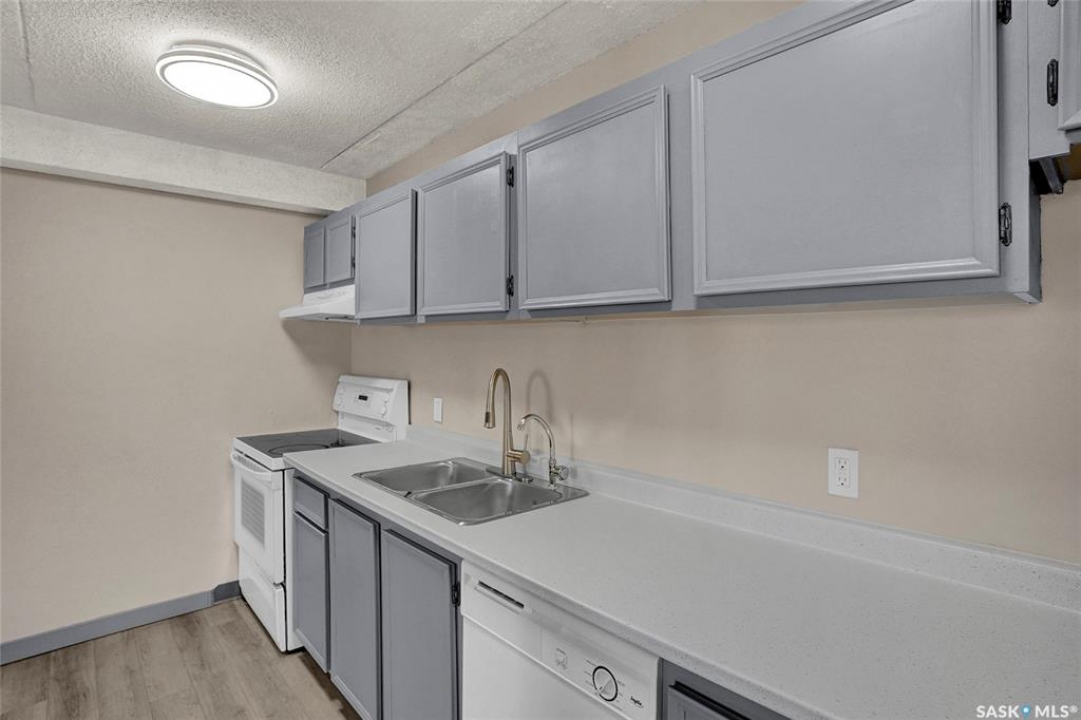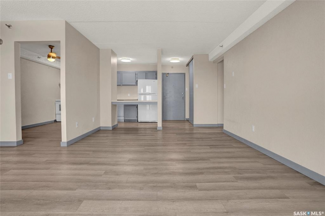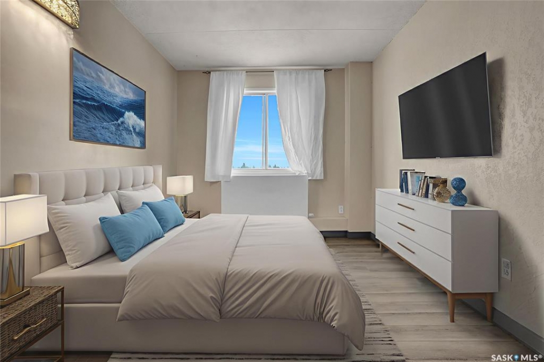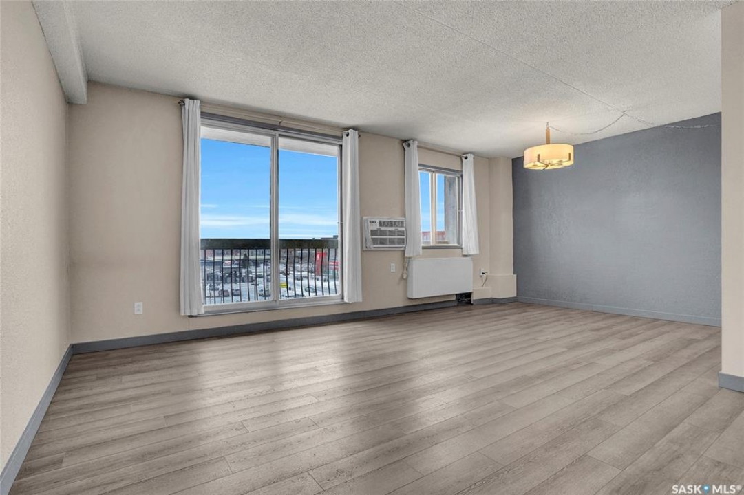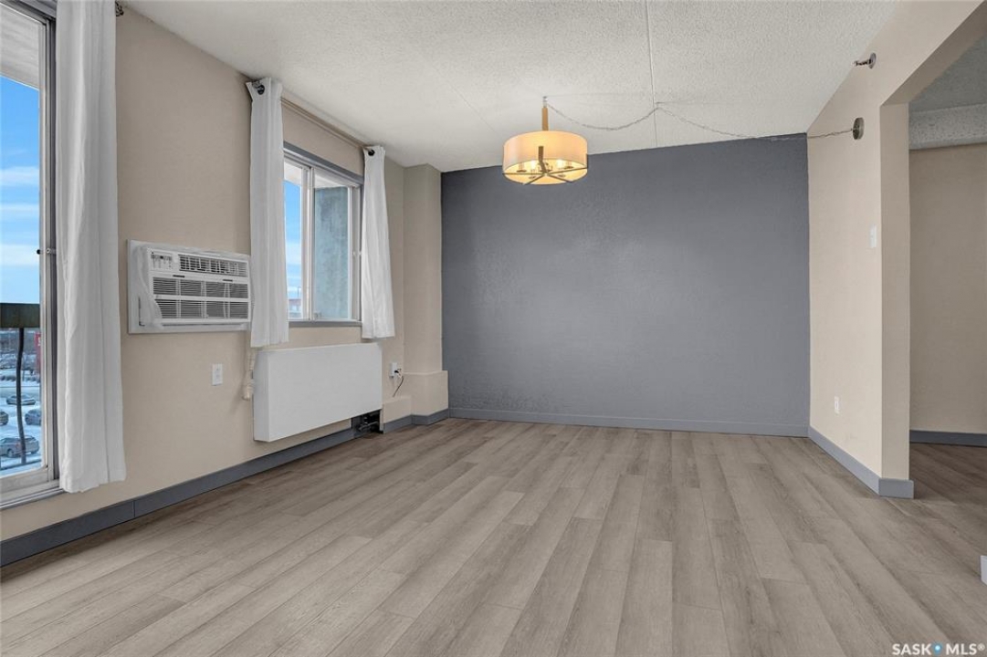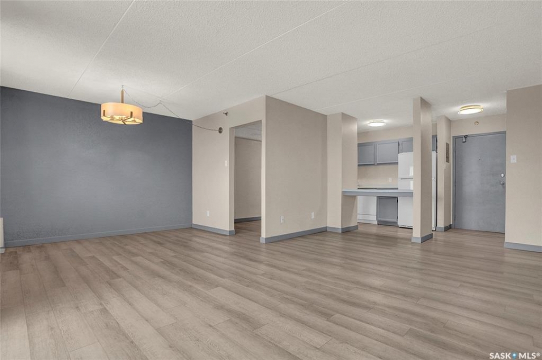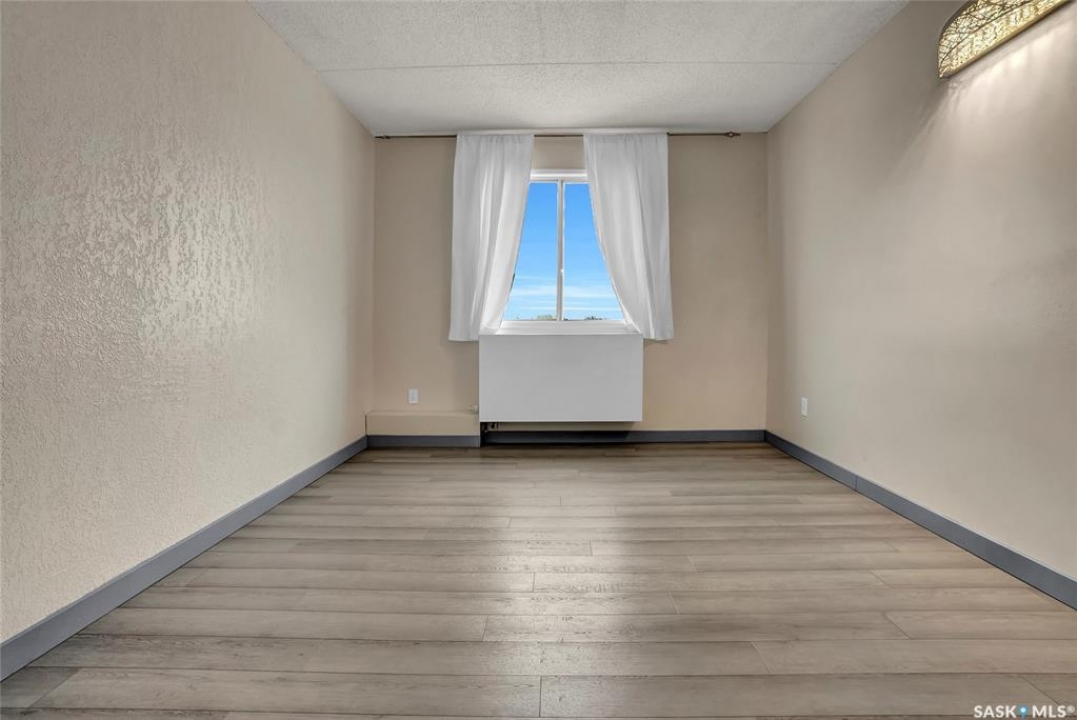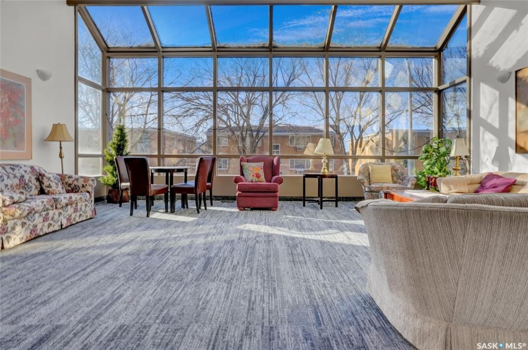 The Atrium Condo Complex, located in a fantastic Southwest area of Regina in Parliament Place is an extremely well-maintained 2 bedroom apartment-style condo that offers both convenience & comfort. Its proximity to shopping, restaurants, & medical clinics makes it an ideal spot for those who enjoy city living. Perfect for 1st time buyers, downsizing & investors. This desirable location & condo complex is constructed from concrete, ensuring security & quietness for all residents. Additionally, it offers various shared spaces such as an amenities room, Atrium lounge on the 2nd floor, an exercise area, visitor parking & common laundry rooms as well is wheelchair accessible w/elevator and underground parking. This unit is situated on the 5th floor and provides great views from its expansive balcony, making it perfect for enjoying summer evenings. Welcome new vinyl floor plank flooring that runs through the unit, creates a seamless connection in the open concept design. The living & formal dining areas enjoy large windows and patio doors to the balcony and are spacious. The dining area opens into the casual dining nook that connects to the galley style kitchen. All appliances are included. The kitchen even has a breakfast bar nook overlooking the living room which adds not only openness but extra workspace. Being one of the larger units in the building, there are 2 bedrooms with the primary bedroom boasting an oversized walk-in closet that offers additional storage space. Completing this unit is a 4pc. bath and a practical storage space which is perfect for pantry items. This condo combines practicality with elegance, making it a desirable choice for anyone looking to enjoy urban living with all the comforts of home in an affordable and prime location. (Some photos for Living, Dining and Bedrooms have been virtually staged to show space and possible furniture arrangements). CLICK ON THE MULTI MEDIA LINK FOR A FULL VISUAL TOUR and call today for a personal tour.