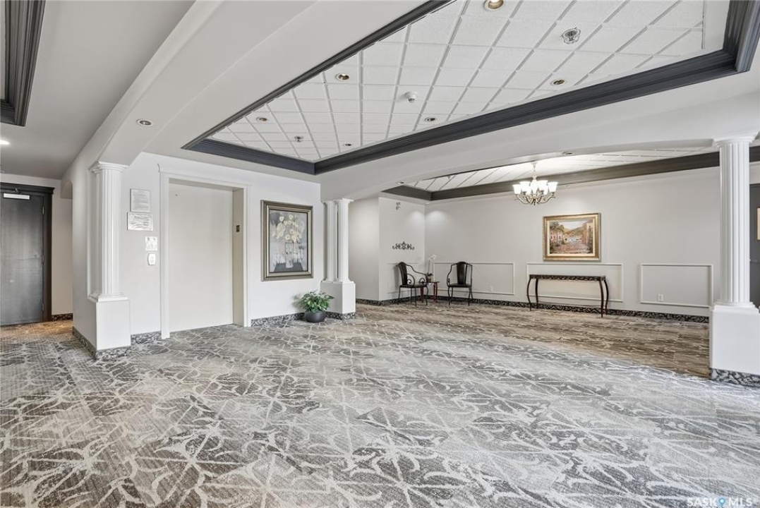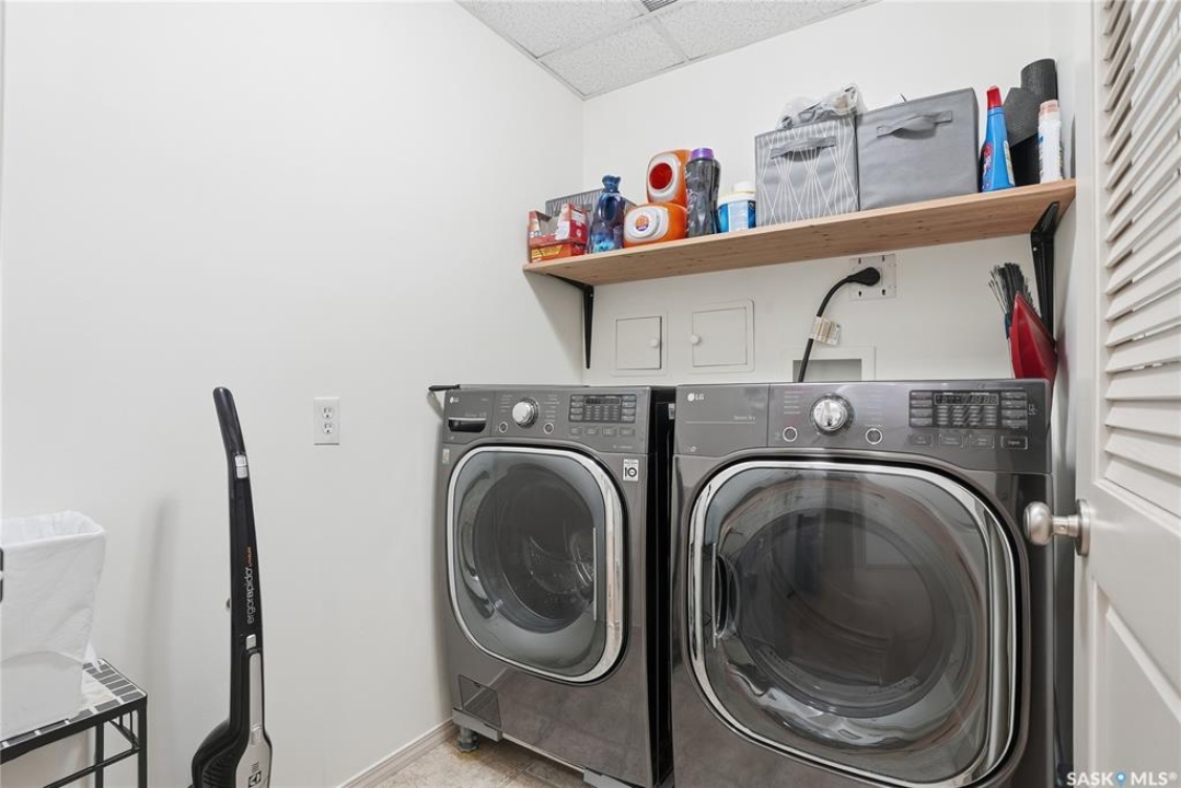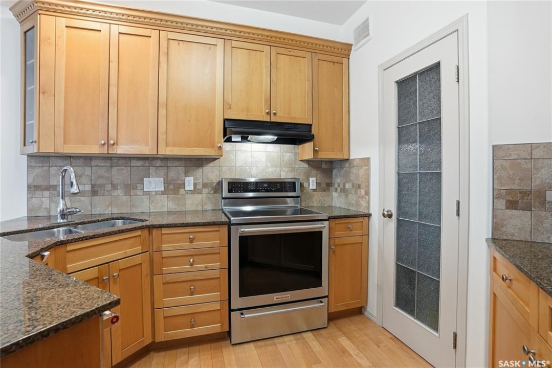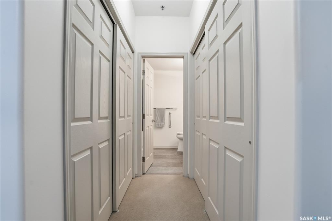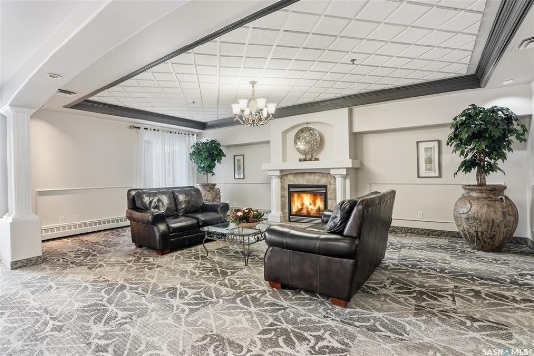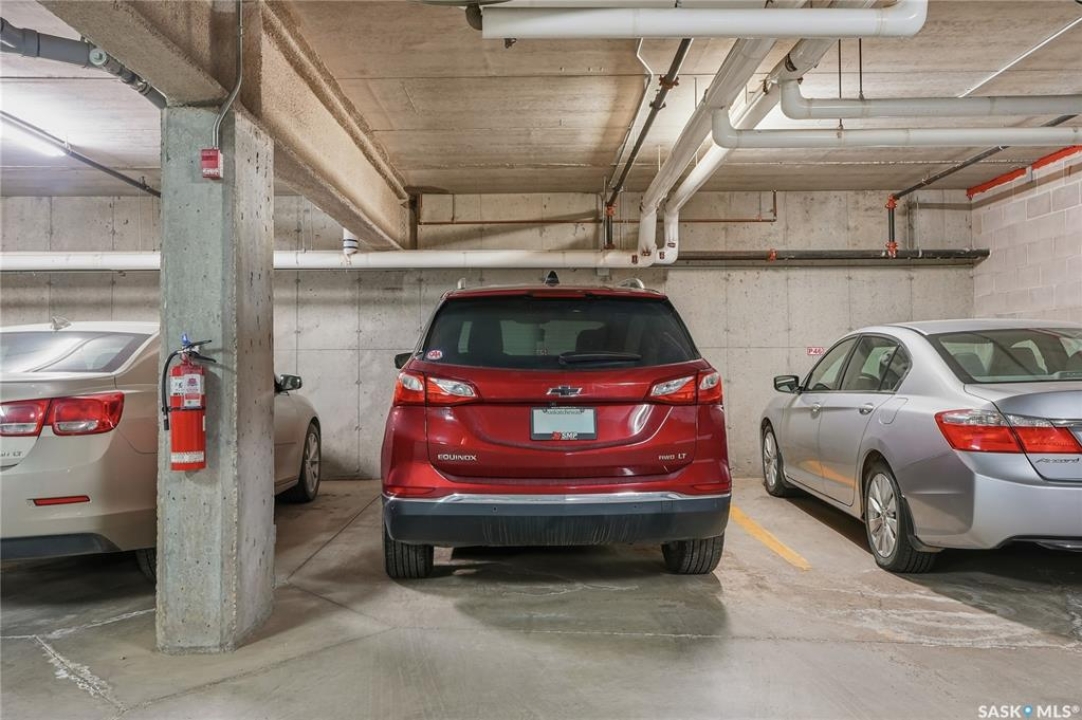 Welcome to Unit #112 at 928 Heritage View, ideally situated in the highly sought-after Wildwood neighborhood. This prime location offers easy access to scenic walking paths, nearby parks, and convenient routes to 8th Street and Circle Drive. This former show home is a main-floor unit that showcases quality finishes throughout, including beautiful newer maple hardwood flooring, 9-foot ceilings, and a bright open-concept layout. Upon entry, you're greeted by a front closet and a dedicated laundry room complete with an LG washer and dryer. The versatile office/den is perfect for additional guests or a work-from-home setup. The kitchen is thoughtfully designed with ample maple cabinetry accented by crown molding, stainless steel KitchenAid appliances, a pantry, tile backsplash, and a peninsula island offering additional seating. The kitchen flows seamlessly into the living room, which provides direct access to a southwest-facing wraparound Duradek balcony featuring two storage rooms—ideal for enjoying outdoor space and extra storage. The spacious primary bedroom offers abundant natural light and a walk-through double closet leading to a private 3-piece ensuite. The ensuite has been tastefully updated with a glass shower, luxury vinyl flooring, newer quartz countertop, newer toilet, and linen closet. An additional generously sized bedroom, a 4-piece bathroom with newer quartz vanity, newer luxury vinyl flooring, and tub/shower complete the interior. This unit includes one surface parking stall and one underground stall with additional caged storage. Residents enjoy access to an amenities room, exercise room, lounge, and ample visitor parking. Meticulously maintained by the original owner, this beautiful home is truly move-in ready and a must-see.