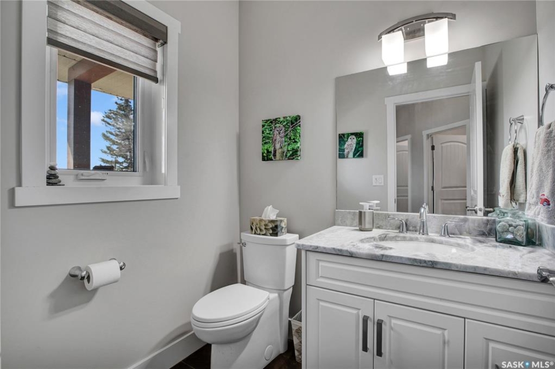 This beautiful, private acreage features 5 bedrooms, 4 bathrooms, a triple-car attached garage, and multiple outbuildings. Located just 22 minutes from Saskatoon, this acreage sits just outside the town of Delisle which features all amenities such as schools, grocery, gas, recreational activities and more. This 2020 built bungalow was customized with high building standards. The veranda at the front of the home provides entry into both the dining room and front hall. The spacious front entry gives access to the triple attached heated and insulated garage, half bathroom and main floor laundry room. The kitchen offers a large island, custom soft closet cabinets and drawers, glass tiled backsplash, quartzite countertops, large pantry and Jenn Air appliances. The kitchen is open to the family room with vaulted ceilings, a propane fireplace and large windows providing both a scenic view and an abundance of natural light. The sun room is fully insulated and can be used year round with a space heater or by leaving the doors open to the main living space. The great room boats 18ft ceilings and a second propane fireplace. Down the hall are three bedrooms including the master suite and the main bathroom. The master offers a walk in closet, five-piece ensuite with a water-air tub, separate stream shower, double sinks and access to the back deck. The outbuildings include the following: Quonset (42 X 70), Shop (20.5 X 33), Horse Stable, 24.5 X 14.5). The workshop is heated and insulated. The large Quonset is finished with a concrete floor and large double doors. The horse stable features two sliding doors and is perfect for horses. The home is finished with 50 year fiberglass shingles, commercial grade ROXUL insulation, triple pane windows, fiberglass doors, high efficient furnace and 100 gallon hot water tank with circulation system. There is a two stage system septic field with pump out and 1500 gallon – fiberglass tank.