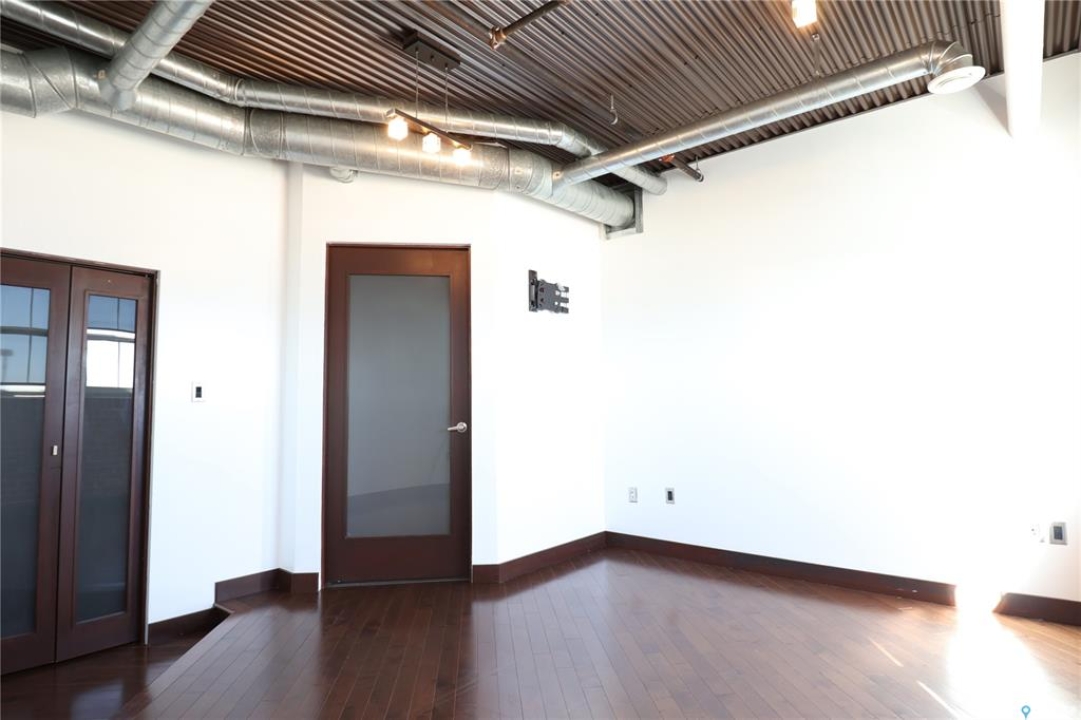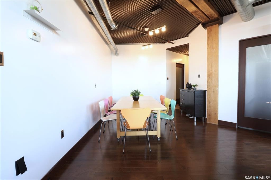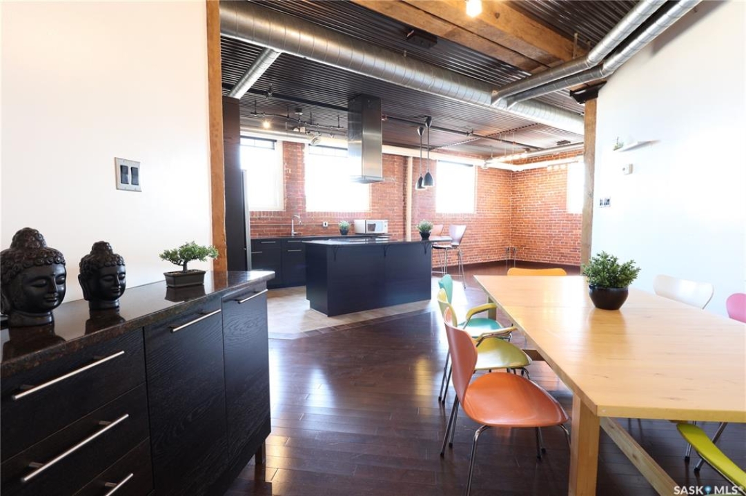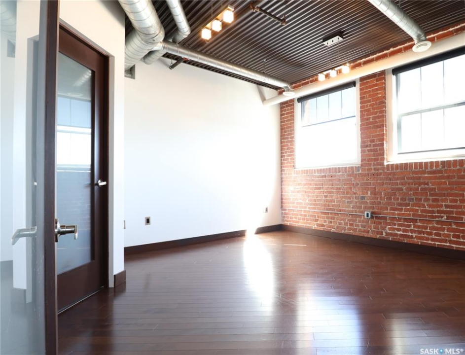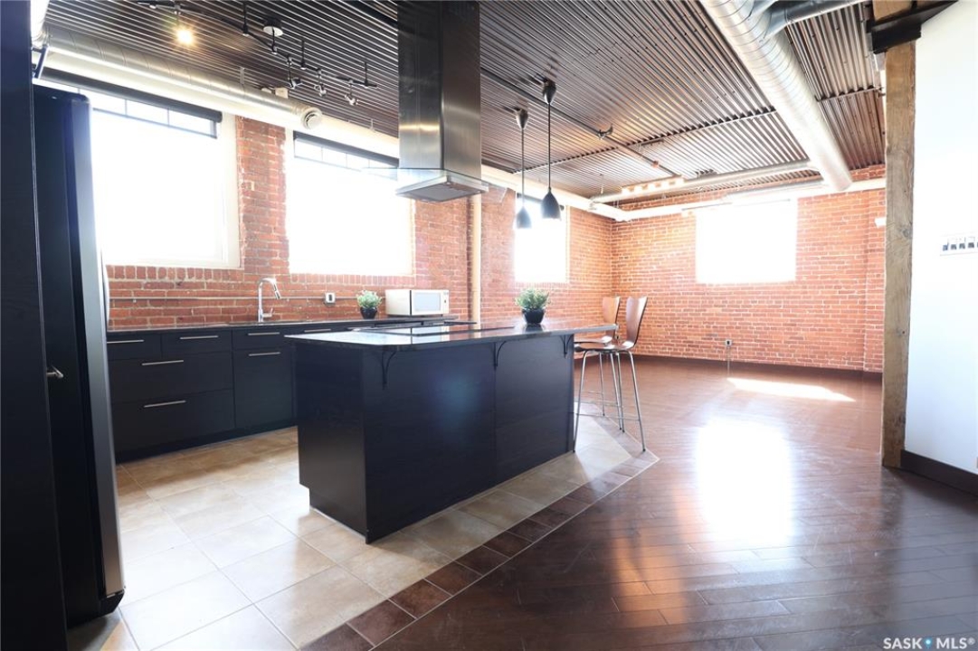 Discover this beautiful 1-bedroom, 2-bath condo in the iconic The Brownstone —where executive finishes meet urban edge. The 1,200+ sq. ft open-concept layout features exposed brick, wood beams, hardwood floors, and a custom kitchen with granite countertops, a tile backsplash, and sleek stainless steel appliances. The spacious primary suite features a walk-in closet, an en-suite bathroom with a shower, and an abundance of natural light. The main bath is spa-sized with a luxurious Jacuzzi tub, perfect for unwinding after a long day. You'll love the extra storage throughout and a cozy den—ideal as a hobby room or a flexible workspace. Enjoy the convenience of private, gated parking and plenty of storage. The former John Deere Building offers secure access and unique amenities like a freight elevator for easy move-ins. Plus, you'll have direct inside access to Drip Cafe for your morning coffee fix. Just minutes from downtown, restaurants, and nightlife, this is your chance to embrace an upscale, low-maintenance lifestyle in one of Regina's most sought-after addresses. Ready to see it for yourself? Book a showing today!