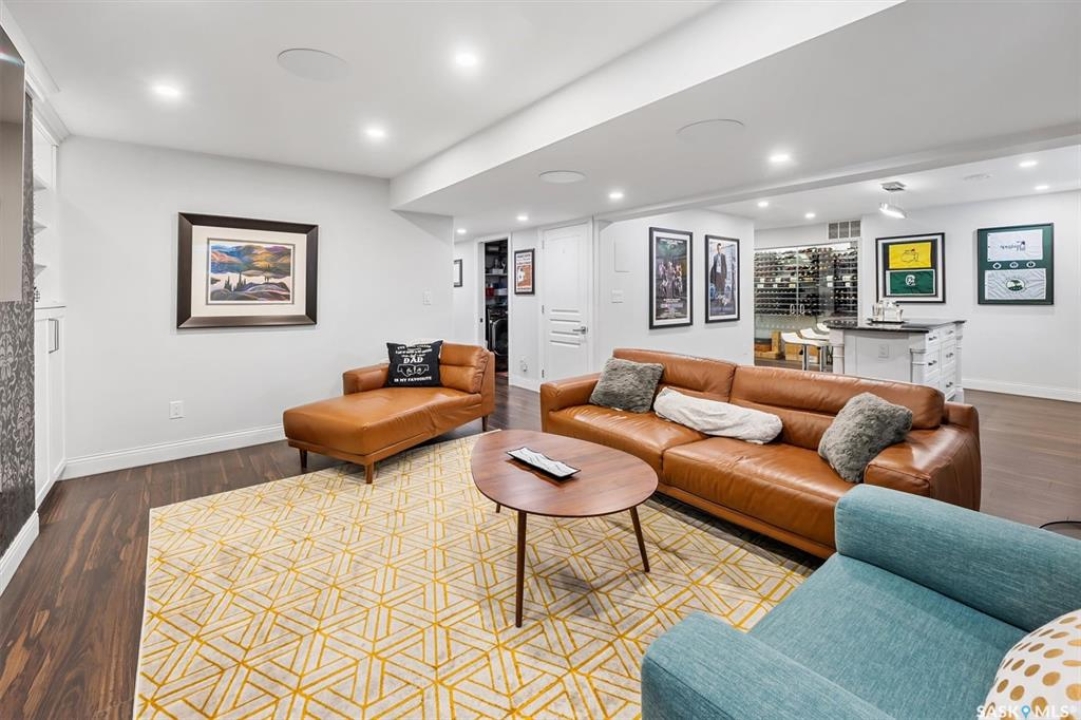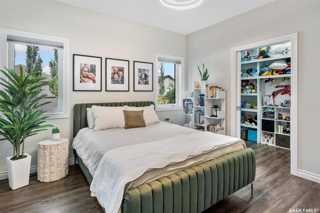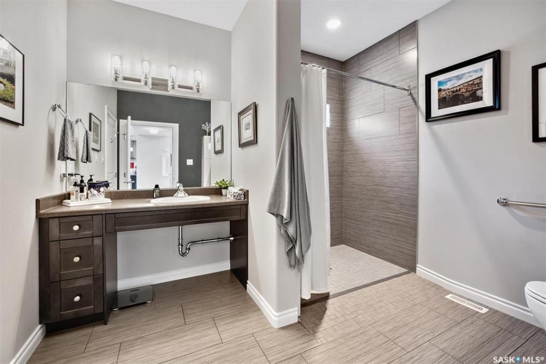 Immaculate custom-built home in Warman with Premium finishings designed with wheelchair accessibility in mind. Main Floor: Extra-wide galley kitchen with granite counters, high-end appliances (gas stove/hood fan, double-door fridge/freezer, built-in microwave, dishwasher). Main-floor primary bedroom with walk-in closet and direct access to 3-pc accessible bath. Wide hallways, lever handles, roll-under sinks. Personal 3-stop elevator with access to garage, main, and basement. Second Floor: Second primary bedroom plus bedroom/office. Shared 4-pc bath (reno 2022) with access from both rooms. Basement: Exceptional entertainment space featuring a large family/media room with fireplace, custom shelving, and 10-speaker Dolby Atmos system. High-end wet bar with granite island, dual-drawer dishwasher, drying-rack sink, custom cabinets, and glass wine cellar (300 bottles). Bedroom with built-in queen Murphy bed next to 3-pc bath. Laundry, storage, and utility rooms. Garage: Fully insulated and heated double garage with EV charger and full golf simulator (projector, retractable screen/enclosure). Elevator access. Yard: Low-maintenance landscaping with composite deck, 4-hole putting green, artificial chipping area, extensive patio with multiple seating/BBQ areas, vinyl fencing, large garden boxes with underground sprinklers, and four storage sheds. Accessibility Highlights: Two roll-in showers with grab bars and multi-head fixtures, full turning radius bathrooms, wide hallways/kitchen, extra-wide fence gates, moveable rubber ramp, main-floor bedroom sized for lift use. Updates: Hot water tank (2019), upstairs bath (2022). A must see for any family!