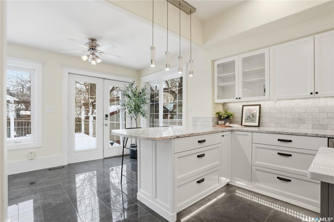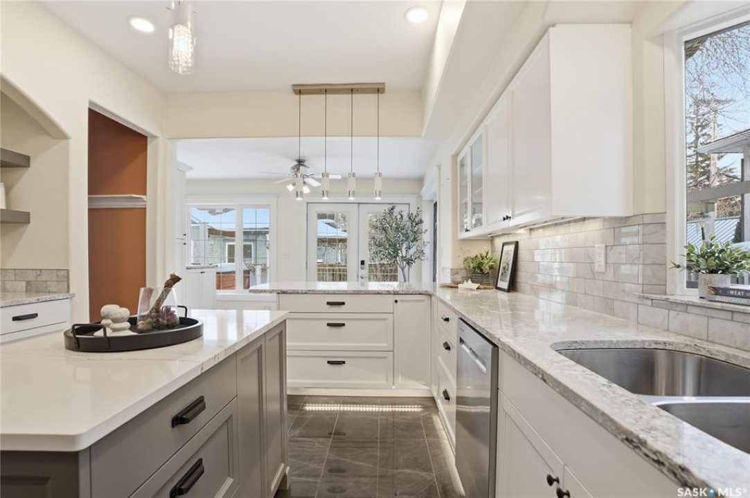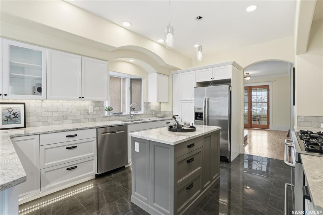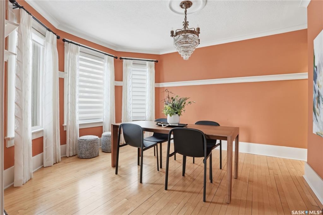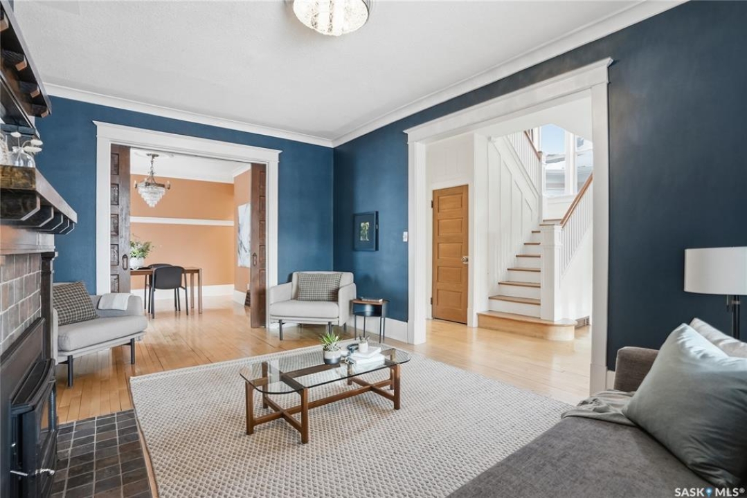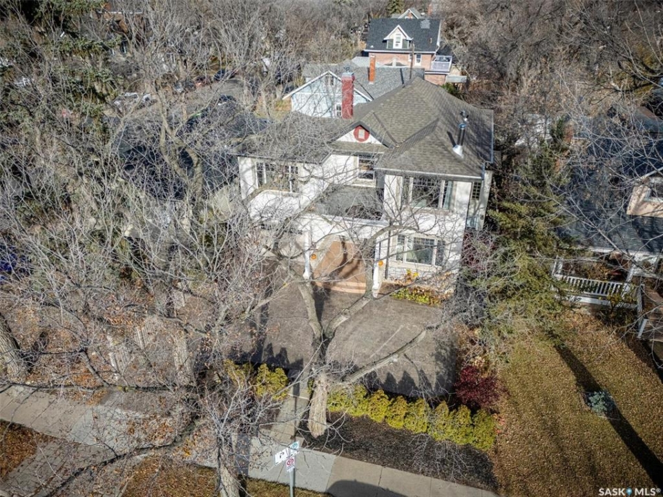 Don't miss this INCREDIBLE character home in one of Saskatoon's most desirable neighbourhoods! A stately family home with a fully developed basement with separate entry. This property exudes pride of ownership with charm and professional updates throughout. Enter into the main floor to find a welcoming sunroom and lrg foyer, living room with wood burning fireplace, and a formal dining with a bay window. At the heart of the home is a chef's DREAM KITCHEN- spacious and beautifully appointed with quartz countertops, stainless appliances, and a sit-up eating area that opens onto a sitting room, overlooking a large deck and private yard. A 2-pc bath completes the main. Upstairs, you'll find 3 bedrooms: a primary suite with an ensuite and a charming private deck of the master. Two additional lrg bedrooms and a newly renovated 3-piece bathroom complete 2nd flr. Large windows flood every room with natural light, highlighting the significant character. Extensive renovations and upgrades have been meticulously completed recently, blending heritage with modern class. The unique dev basement offers a modern living room, lounge and 1 bed layout with a sep entrance, 4-pc bath, 2 x laundry, kitchen, and a family room w/ gas fireplace — ideal for additional cash flow. The oversized, heated att garage includes a large attic storage area above. The front yard is low maintenance with a stamped concrete driveway providing parking 3 vehicles. The private backyard will impress w/manicured grounds: a two-tiered deck, garden boxes, artificial turf, curbing, and climbing vines. In total, there are three decks, including a covered front deck and the private balcony of the master. Upgrades include: furnace, hot water heater, shingles, garage, decks, kitchen, two bathrooms, basement development, many new windows, updated exterior, and driveway — the list goes on! This gem is ideally situated within walking distance to the river, downtown, U of S, and all hospitals, the location is unbeatable!