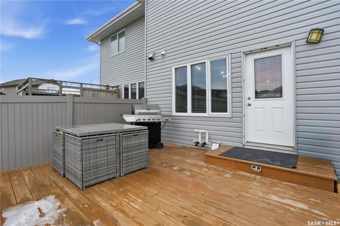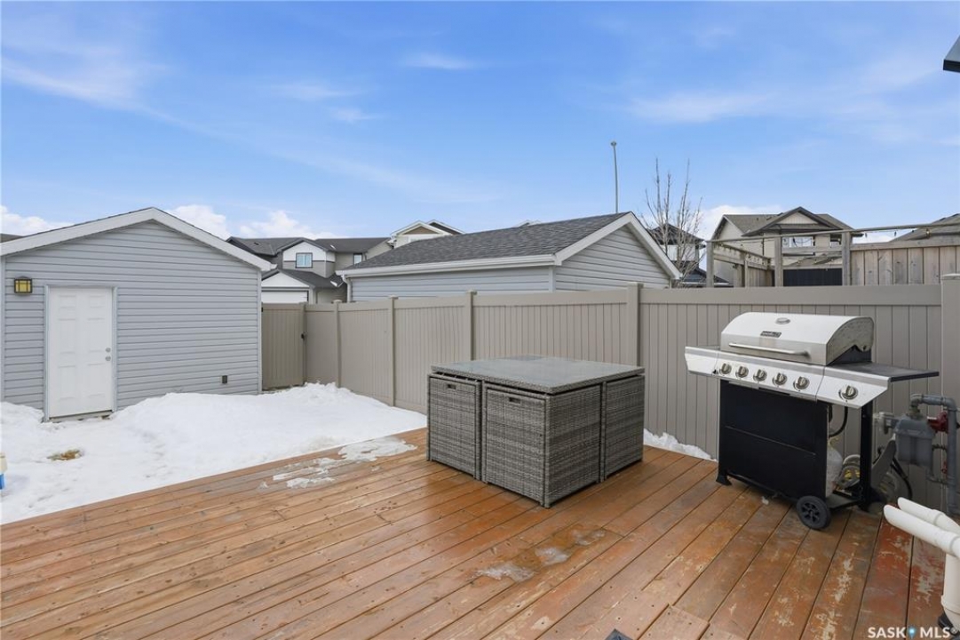 Welcome to 7904 Canola Avenue - a well-cared-for family home ready to welcome its next owners. Located in Regina's up-and-coming Westerra neighbourhood, this home offers the best of city convenience paired with a relaxed pace, surrounded by parks, green spaces, and walking paths. The main floor features a thoughtfully designed open-concept layout that seamlessly blends the family room, dining area, and kitchen - perfect for both everyday living and entertaining. The rear-facing kitchen is filled with natural light and offers a large pantry, generous counter and cabinet space, and direct access to the backyard. A convenient 2-piece powder room completes this level. Upstairs, you'll find a unique dual primary bedroom configuration, with both bedrooms offering generous square footage and their own spacious ensuites. The laundry area is also located on this level, adding everyday convenience. The basement is wide open and ready for future development, should you need additional living space, and includes a roughed-in bathroom for a potential fourth bath. Step outside to enjoy your fully fenced and finished yard - ideal for hosting summer BBQs or unwinding in the evenings. A detached garage provides space for parking and extra storage. Value-added features include all appliances, a fully finished yard, owned water heater, furnace humidifier, and more. A fantastic opportunity in a growing neighbourhood — this home is move-in ready and full of potential.