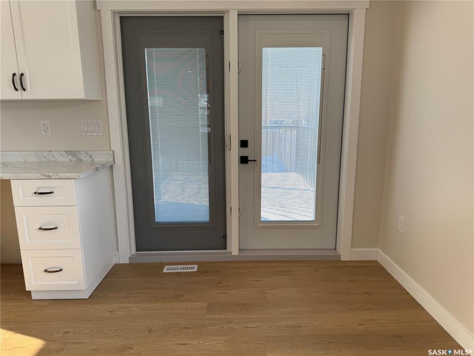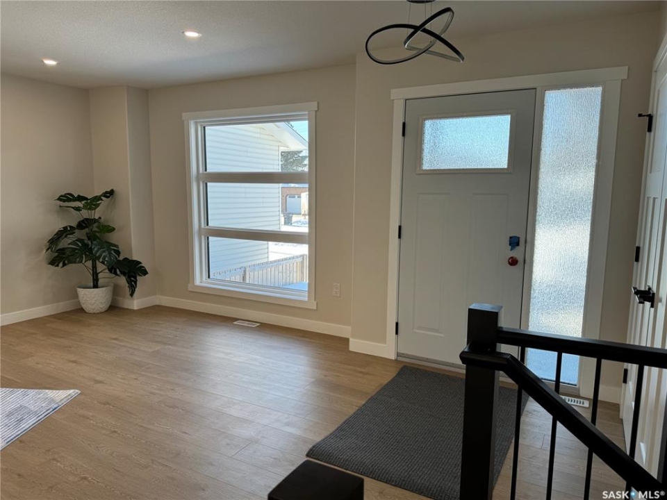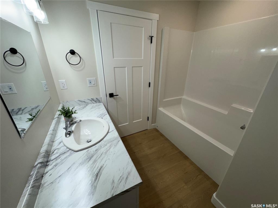 This stunning custom-built 2025 bungalow is crafted by a highly reputable builder and offers 1,354 sq. ft. of thoughtfully designed living space, plus a fully finished basement. The home features a fully fenced yard, maintenance-free deck, double concrete driveway with sidewalk, and a double insulated and heated garage—perfect for year-round comfort and convenience. The main floor welcomes you with two separate entrances sharing a spacious closet, ideal for busy households. You'll find three bedrooms on the main level, one of which is equipped with washer/dryer hookups for optional main-floor laundry. The primary bedroom includes a large walk-in closet, ready for the buyer to customize with a $1,000 design allowance. The open-concept main living area is bright and inviting, featuring custom white kitchen cabinetry and easy-maintenance flooring that flows seamlessly throughout—perfect for modern living and entertaining. The finished basement adds exceptional value with two additional bedrooms, a large family room/games area, ample storage, a 4-piece bathroom, and a dedicated utility room. Additional highlights include central air conditioning and central vacuum. Ideally located within walking distance to an elementary school and church, this home offers both comfort and community. Note: GST and PST extra. Property taxes on land only. Seller to assign any housing rebates to the Buyer. Buyer to verify all measurements. FLOOR PLAN AVAILABLE UPON REQUEST. A move-in-ready property that combines quality craftsmanship, smart design, and an excellent location. Calll to view today!