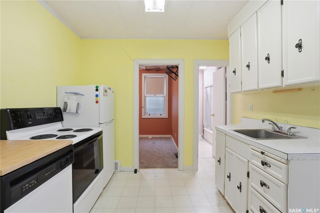 You'll find this starter or revenue home just blocks from the Pasqua Hospital. This two-bedroom, one bath home features a fenced yard, double detached garage and lane access. Value added features include central A/C, sump pump and 100 amp panel, call your agent to book a showing.
