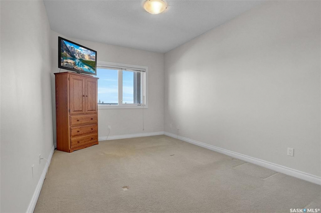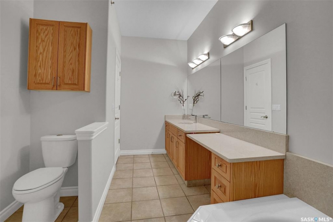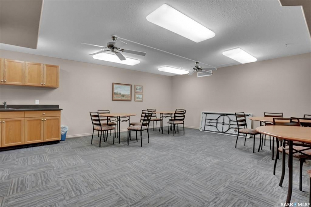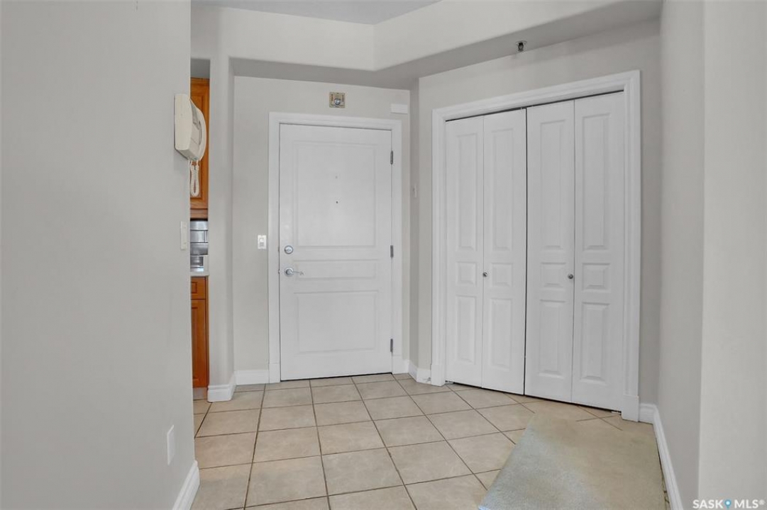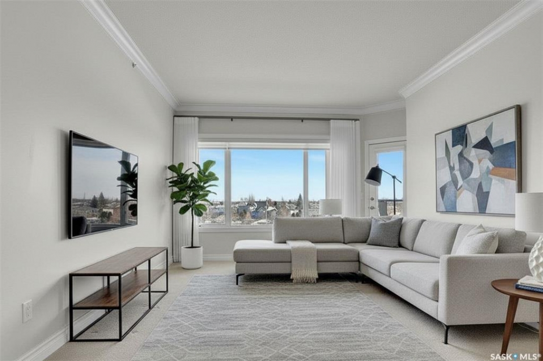 Welcome to this lovely top floor condo that offers 2 spacious bedrooms, 2 bathrooms, and 2 designated parking spots. This condo offers beautiful views of the lake, Sandra Schmirler Leisure Centre, all while being steps away to a coffee shop, library, walking paths, and more. A bright airy condo in an unbeatable location. This spacious and well- designed unit features a fantastic floorplan that is both functional and comfortable. The kitchen is a standout with solid wood cabinets, upgraded granite countertops, ample storage, and a sit up peninsula island – that is perfect for casual dining, and entertaining. The living room and dining area are perfect to relax and enjoy family gatherings. The primary bedroom offers a large walk- in closet and a 4pc ensuite. The 2nd bedroom is spacious and there is a 2nd main 4pc bathroom. You will enjoy the convenience of in suite laundry with storage room. Just off the living area, is access to your private balcony where you can take in the beautiful scenic views, extending your living space outdoors. The condo has been freshly painted and is truly move in ready. There is an additional storage room located on the same floor. The parkade is located on the main floor and includes a wash bay for all residents to use. The building offers a games room, and amenities room. Extremely well maintained, and ready for a new owner, this condo offers an undeniable presence rarely found in the market. Condo fees include: Heat, Water, Sewer, Building Insurance, Common Exterior and Interior maintenance, Lawn Care, Snow Removal and Reserve Fund.