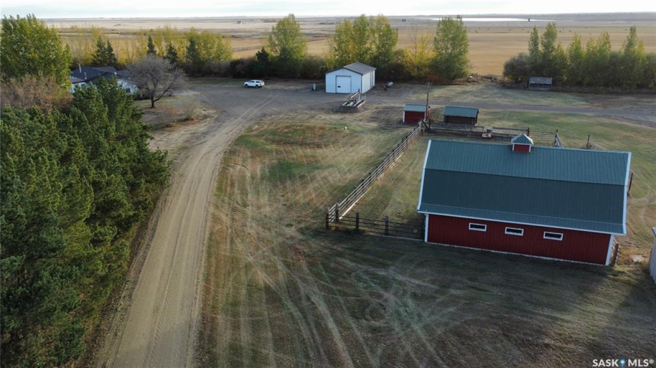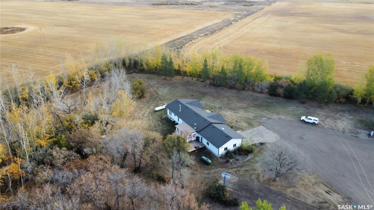 All offers to be received by 5:00 pm. Feb 17th, 2026. This well-developed 10-acre acreage offers a rare combination of comfortable family living and exceptional shop and storage space. The 1,800 sq. ft. home, built in 1995, features five bedrooms and multiple bathrooms, including a 3 piece ensuite, 2 piece bath, laundry at the entrance, a 4 piece main bath, and a 3 piece bath in the basement. The living room offers a propane gas fireplace, while the basement includes a wood-burning fireplace for added warmth and character. Outbuildings are a standout feature of this property. The 28' x 42' insulated shop is propane heated with a concrete floor, 12' x 14' automatic overhead door, and 225-amp service. A heated attached garage measuring 25' x 30' is wired with 40 amps. Additional structures include a 26' x 40' red barn with tin roof and siding, and a 50' x 100' steel Quonset with a 27' w x 16' h door, ideal for equipment and storage. The home is serviced with a 100-amp electrical panel. The yard site is beautifully treed, providing privacy and shelter. Water is supplied by a well (1968) with septic system. School bus service is currently available to Luseland, with prior service to Kerrobert according to the owner. Property taxes have not yet been assessed and are estimated at approximately $4,000 annually. Furnace, water heater a/c approx. 2022. Shingles on house approx. 2015. 2 watering bowls. 1000 gal propane tank at shop, 1000 propane tank at house (house one lasts 1/2-3/4 yr., according to owner), 500 gal propane tank at garage. Well was drilled in 1968, owner does not drink the water, had an RO system under sink, needed to be replaced and owner has moved so never replaced it. Septic tank is probably original (1995) according to the owner. Steve pumps out every fall. Liquids pump out to NE corner. No water issues here. Available for a quick possession A versatile acreage offering space, infrastructure, and a peaceful rural setting.