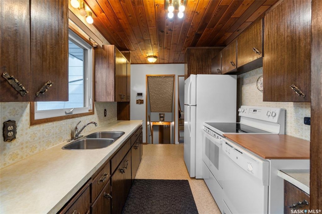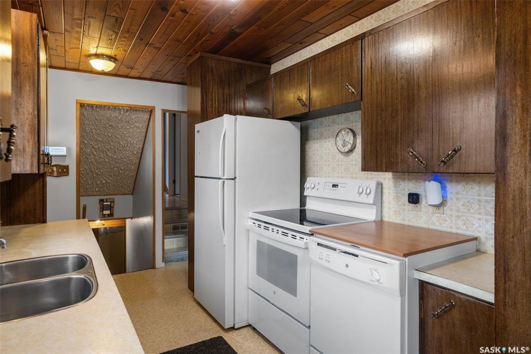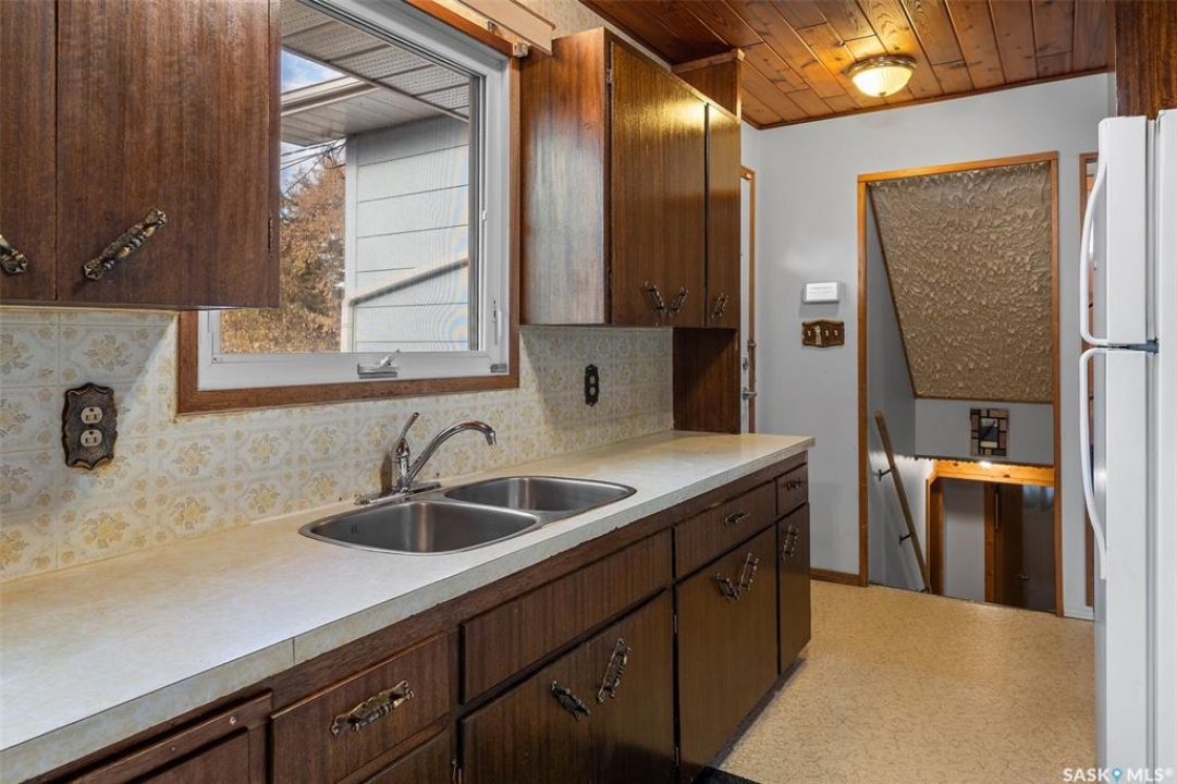 Welcome to 1513 Avenue G North in the desirable Mayfair area. This 1040 sq ft four-level split offers excellent potential with plenty of space for a growing family. The main level features a bright and inviting living room and dining area with large upgraded windows that fill the space with natural light. Upstairs you'll find three good-sized bedrooms and a full bathroom. The third level offers an additional bedroom, bathroom, and a spacious recreation room complete with a wet bar—perfect for entertaining or relaxing. The home features a beautiful custom stone fireplace, central air conditioning, and a large soaker tub. Some cosmetic upgrades would easily modernize this well-cared-for home has great layout potential. Outside, you'll appreciate the back alley access, a 26' x 20'oversized single garage with a wood stove, and ample yard space. With its functional floor plan, R2 zoning, and great Mayfair location, this property is a fantastic opportunity to build equity and make it your own.