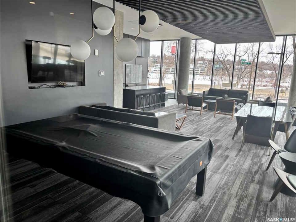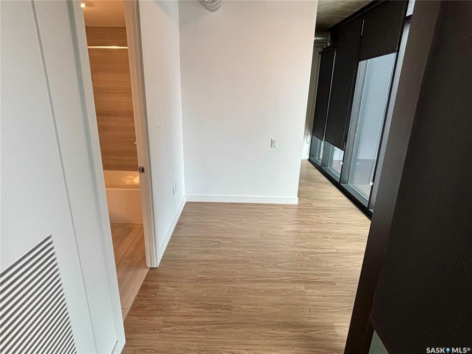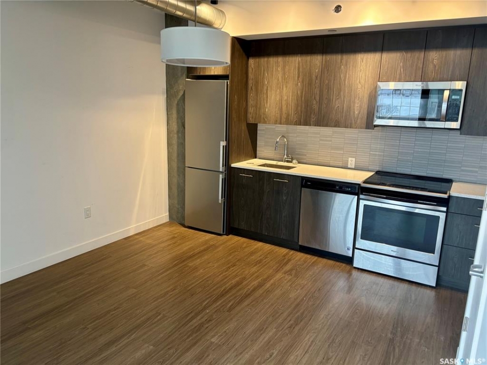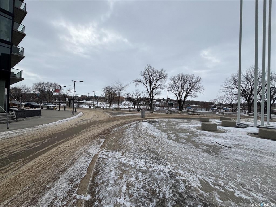 Welcome to Unit 804 at 490 2nd Ave S. This bright 1-bedroom, 1-bathroom condo sits on the 8th floor of a sought-after riverfront building, offering beautiful views and abundant natural light. The suite features quartz countertops, in-suite laundry, and one underground heated parking stall. Residents enjoy access to a fitness centre overlooking the river, a spacious amenities room, and elevator access. A perfect blend of comfort, convenience, and location. The nook refers to space in hall which will fit a small desk and office set up!