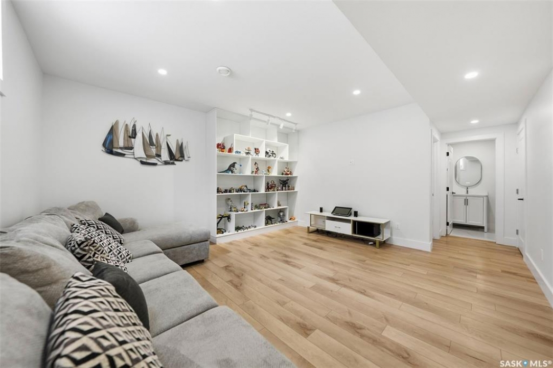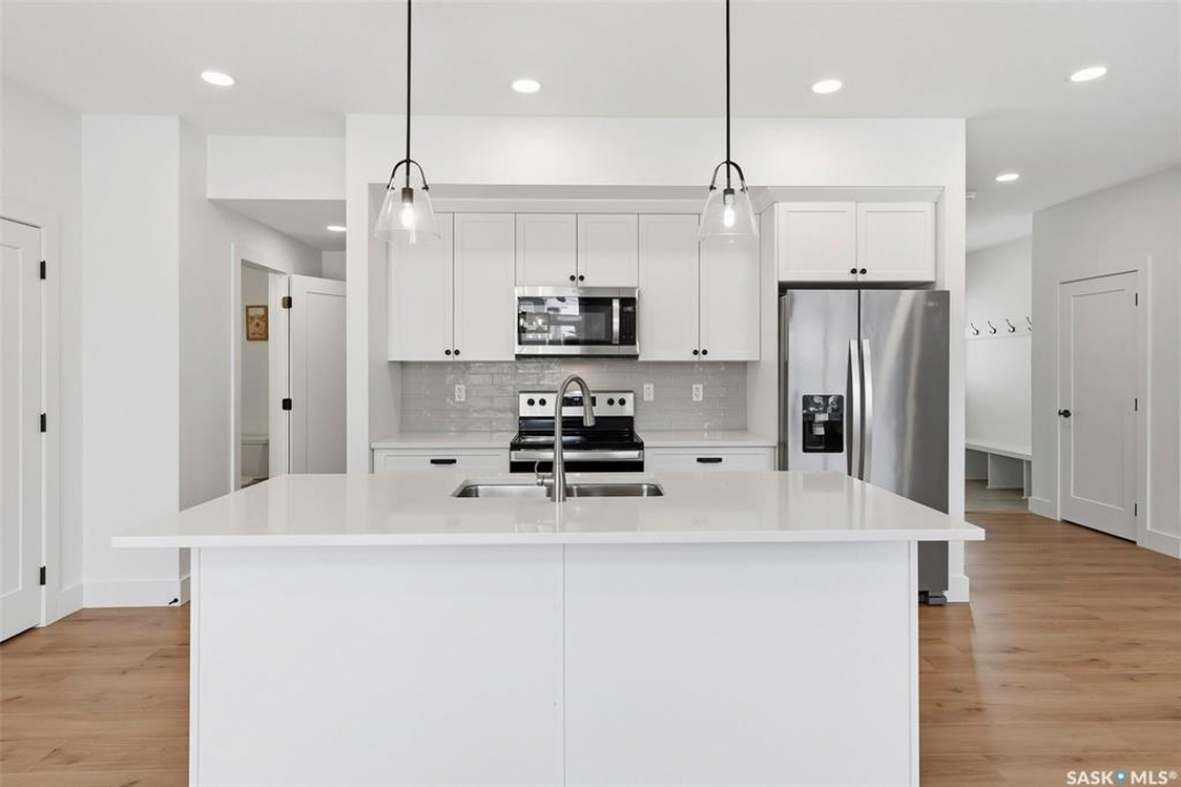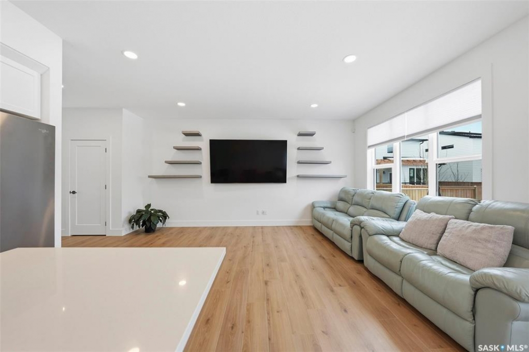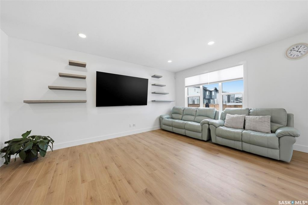 Welcome to 307 Keith Union, quality-built home by Arbutus Properties, offering well-planned layout and West Coast–inspired design. The home features thoughtful selection of custom finishes, including designer lighting package, Scandinavian-inspired hardware, premium tile, wide-plank laminate flooring, quartz countertop, and coordinated backsplash details throughout. The main floor offers inviting front entry with closet and custom built-in bench, leading into open-concept living space with 9-foot ceilings and clearly defined areas. Oversized triple-pane windows bring in abundant natural light and overlook the west-facing backyard, providing excellent afternoon and evening sun. The kitchen is both functional and well-designed, featuring a large island, stainless steel appliance, a range hood vented directly outside, and well-sized pantry for additional storage. Upstairs, you'll find three comfortable bedrooms, bright and spacious bonus room, tiled laundry area, and a main bathroom. The primary bedroom includes walk-in closet and full ensuite. The professionally developed basement continues the home's consistent finish, offering a large family room with laminate floor, an additional bedroom, a 4-piece bathroom with tiled flooring and tile-surround tub, and ample storage space. Both the main floor and basement feature 9-foot ceilings, enhancing the overall sense of space. The extra-large backyard is fully landscaped and fenced, complete with deck & brick patio, children's sand play area, storage shed, and underground sprinkler system. Additional features include insulated double garage and extra-long driveway accommodating up to five vehicles. Further upgrades include high-quality window blinds, central AC, HRV system, and durable James Hardie composite siding. Ideally located within walking distance to two schools, multiple parks, and shopping at Meadows Market, this home offers a strong combination of quality construction, practical design, and convenient location.