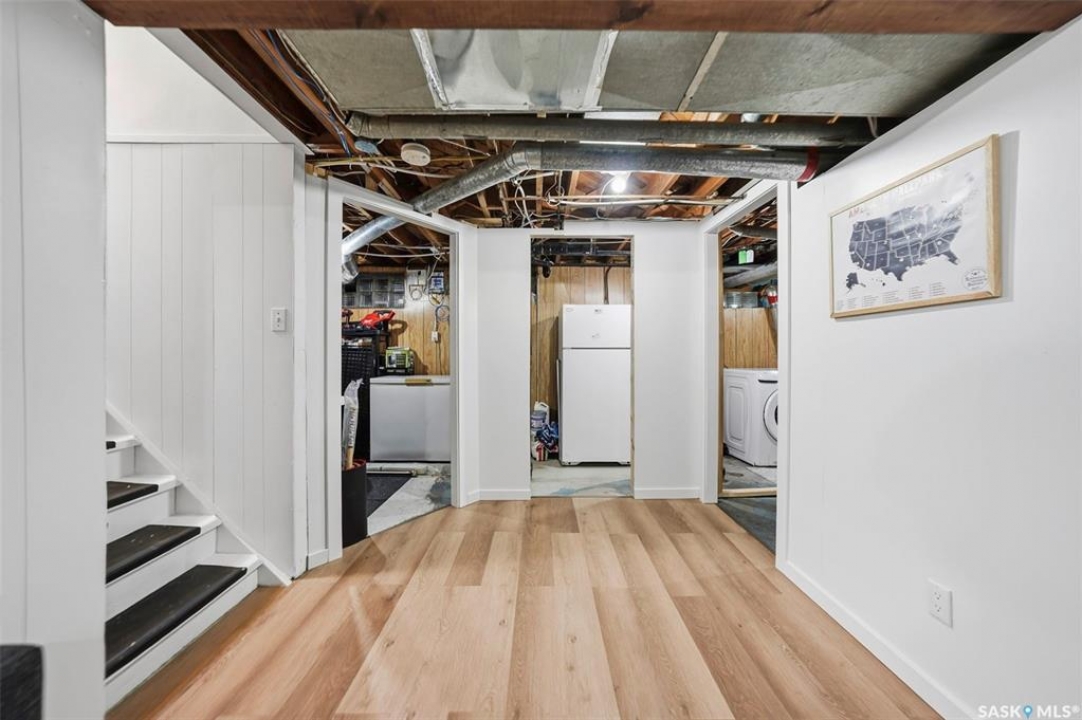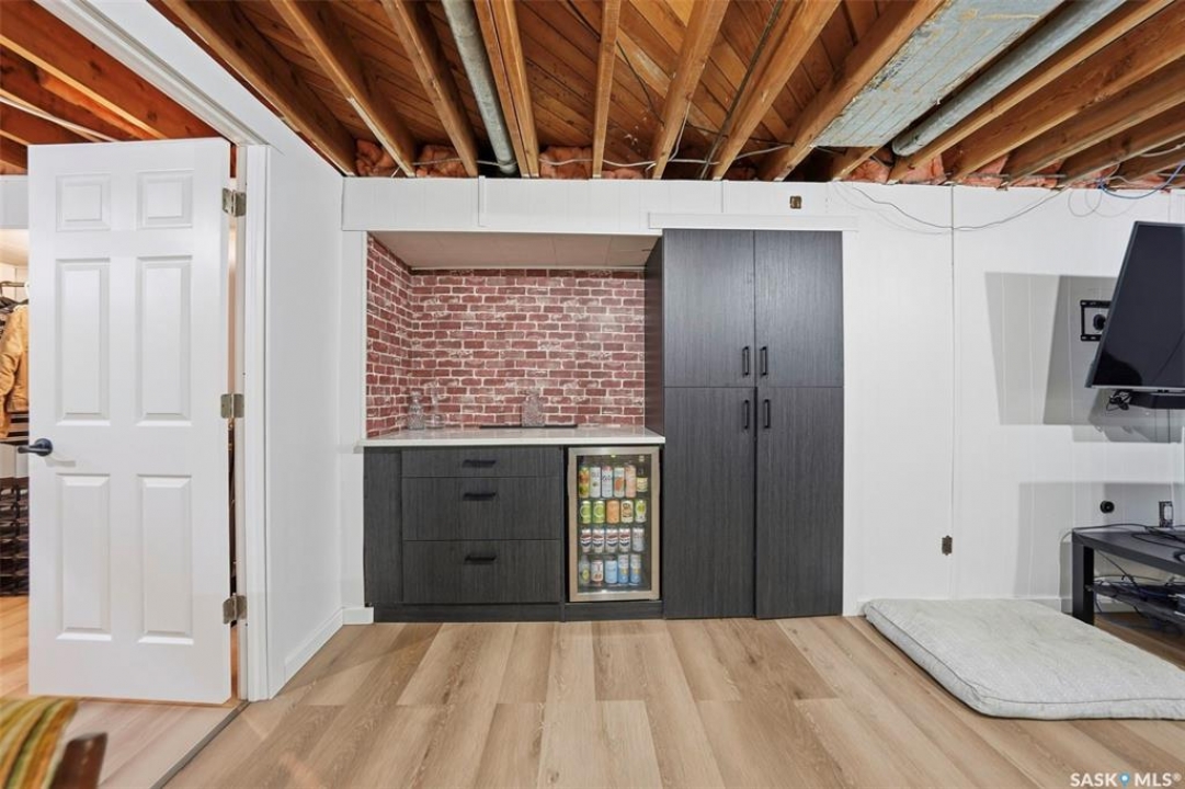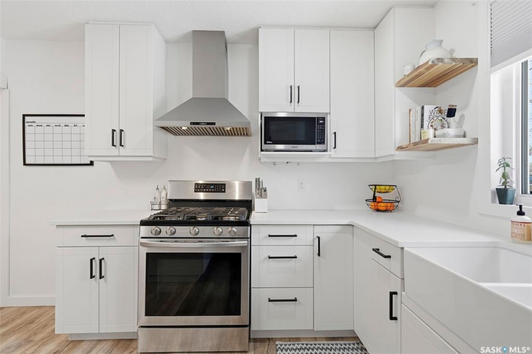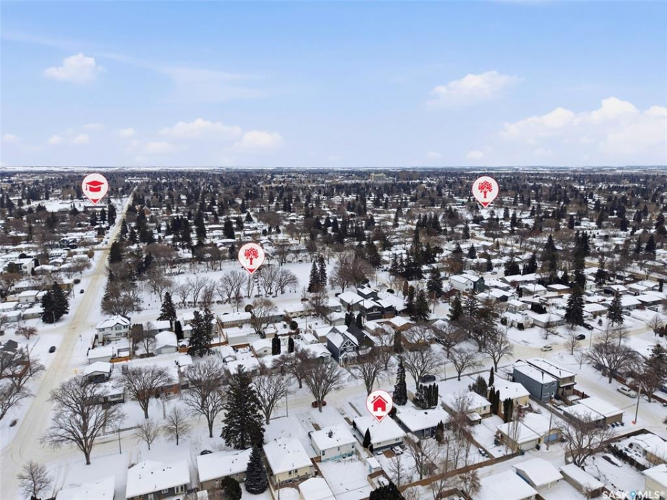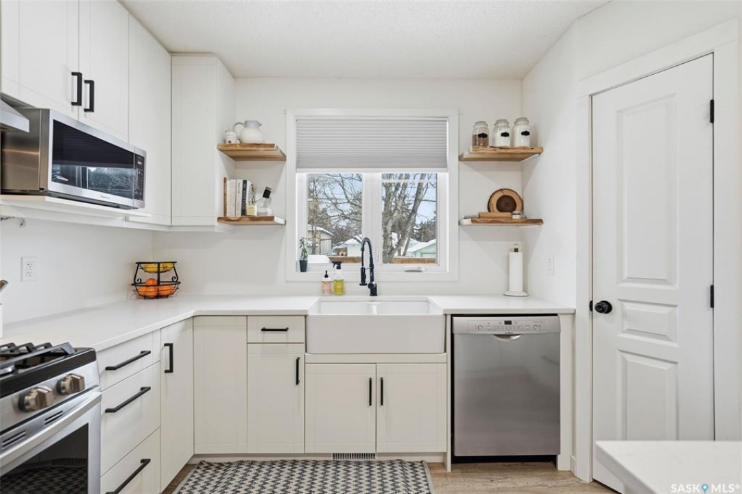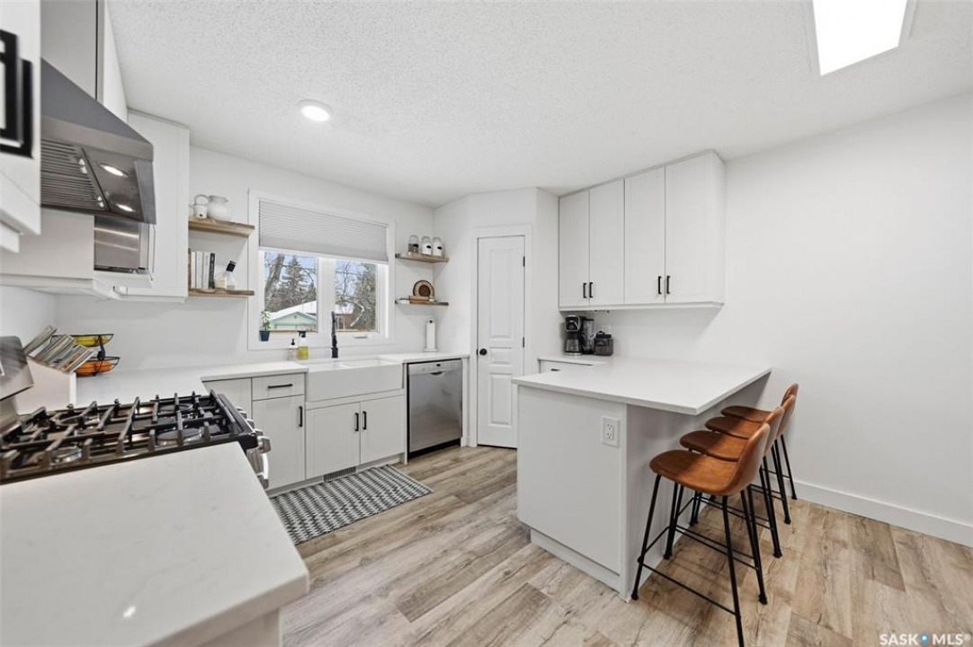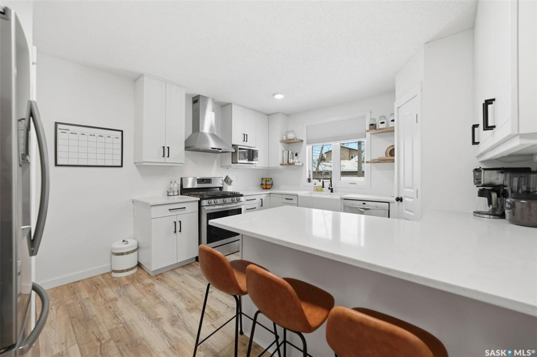 Welcome to 1622 Cairns Avenue, a beautifully renovated 960 sq. ft. bungalow located in the desirable Haultain neighbourhood. Step inside to a bright and spacious living room highlighted by large windows that fill the home with natural light. The chef's kitchen features stainless steel appliances, custom cabinetry, quartz countertops, a walk-in pantry, under-cabinet LED lighting, and a custom bar area—perfect for both everyday living and entertaining. The main floor offers two bedrooms and an updated 4-piece bathroom. The generous primary bedroom includes a walk-in closet and is roughed-in for a future ensuite, providing excellent flexibility for added value. Downstairs, you'll find a large family room with a dry bar, an additional bedroom, and a spacious laundry and utility room. The basement is also roughed-in for a future bathroom. Recent upgrades include a new back deck, rubber back patio and walkway, and new air conditioning. Outside, enjoy a private backyard with mature trees and a beautiful garden space. Conveniently located close to schools and all major amenities, this move-in-ready bungalow is one you won't want to miss.