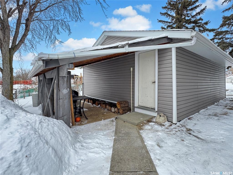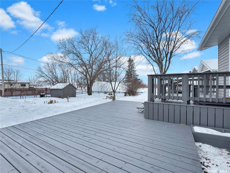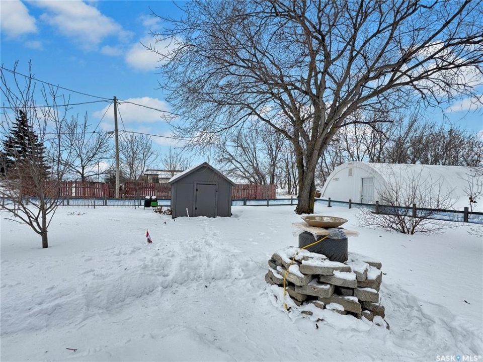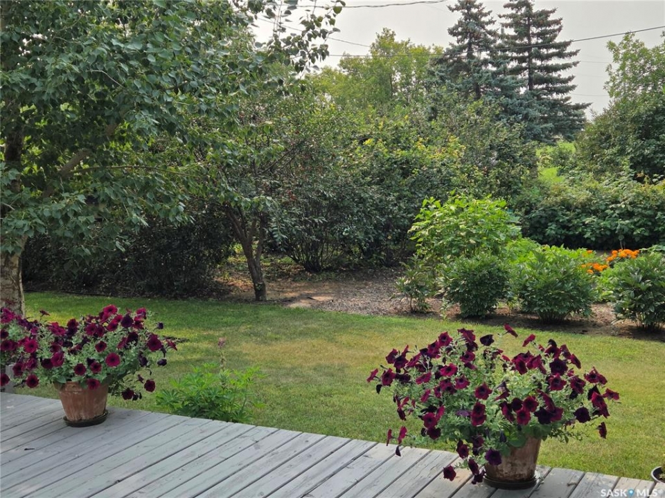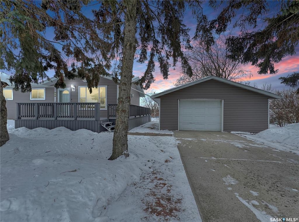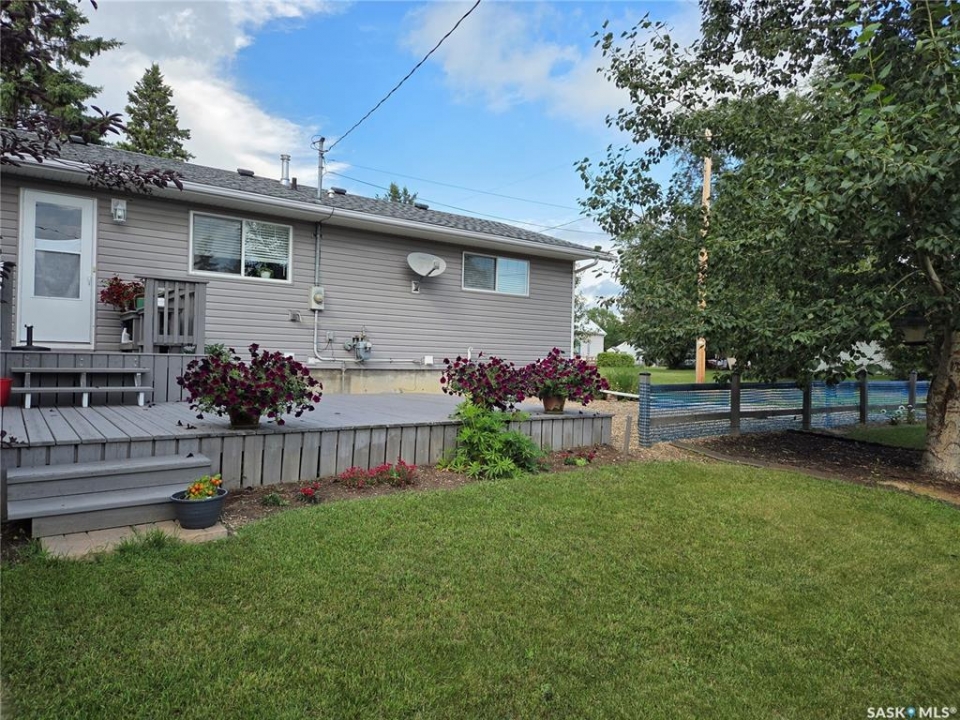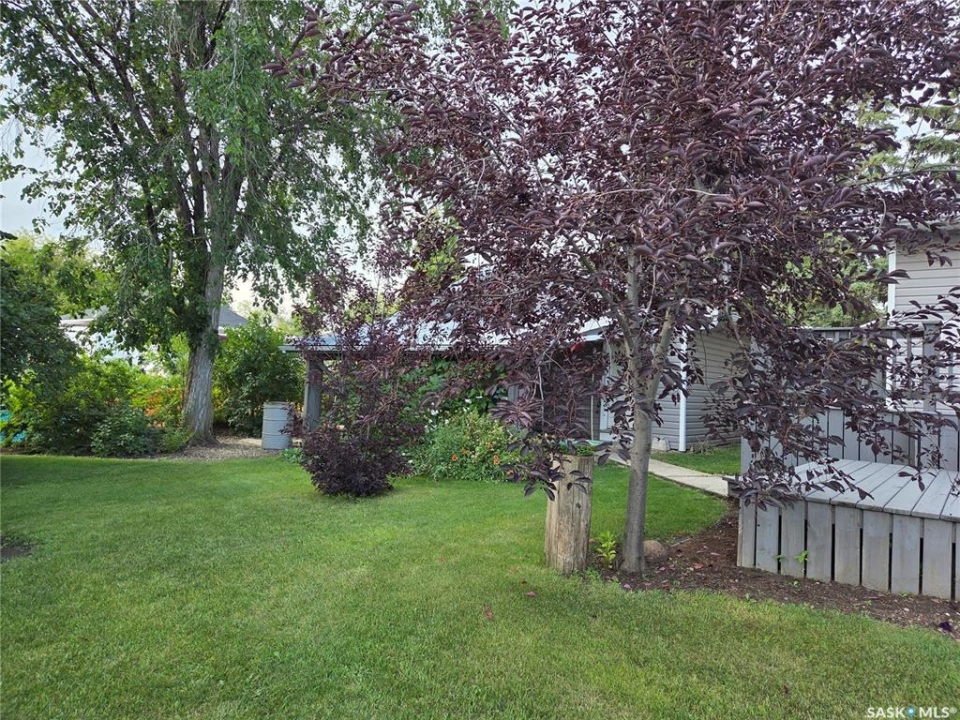 Welcome to this move-in ready Maymont home where pride of ownership shines throughout. This well-cared-for property sits on a landscaped 100 ft x 125 ft lot surrounded by mature trees and a private orchard—your own peaceful oasis. The yard offers a garden area, shed, wrap-around deck, firepit, sheltered BBQ area, double garage, and RV parking, creating an ideal space for relaxing and entertaining. The home features 3 bedrooms upstairs, 1 bedroom downstairs, and 2 bathrooms. It shows exceptionally well and is truly turnkey. Numerous updates were completed between 2014–2019, including shingles, siding, windows, flooring, kitchen, bathrooms, appliances, and more. Recent upgrades (2023-2025) include: furnace, washer and dryer, new window well, natural gas fireplace, Culligan water softener, Culligan reverse osmosis water system, and solar blinds in the living room. As an added bonus, the sellers will include some garden equipment, including the lawnmower; garden tools. The private orchard is a true standout, offering apples, Saskatoon berries, plums, cherries, chokecherries, raspberries, strawberries, and rhubarb—perfect for those who love gardening and outdoor living. Low property taxes make this home even more appealing. Maymont offers exceptional affordability with free summer water (hydrant) for the yard and unmetered potable water, along with peaceful small-town living just outside the city. The community features a K–12 school. Contact your REALTOR � today to book your private showing!