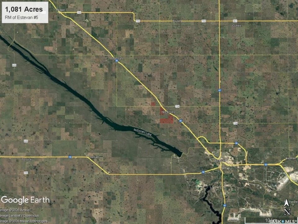 For Sale by Tender – 1,080.89 Acres of High-Quality Farmland in southern Saskatchewan located northwest of the city of Estevan near Hitchcock, SK in the RM of Estevan #5. The land features excellent access, including Highway #39 frontage, with the balance easily accessible just south of the highway. Farmed in three half sections and one single quarter all in close proximity. SAMA reports 1,006 cultivated acres* and a soil final rating weighted average of 51.24*. The soil type is predominantly Weyburn Loam with some Estevan Clay Loam. Sask Crop Insurance classifications include two “H” quarters, three “J” quarters, and two “K” quarters. The successful purchaser to begin farming the land in 2026. OFFER TENDERING PROCESS: Offers to purchase to be submitted/tendered in writing by 12:00PM on Thursday March 5, 2026 All offers to purchase will be presented at the same time to the Sellers for their consideration after 12:00PM on Thursday March 5, 2026. The Seller asks offers to be left open for five days. Offers to purchase will be considered on the entire parcel as well as parts thereof. This parcel could sell for above, at or below the asking price. Highest or any offer not necessarily accepted. ASKING PRICE BREAKDOWN: $4,100,000.00; $3,793.17/Titled Acre; $4,075/SAMA Cultivated Acre*; 2.13 X Assessed Value*. The Seller is in the process of removing a parcel tie from the NW 22-3-9 W2 Ext 1 as only the 127.16 acre parcel south of the highway is included in the sale, closing for this parcel will be after the parcel tie is removed. *SAMA Details are an approximation only as the NW 22-3-9 W2 assessment and cultivated acres have been approximated to remove the parcel north of the highway that is not included. Buyer to do their own due diligence. Property boundary outlines are an approximation.