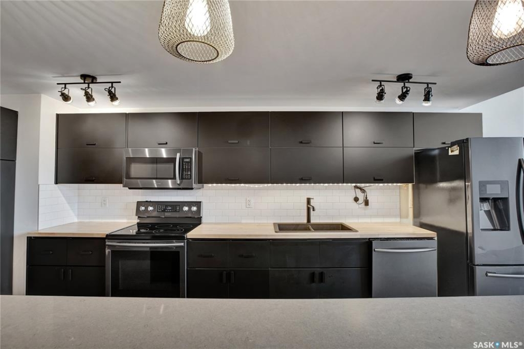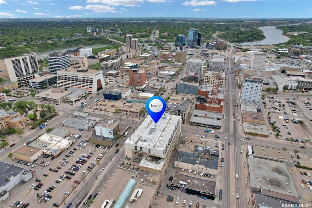 Welcome to #223–120 23rd Street East, located in the heart of downtown Saskatoon at the highly sought-after 2nd Avenue Lofts. This exceptional residence offers a truly distinctive urban living experience, blending industrial character with modern comfort. Polished concrete floors, exposed concrete beams, and an impressive 14-foot-tall by 9.5-foot-wide window create a striking sense of openness while flooding the space with natural light. The sleek matte-black kitchen is both stylish and functional, featuring an extensive bank of cabinetry, stainless steel appliances, and a substantial quartz island—ideal for both everyday living and entertaining. When you're not hosting at home, you'll appreciate being just steps from some of Saskatoon's best restaurants, cafés, Remai Modern Art Gallery, The Persephone Theatre and The Meewasin Valley River Trails. The spacious entry area provides an ideal work-from-home setup, while an additional constructed bedroom offers flexibility as a guest room, private office, or treatment space, complete with a conveniently located powder room. Upstairs, the generous primary bedroom overlooks the main living area, enhancing the loft-style ambiance. The four-piece bathroom has been tastefully renovated, and the unit includes all appliances as well as in-suite laundry for everyday convenience. One parking stall is included in the secure, heated underground parkade, which also provides dedicated bike storage. Condo fees include heat, water, and electricity. Residents enjoy an impressive array of amenities, including four dedicated rooms for fitness, cardio, ping pong, and a library or meeting space, along with an on-site building manager and 24-hour video security throughout common areas and exterior spaces. The rooftop patio, accessible from the third floor, is an ideal setting to barbecue, relax, and enjoy city views. Pets are permitted for owner-occupants with board approval, making this an exciting opportunity for downtown living.