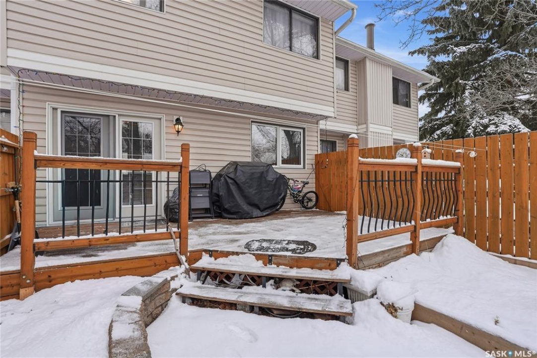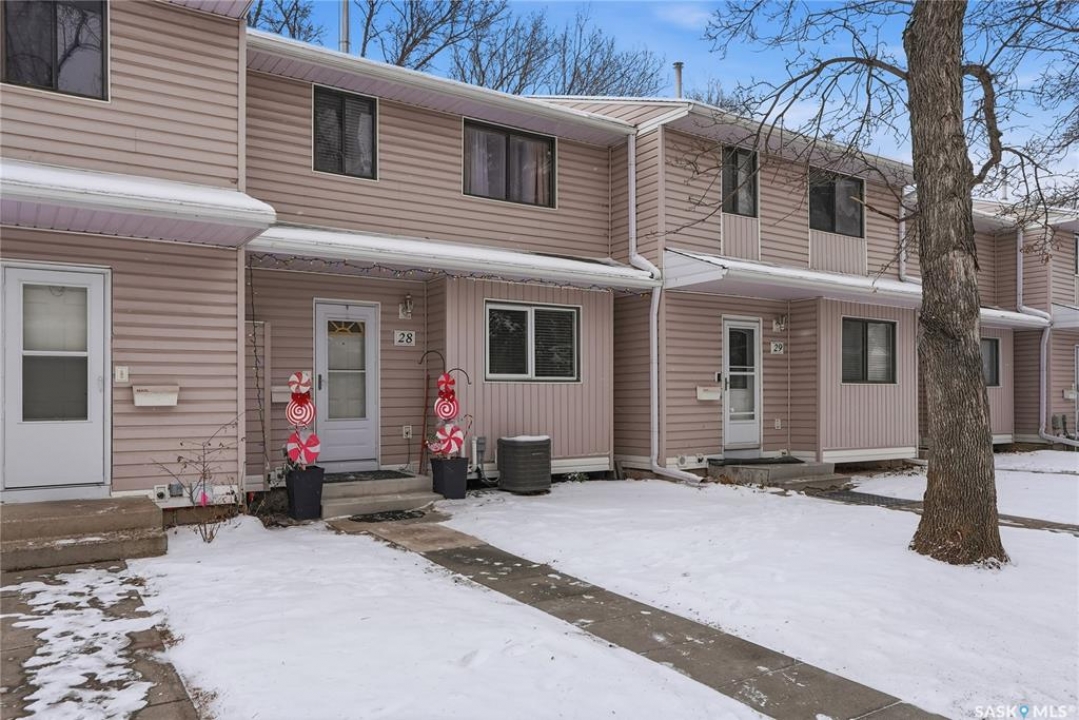 Welcome to 28-330 Haight Crescent. This 1017 sq ft townhouse-style condominium is situated on a tranquil crescent, offering a highly private yard. The main level showcases beautiful wood flooring and complementary paint selections. The galley-style kitchen provides ample counter space and is equipped with all essential appliances. A charming, well-lit dining nook adjacent to the kitchen, along with a two-piece bathroom, completes this main floor. French doors provide access to your semi-private yard, which features a deck and generous green space for outdoor enjoyment. The upper level has three bedrooms and a full bathroom. The basement level is fully developed with a comfortable family room and a laundry/utility room, offering plenty of additional storage Water heater, furnace and C/A upgraded in 2023. Upgraded windows on the main floor. Lots of Fresh pant and beautiful wood floors on main. Meticulous and move-in ready. Schedule your private viewing today.