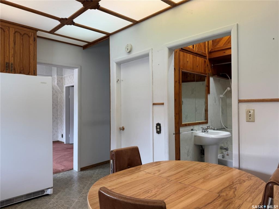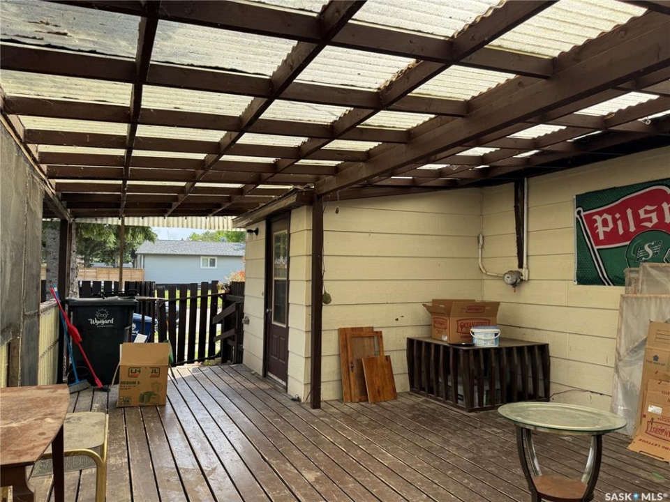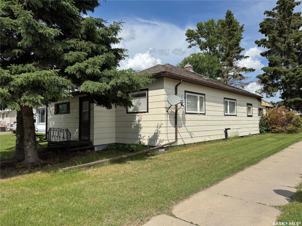 Welcome to 218 4th Street East in Wynyard—a warm and inviting 3-bedroom, 1-bath bungalow nestled in one of the town's most convenient and family-friendly locations. This charming home sits directly across from the community swimming pool and is just steps from a beautiful park, the elementary school, and downtown amenities. Inside, you'll find a spacious and sun-filled living room with newer windows and soaring 9-foot ceilings, creating a bright and airy atmosphere. The practical layout includes three bedrooms, one of which features in-room laundry, making everyday living a breeze. A covered patio at the back overlooks a fully fenced yard with a lovely garden space, perfect for relaxing or entertaining. With a partial basement ideal for storage and a setting that blends small-town serenity with unbeatable walkability, this home offers exceptional value and timeless appeal.