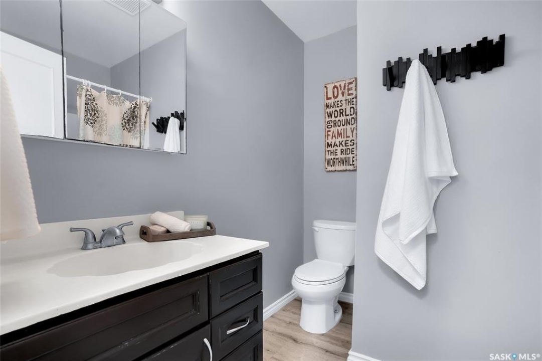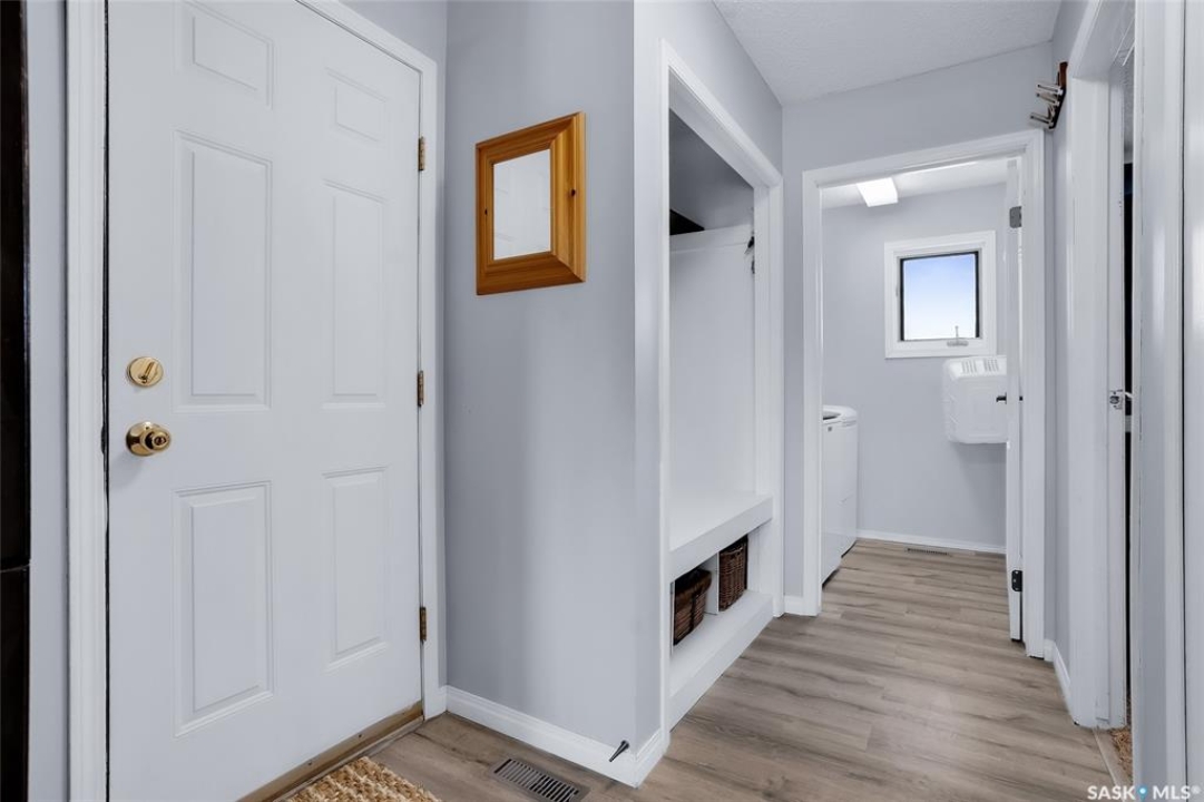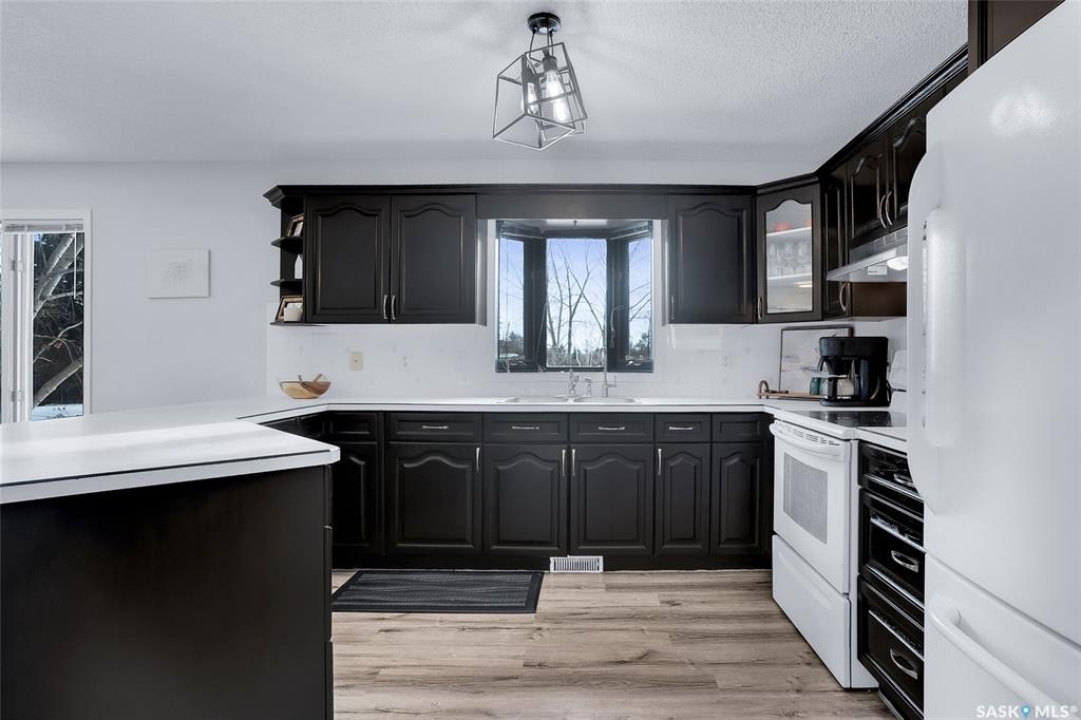 Tucked away in the RM of Rosthern on 1.58 acres, this private country property is surrounded by mature trees, wide open prairie views, and the kind of peaceful setting families love. It offers the perfect amount of space to enjoy acreage living without the heavy maintenance, with plenty of room for toys, outdoor fun, and summer days by the above ground pool. The home was built in 1996 and has seen some updates including newer paint and luxury vinyl plank flooring through the main living area. Upstairs you'll find three bedrooms, including a primary bedroom with a 3 piece ensuite, along with a full 4 piece main bath and convenient main floor laundry. The basement includes two additional bedrooms, one currently used as storage and not fully finished, with no egress windows. A 26x28 insulated detached garage adds great extra space, and the property is equipped with natural gas heat, central air conditioning, central vac, well water with an owned softener, municipal water available at the road, and a septic mound system. A quiet, comfortable acreage with privacy, nature, and those beautiful prairie country views.