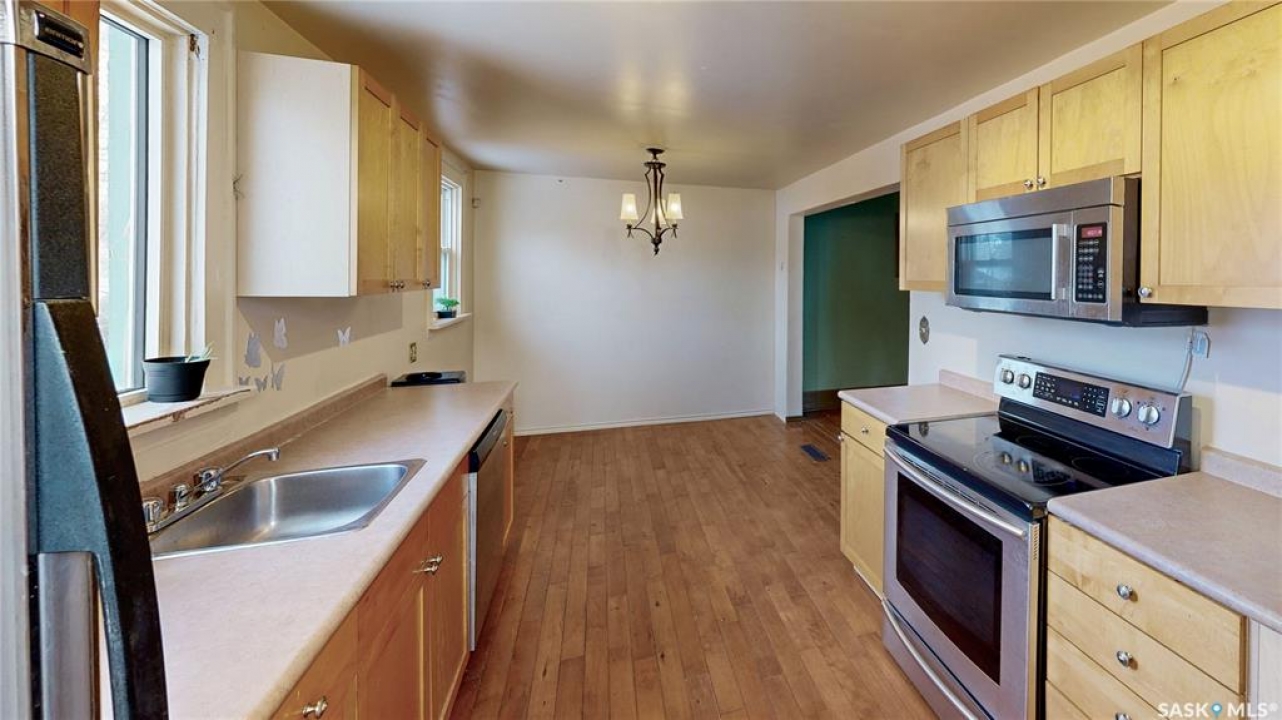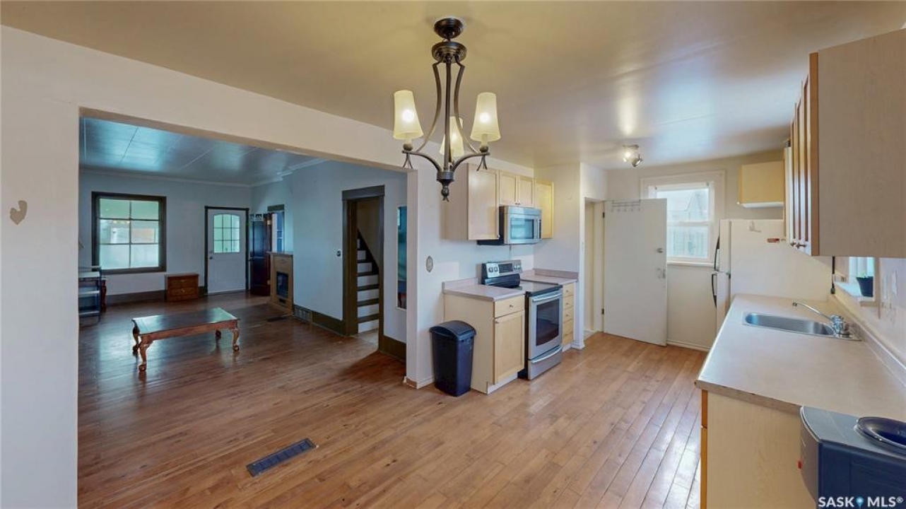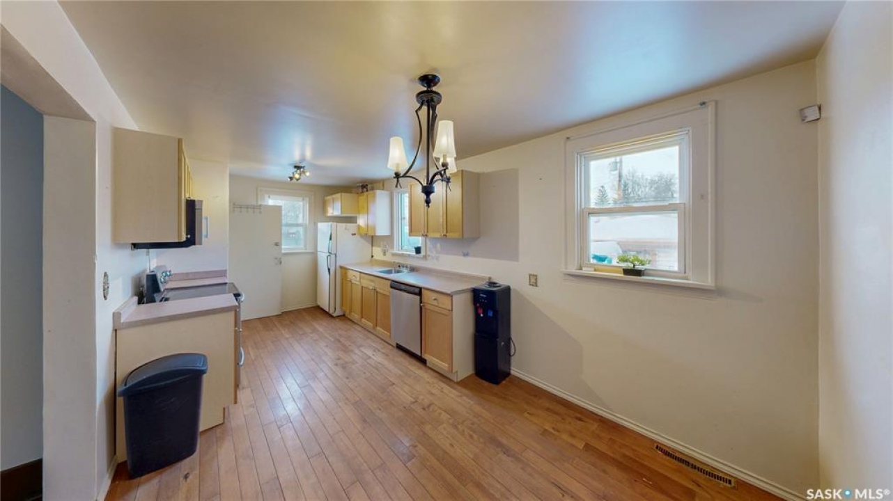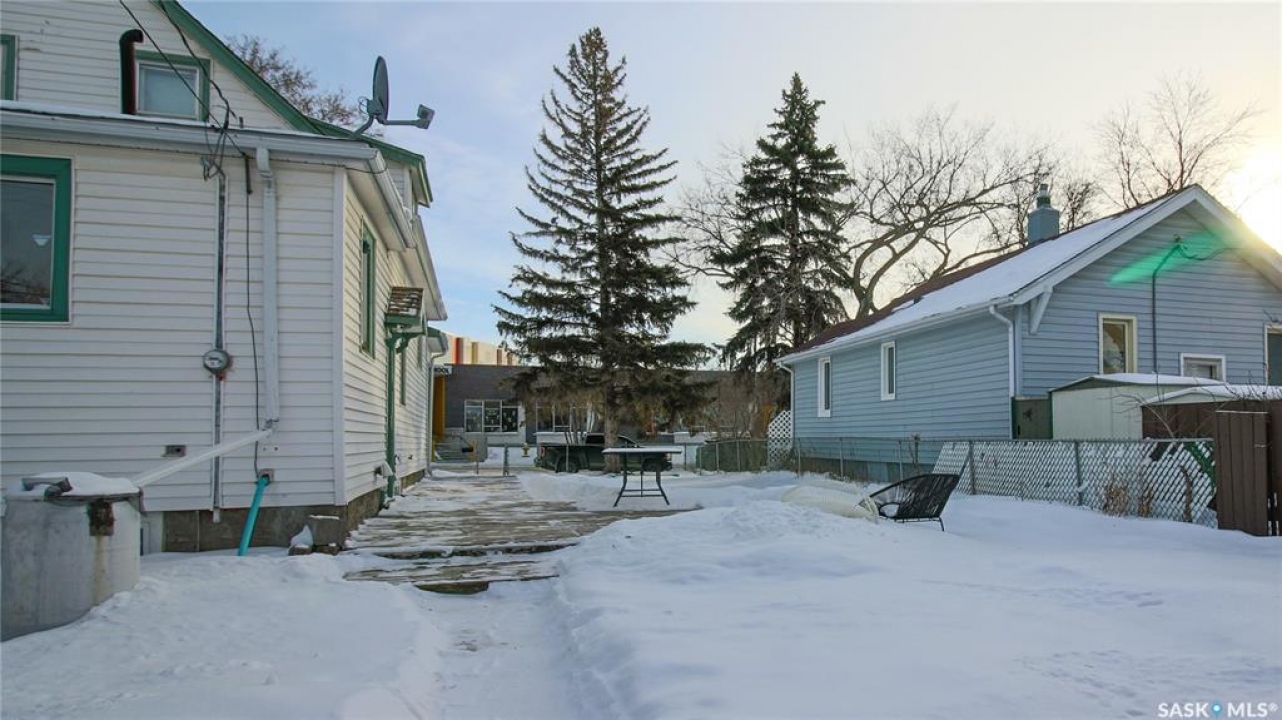 Welcome to 1138 Princess Street! This 4 bedroom, 2 bathroom, 920 sqft, home was built in 1929 and sits on a HUGE 6257 sqft DOUBLE LOT. It is conveniently located right across the street from Seven Stones Community School and Seven Stones Child Care! The property is fully fenced and the side of the home features a large deck. A single detached garage, measuring approximately 14 x 24' is located behind the home. You enter through the closed porch which provides a wind break and has ample space for storage of bikes or other outdoor gear. The living room is quite spacious with wood flooring and provides a comfortable, versatile gathering area. Just off the living room is the first bedroom that would also make an excellent office or flex space. Next is the main 4 piece bathroom which features a jet tub and linen storage. The kitchen has ample counter space and two bright windows looking into the yard. The fridge, stove, dishwasher and microwave hood fan are all included! Adjoining the kitchen is a dining area that would comfortably accommodate a good-sized table and chairs, ideal for family meals. Upstairs, the second floor features two cozy bedrooms one of which has a nifty closet nook. Downstairs the first stop is the laundry and utility room which has plenty of storage space! The owned furnace, washer and dryer here are all included! Next is the basement bathroom, and finishing off the home is a huge bedroom with space for a desk or sitting area and a future walk in closet! With its double lot, functional layout, and unbeatable location across from schools and childcare, this home offers space, flexibility, and long-term potential. Contact us today to book your private showing or to learn more.