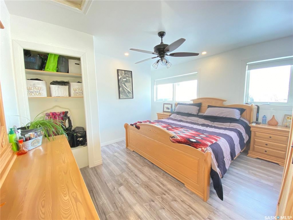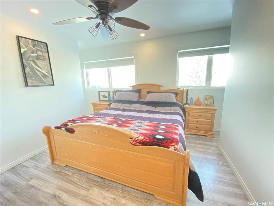 Step into the this home and enjoy the open concept kitchen, dining and living room space. Feel comfort in the east facing living room while relaxing beside the warmth of the new wood burning stove. The main bedroom offers a large ensuite with a dual sink vanity, a jetted jacuzzi tub and heated tile floors. The master suite is completed by a large walk in closet. This raised bungalow also offers a second large room on this floor that could be used as a second bedroom or a large office or crafting space as the home is designed with 3 more bedrooms and 2 bathrooms downstairs. The lower level has a seperate entrance and could easily be converted into a suite - with town approval - if that suits your needs. The property sits on a 70 foot wide lot and the 2 car garage has one door access from the front and the second door access is from the alley. There is also room to park and RV! With additional storage under the deck as well as a storage shed this home is ready to call home. Call today to book your own private tour.
