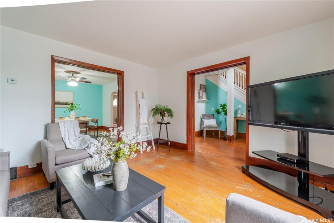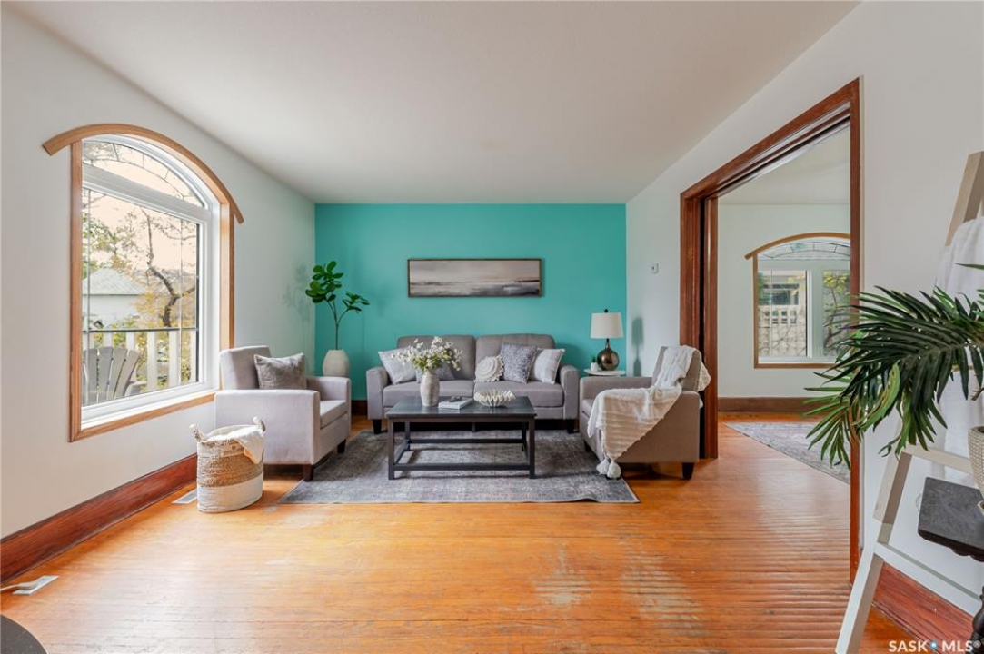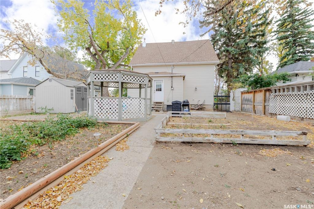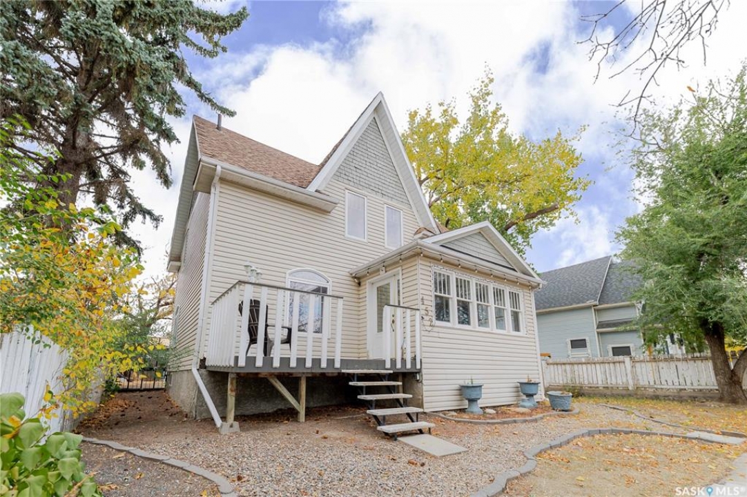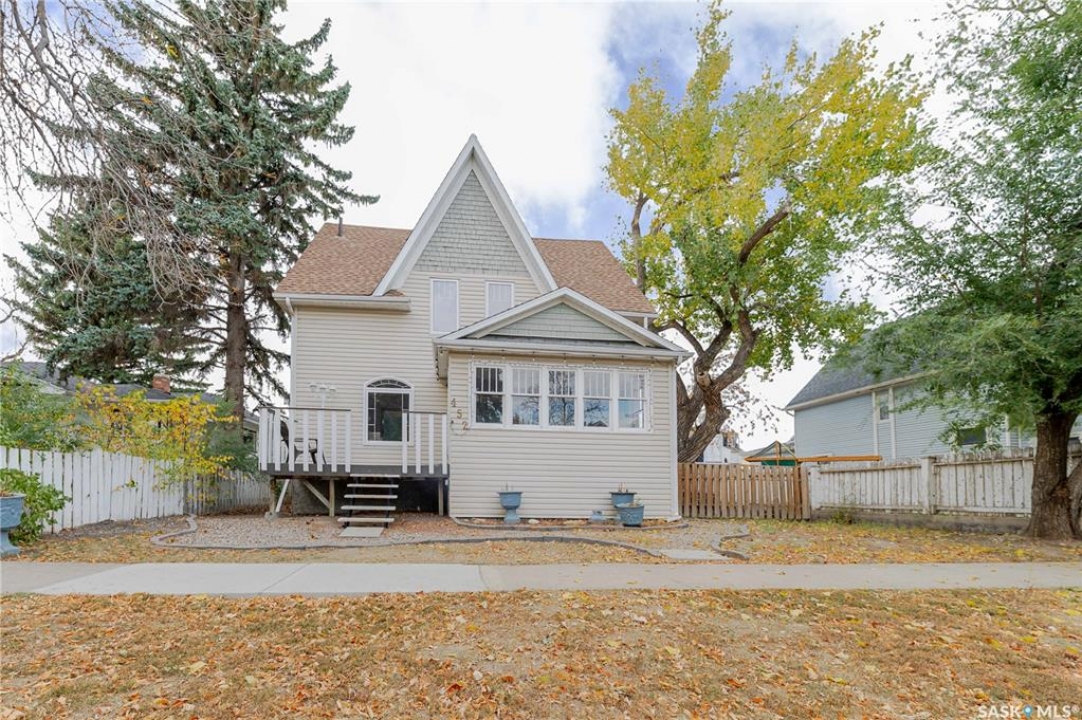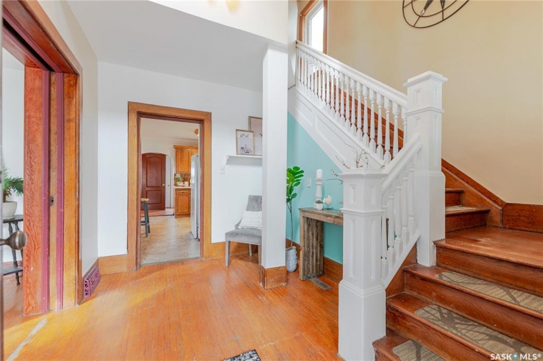This character home is nestled on a quiet, tree-lined street near schools and downtown Moose Jaw, offering a timeless blend of charm and practical living. Throughout the home, original hardwood floors, a striking Victorian staircase, and vaulted ceilings create a warm and inviting atmosphere. The bright living and dining rooms are enhanced by large picture windows, bringing in ample natural light. The kitchen features generous counter space with a convenient breakfast bar, making it ideal for casual meals and entertaining. Additional main-floor highlights include a convenient laundry area, a 2-piece powder room, and an enclosed front veranda that adds to the home's welcoming appeal. Outside, the spacious backyard is perfect for relaxation or entertaining guests. It boasts a gazebo, a fire pit, and a dedicated garden space for those who enjoy outdoor activities or gardening. Upstairs, you'll find three comfortable bedrooms, a full bathroom, and a versatile landing area that can be used as a home office or a cozy reading nook. The basement offers extra living space with a family room and another 2-piece bathroom. Completing the property is a double detached garage with alley access and plumbing roughed in for in-floor heat, providing both convenience and comfort Offering a rare combination of character and convenience, this home is ready for you to make it your own. Book your showing today!