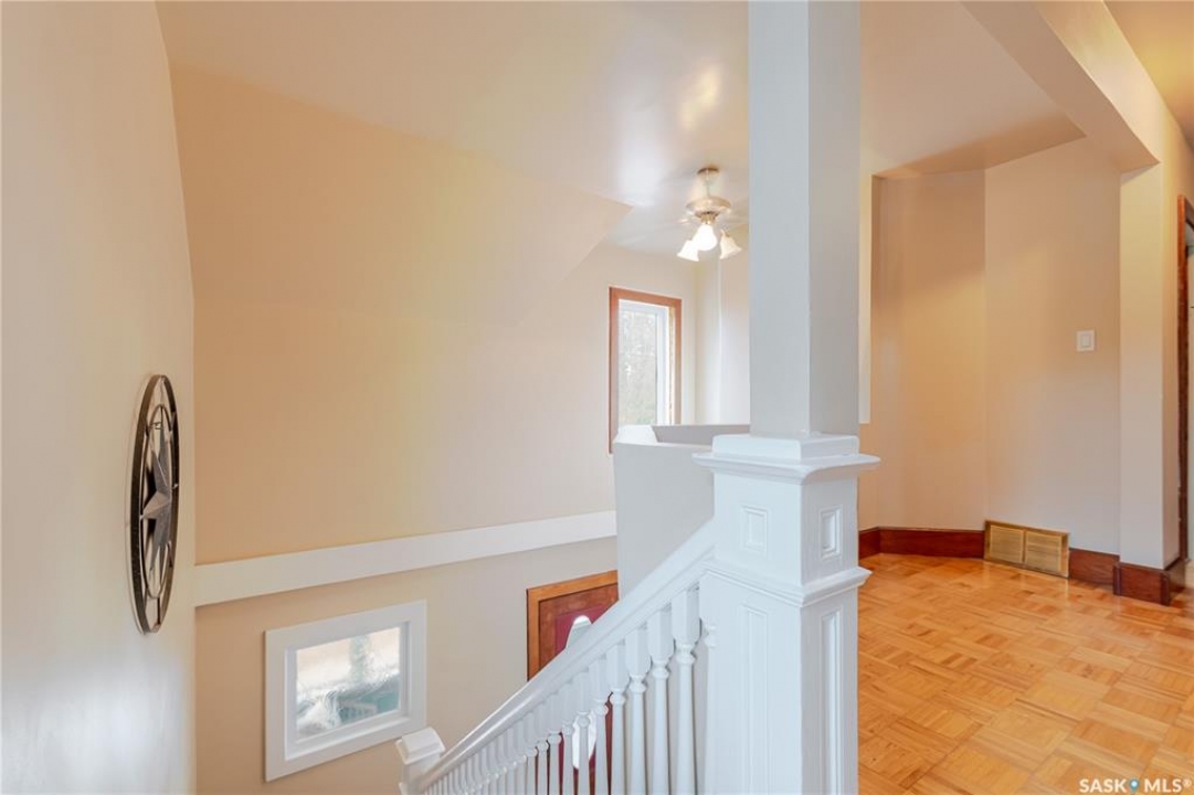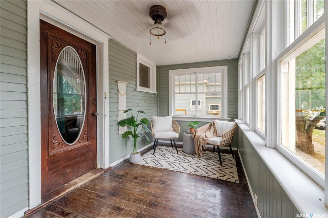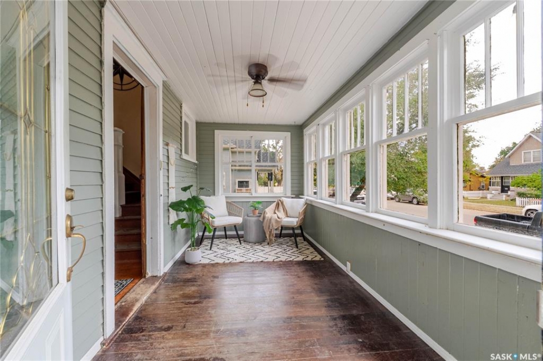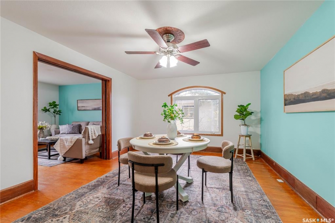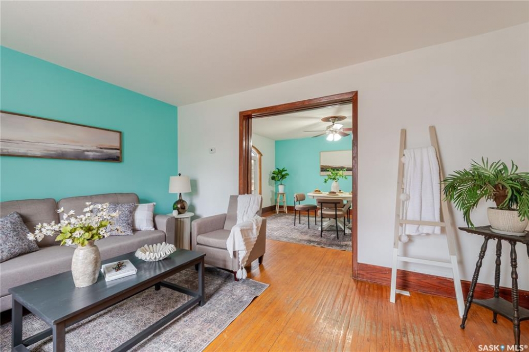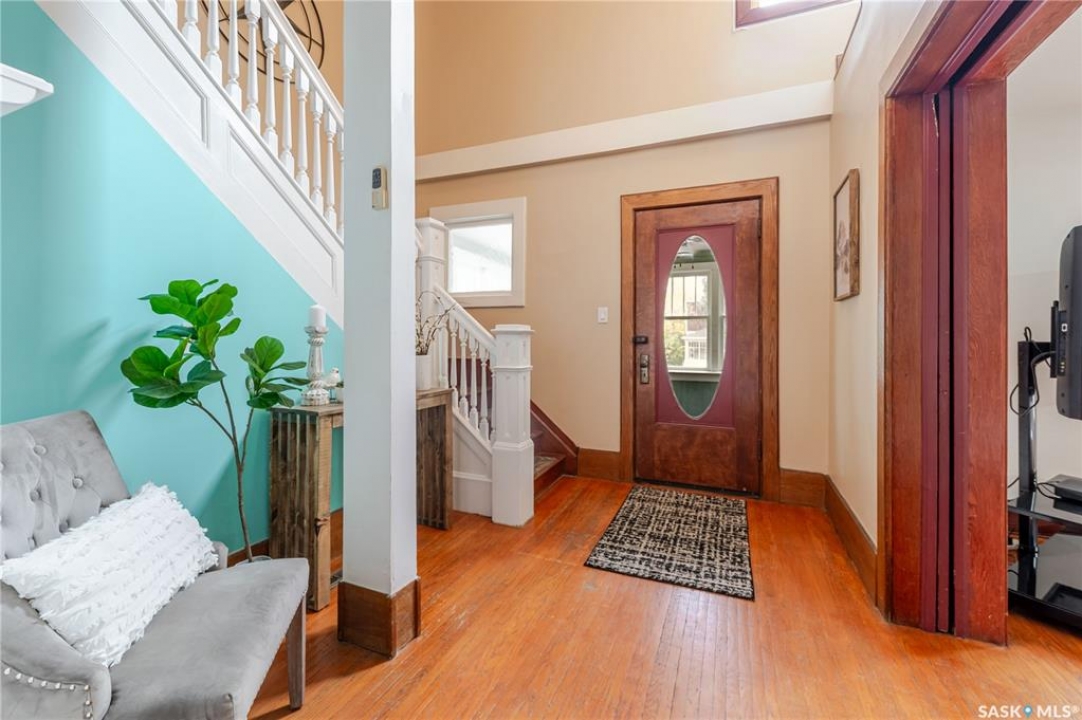 This character home is nestled on a quiet, tree-lined street near schools and downtown Moose Jaw, offering a timeless blend of charm and practical living. Throughout the home, original hardwood floors, a striking Victorian staircase, and vaulted ceilings create a warm and inviting atmosphere. The bright living and dining rooms are enhanced by large picture windows, bringing in ample natural light. The kitchen features generous counter space with a convenient breakfast bar, making it ideal for casual meals and entertaining. Additional main-floor highlights include a convenient laundry area, a 2-piece powder room, and an enclosed front veranda that adds to the home's welcoming appeal. Outside, the spacious backyard is perfect for relaxation or entertaining guests. It boasts a gazebo, a fire pit, and a dedicated garden space for those who enjoy outdoor activities or gardening. Upstairs, you'll find three comfortable bedrooms, a full bathroom, and a versatile landing area that can be used as a home office or a cozy reading nook. The basement offers extra living space with a family room and another 2-piece bathroom. Completing the property is a double detached garage with alley access and plumbing roughed in for in-floor heat, providing both convenience and comfort Offering a rare combination of character and convenience, this home is ready for you to make it your own. Book your showing today!