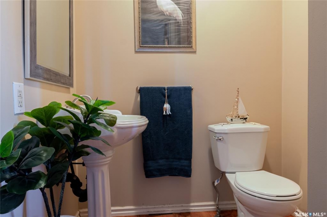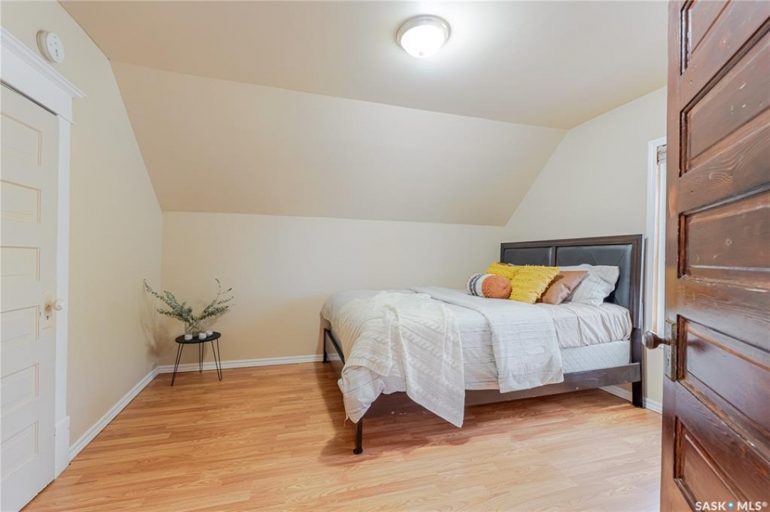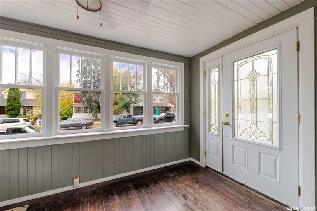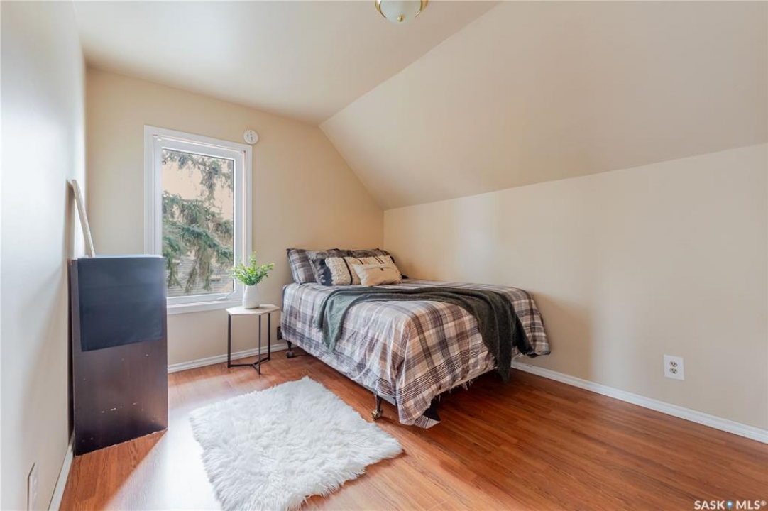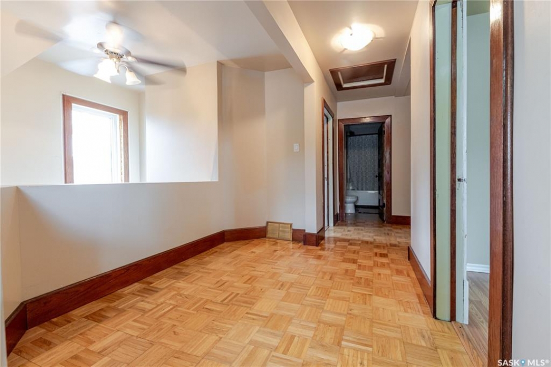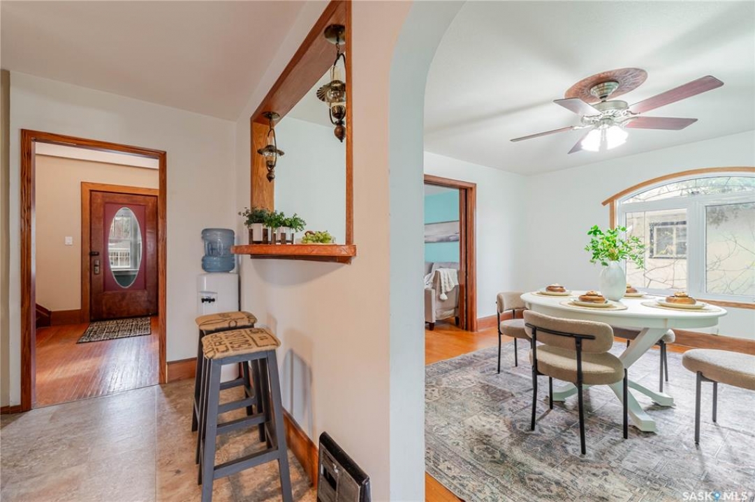 This character home is nestled on a quiet, tree-lined street near schools and downtown Moose Jaw, offering a timeless blend of charm and practical living. Throughout the home, original hardwood floors, a striking Victorian staircase, and vaulted ceilings create a warm and inviting atmosphere. The bright living and dining rooms are enhanced by large picture windows, bringing in ample natural light. The kitchen features generous counter space with a convenient breakfast bar, making it ideal for casual meals and entertaining. Additional main-floor highlights include a convenient laundry area, a 2-piece powder room, and an enclosed front veranda that adds to the home's welcoming appeal. Outside, the spacious backyard is perfect for relaxation or entertaining guests. It boasts a gazebo, a fire pit, and a dedicated garden space for those who enjoy outdoor activities or gardening. Upstairs, you'll find three comfortable bedrooms, a full bathroom, and a versatile landing area that can be used as a home office or a cozy reading nook. The basement offers extra living space with a family room and another 2-piece bathroom. Completing the property is a double detached garage with alley access and plumbing roughed in for in-floor heat, providing both convenience and comfort Offering a rare combination of character and convenience, this home is ready for you to make it your own. Book your showing today!
