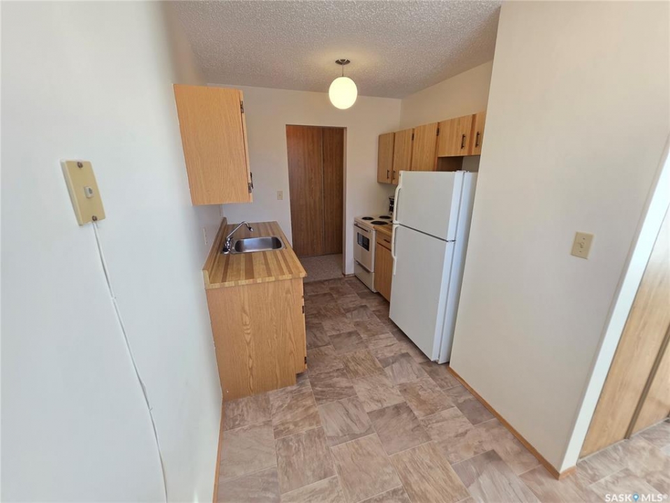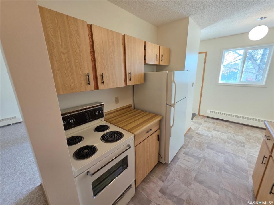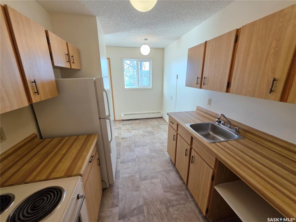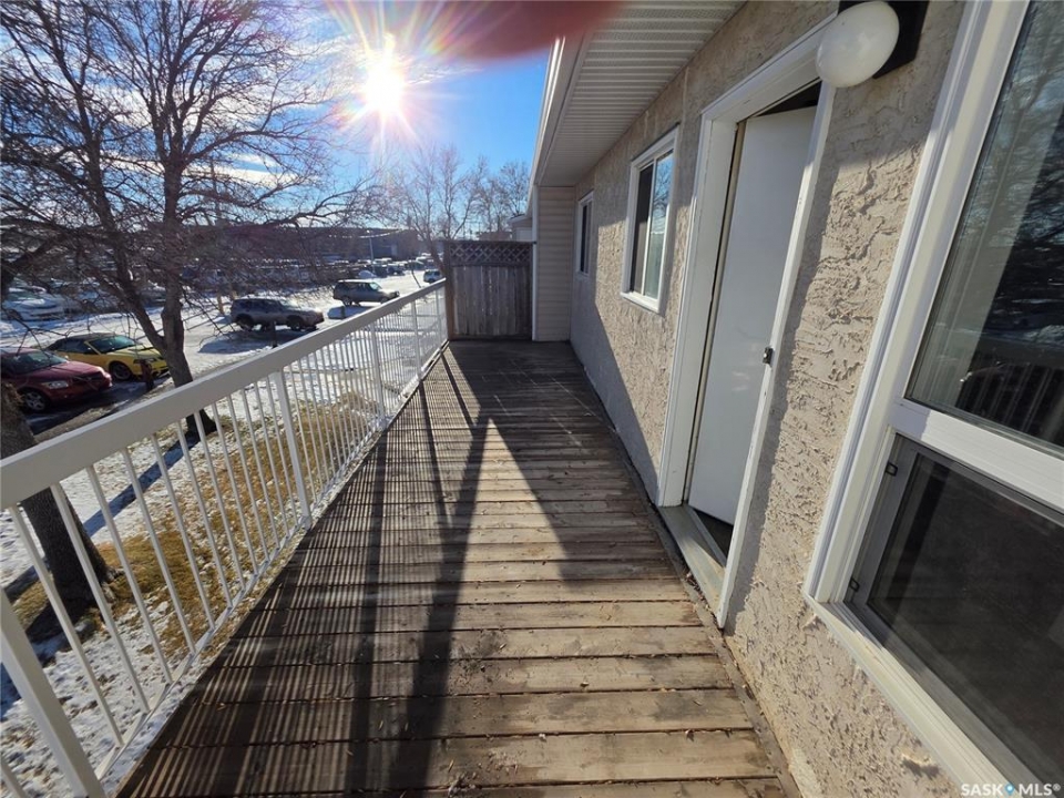 Recently renovated with fresh paint and flooring 1-bedroom, 1-bathroom upper floor end unit garden style condo with large balcony and storage room. This unit is ready to move-in and suited for a first-time buyer, downsizer, or investor. Offers a spacious bedroom and in-suite laundry. Located in Moose Jaw's N.W. neighbourhood, you will have the luxury of being close to all shopping needs; walking paths and public transport stops just a few steps from the front door! Your private parking stall is conveniently located just out front of the unit.