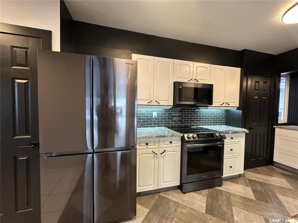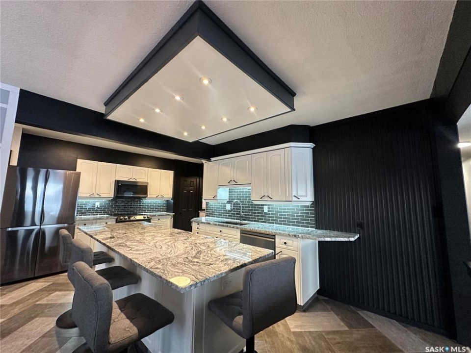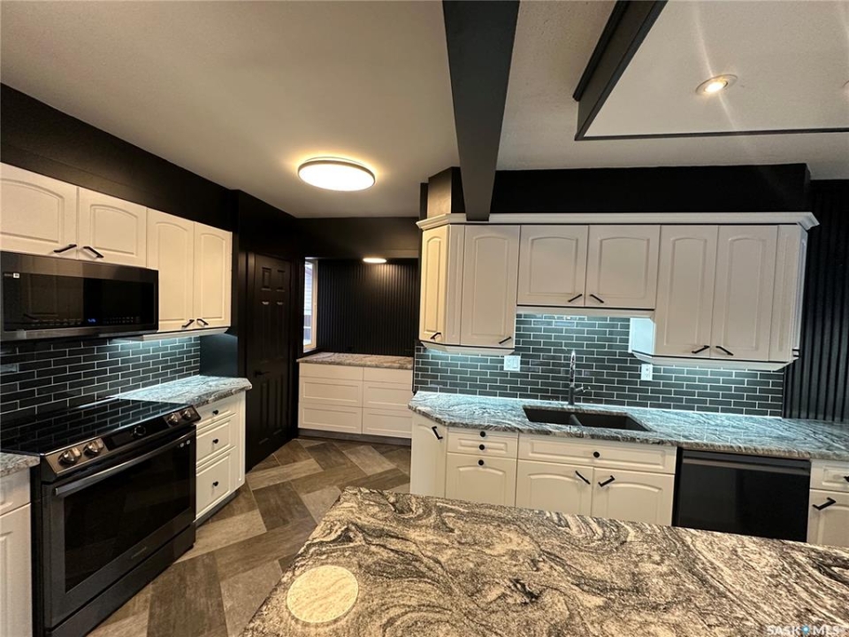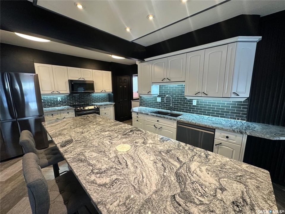 Are you searching for a new home for Christmas? Look no further! This stunning, renovated home is ready for you! Many upgrades have been made to this property, and the kitchen is definitely the centerpiece, featuring an 8-foot granite slab for the island. The open-concept design connects the kitchen, dining room, and living room, which includes a gas fireplace—perfect for entertaining family and guests. The main bathroom is equipped with a tiled walk-in shower, a soaker tub, and a Wi-Fi-enabled fan. This location is ideal for families, as it is situated directly across from Whitewood School. There are two driveways, one of which has a double concrete driveway. Originally, the home had a double attached garage, which has been converted into a single attached garage, along with an added porch and a storage room. This space could serve as a perfect home office. Whitewood is conveniently located just off Highway #1, close to Round and Crooked Lake in the Qu'Appelle Valley. Originally, the home had a double attached garage, which has been converted into a single attached garage, along with an added porch and a storage room. This space could serve as a perfect home office. Whitewood is conveniently located just off Highway #1, close to Round and Crooked Lake in the Qu'Appelle Valley.