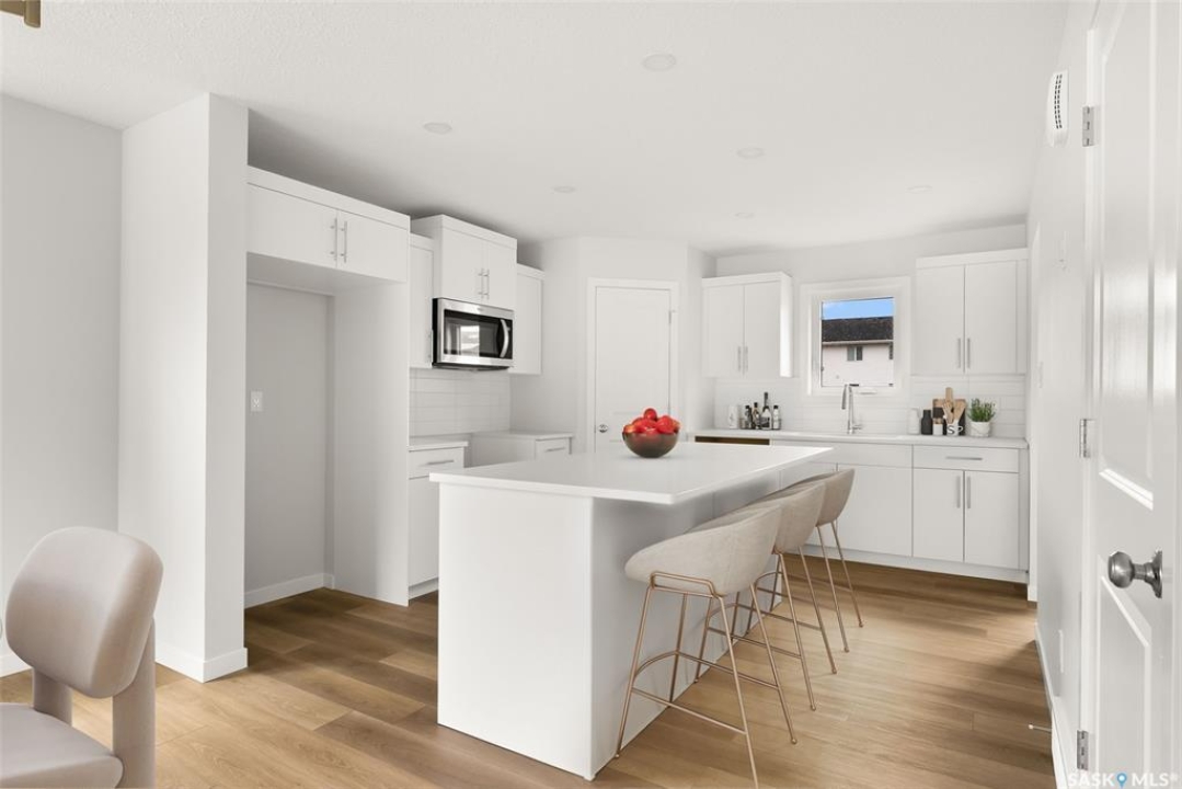 Welcome to Homes by Dream's Ava that's move in ready in Eastbrook at 5416 Nicholson Avenue. This brand new 1,443 sq. ft. single family laned home is located near shopping, restaurants, an elementary school, walking paths & parks . The open concept main floor allows for an abundance of natural light to flow through the large living room window at the front of the home, centralized dining area and the spacious L-shaped kitchen at the back of the home. The kitchen features a large centralized island that can accommodate seating and an abundance of cabinetry, quartz finished counter space, ceramic tile backsplash & soft close to the doors & drawers. There's a separate mudroom area and a 2 piece bath at the rear of the home. The 2nd floor consists of a large primary bedroom, ensuite and walk in closet. The 2nd floor also includes 2 additional bedrooms at the rear of home, a 4 piece bath and laundry. The 2nd floor bathrooms are finished with quartz countertops, ceramic tile backsplash & soft close to the doors and drawers. There's a side entry door and the basement is ready for future development. This home also includes a 2 car detached garage & a DMX foundation wrap.