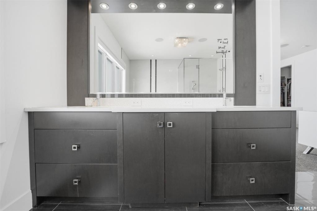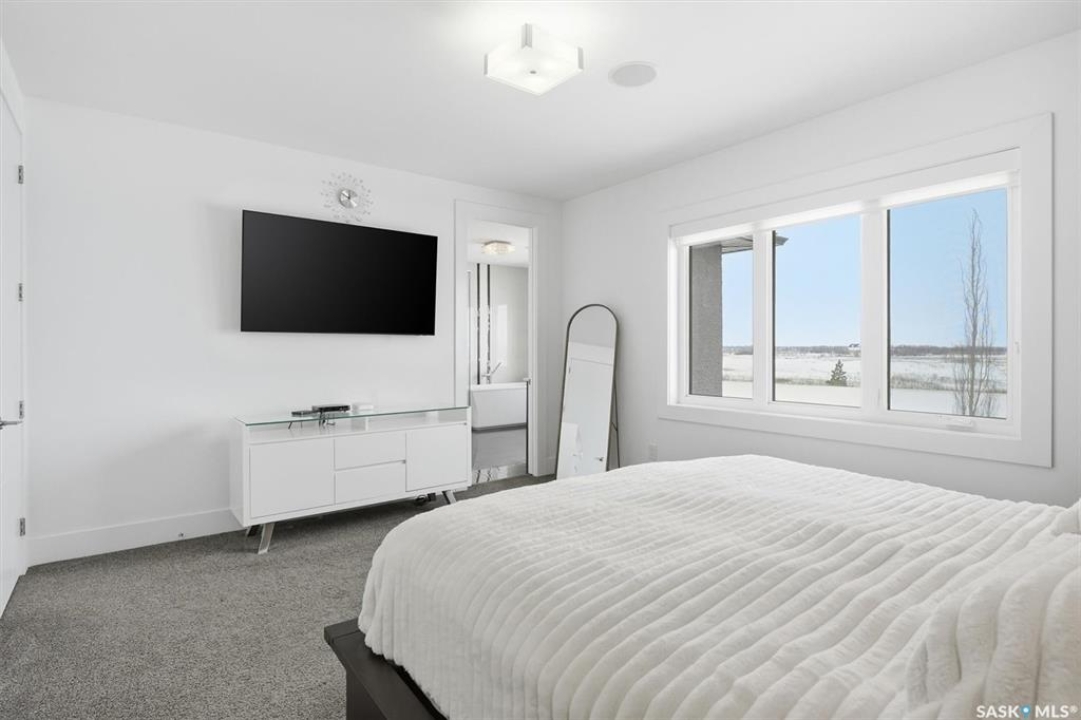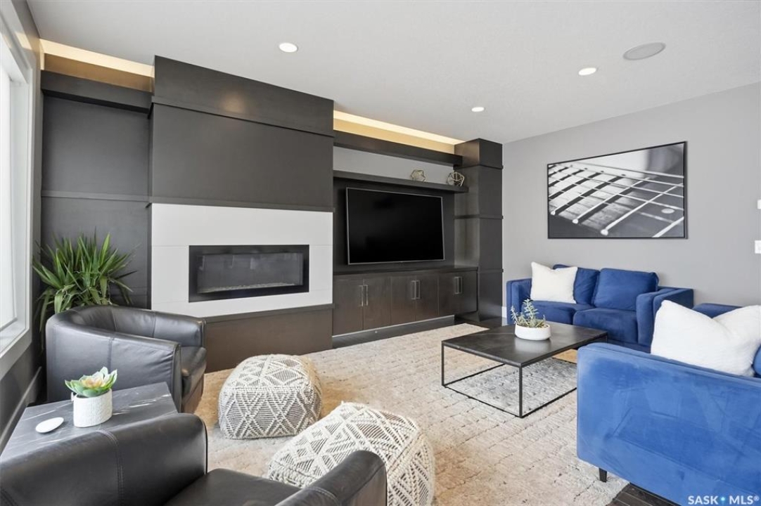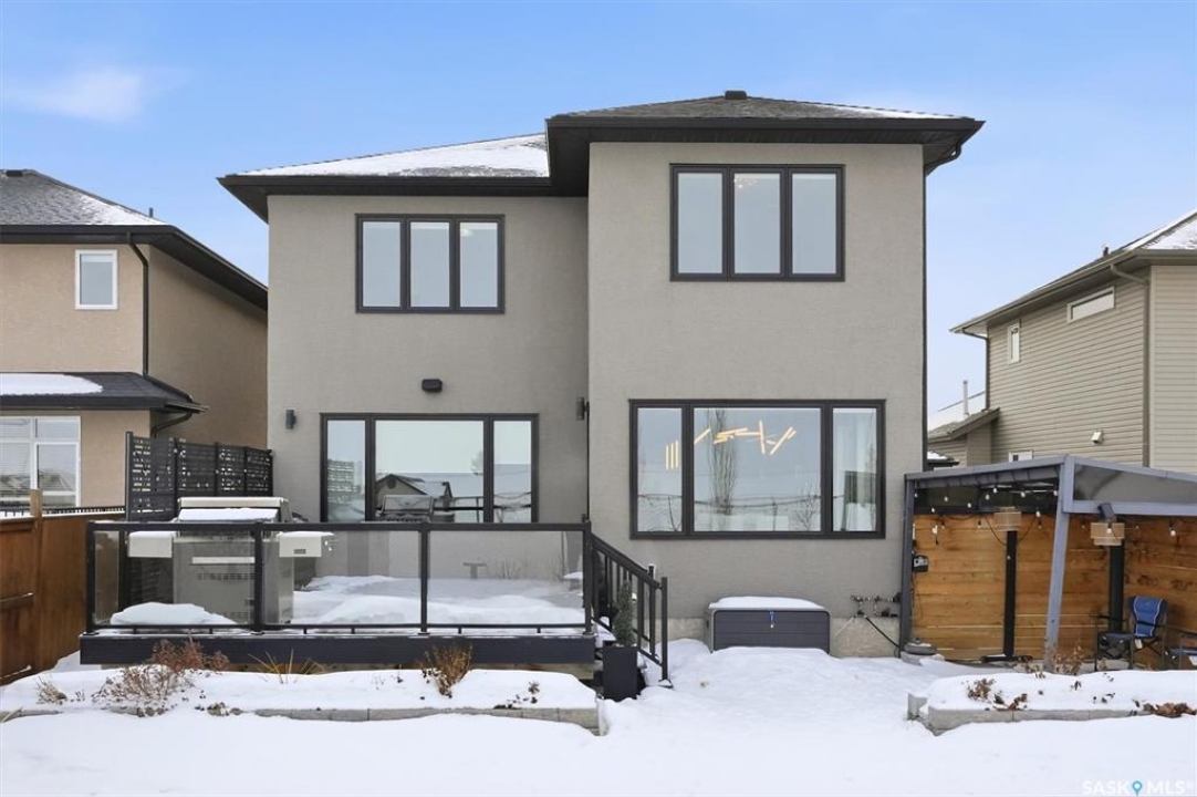 LOOK at the upgrade list on this home! Featuring a FOUR CAR heated garage, 4 bedrooms, 4 bathrooms, a fully developed basement, and backing open space, homes like this rarely come available. Located in a prime Evergreen setting, this luxurious 2 storey offers exceptional design and extensive upgrades. A vaulted entry welcomes you into the main level, which features hardwood floors and a spacious great room. The showpiece kitchen is designed for entertaining with SO MANY full height custom cabinets and several pantries, a massive island, quartz countertops, stainless appliances, deluxe lighting package, and a tile backsplash. The kitchen flows into a large dining area highlighted by an exquisite light fixture; dining connects to the great room, where a gas fireplace, built-in cabinetry, and custom bulkheads create a modern lounge space. The main floor also includes a 1/2 bathroom, boot room and laundry room, and direct access to the four-car heated garage. The second level offers 3 beds and 2 baths with upgraded finishes. The primary suite features a walk-in closet and a connecting five-piece spa ensuite with extensive tile work, incredible tiled shower, freestanding tub, quartz double countertops, recessed lighting, and in-floor heat. 2 bedrooms share a Jack and Jill family bath. The fully developed basement provides additional modern living space with a family room featuring built-in speakers and a dramatic linear fireplace, a wet bar with quartz countertops and floating shelves, an entertainment lounge, 4th bedroom, and a 3pc bath with a custom steam shower. Notable upgrades include built-in Celebright soffit Christmas lighting, Hunter Douglas electric blinds, wiring for security cameras, solid core interior doors, sound system, custom closets, central air, central vac, hot water on demand, water softener, u/g sprinklers, gas bbq hookup, newer fridge, and recently replaced mechanical. Outdoor living is enhanced by a pergola, patio, and composite deck.